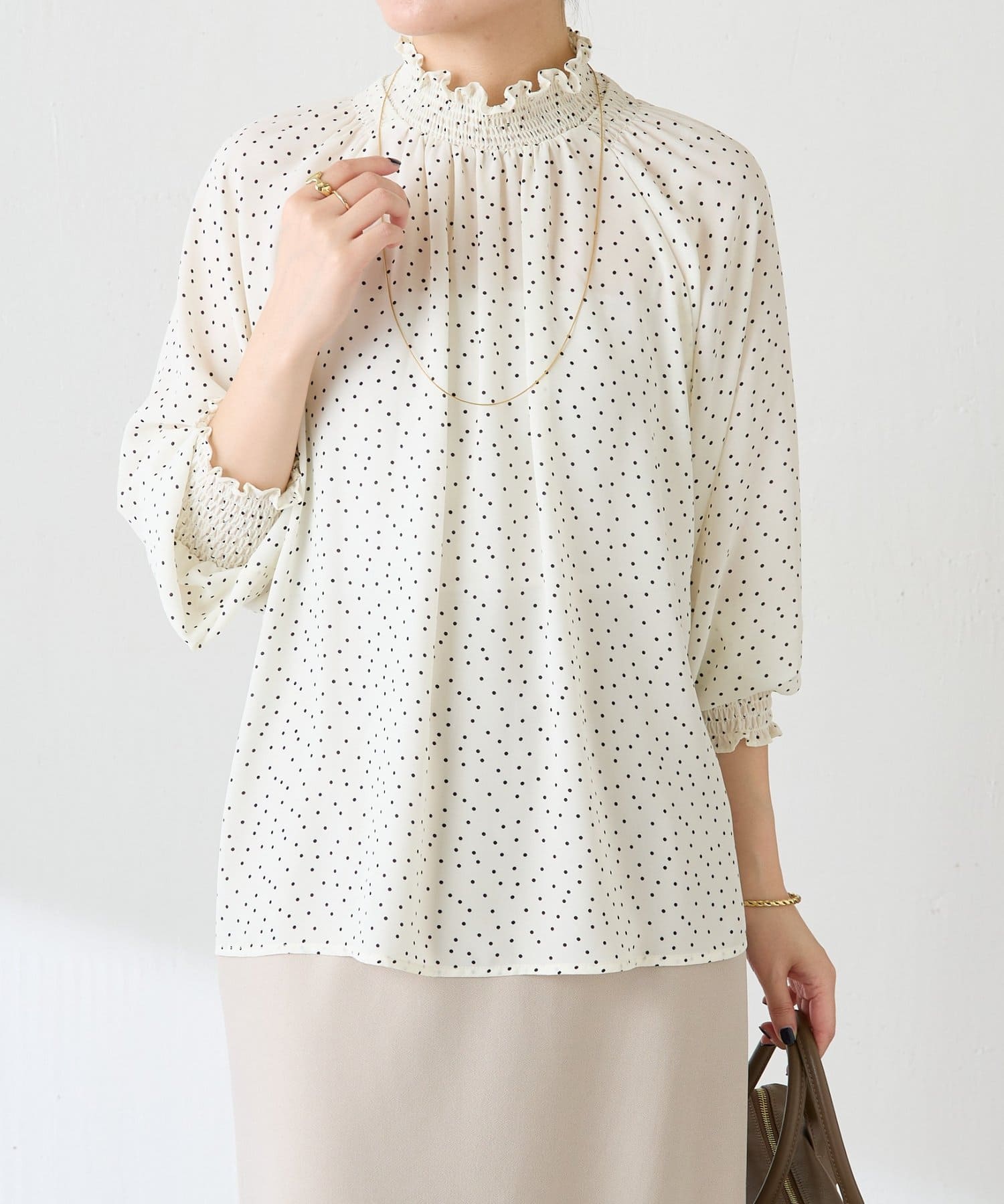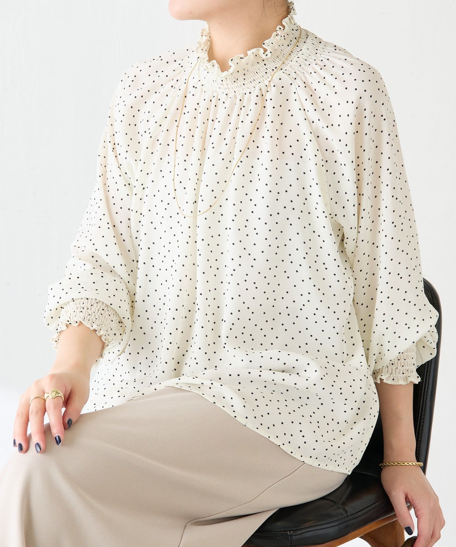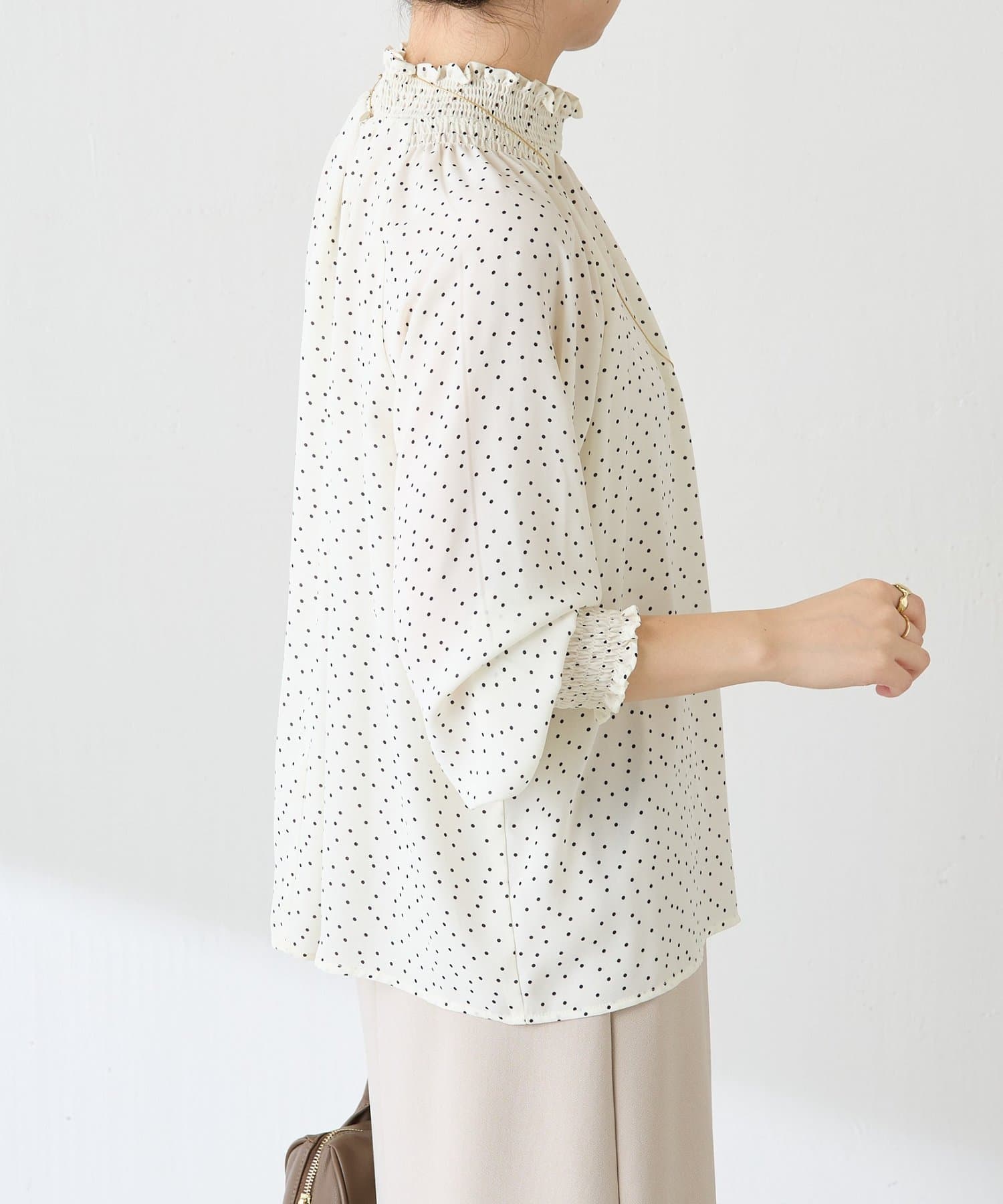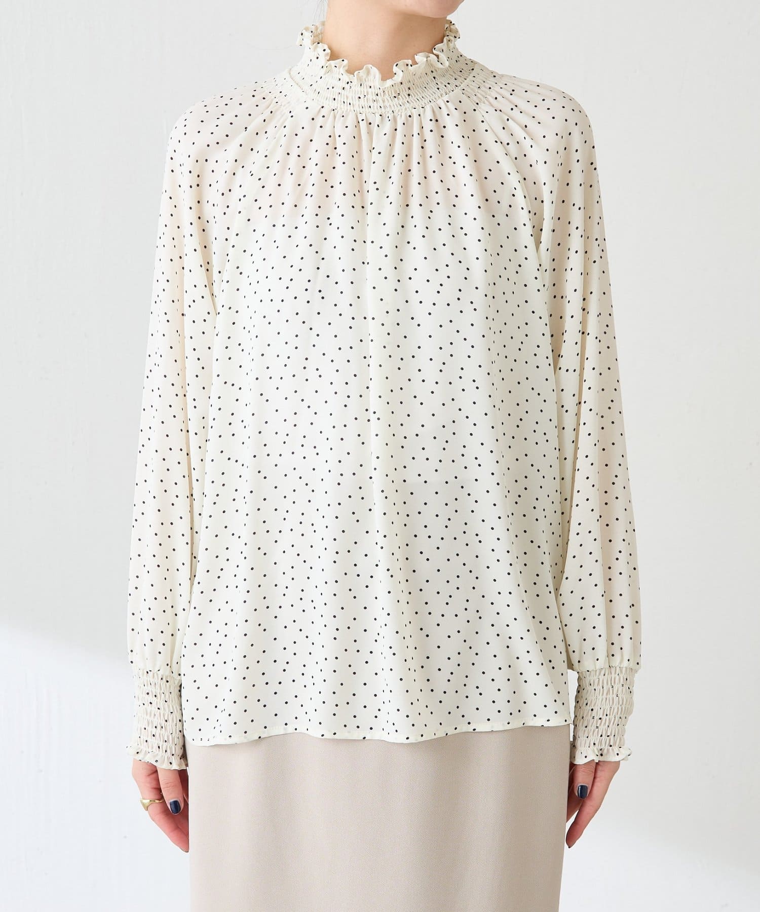 ハイネックシャーリングドットブラウス/セレモニー