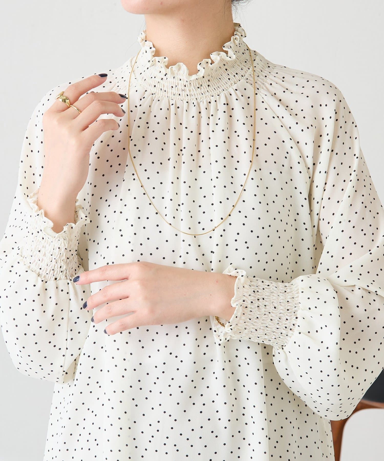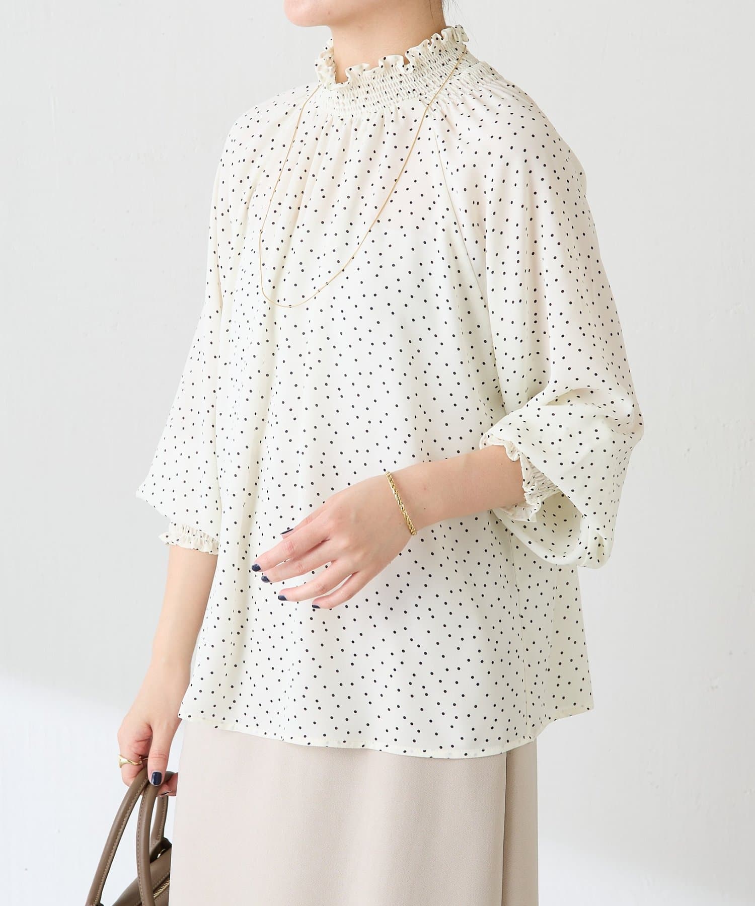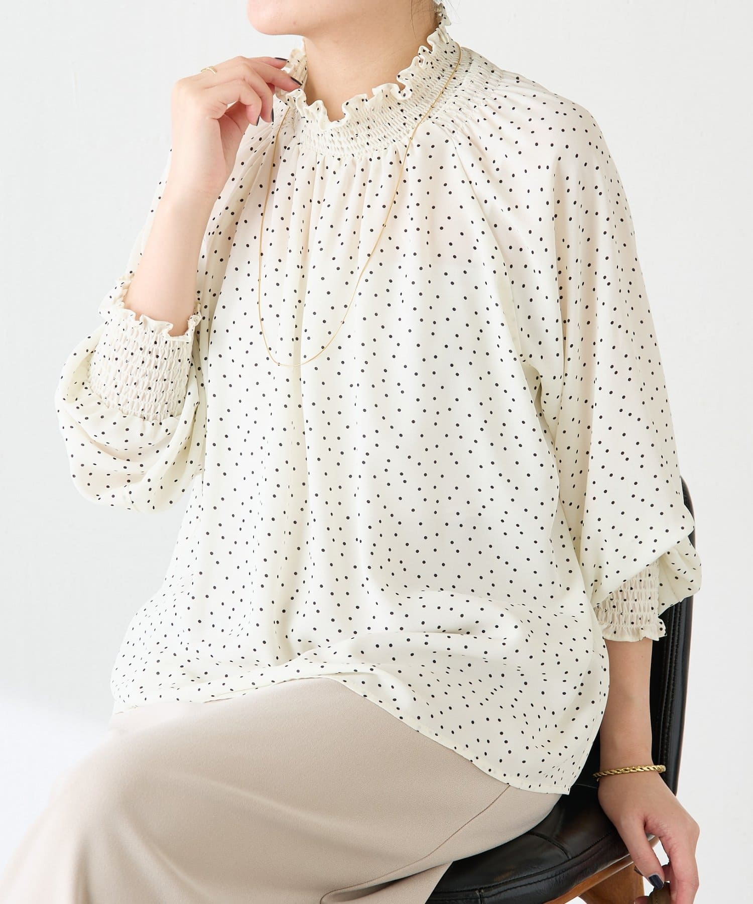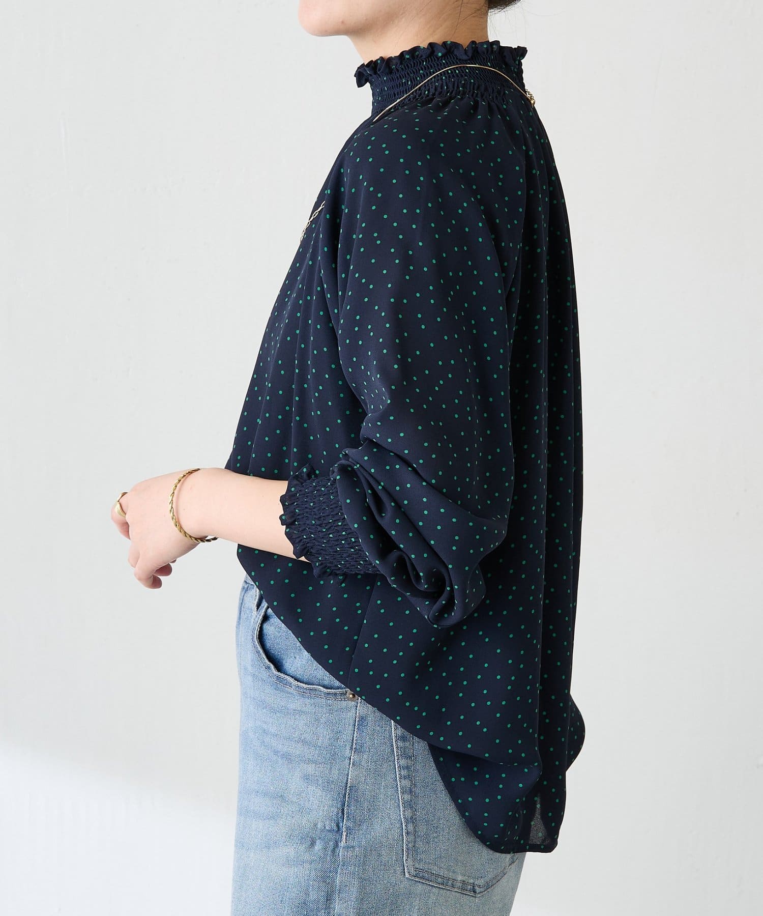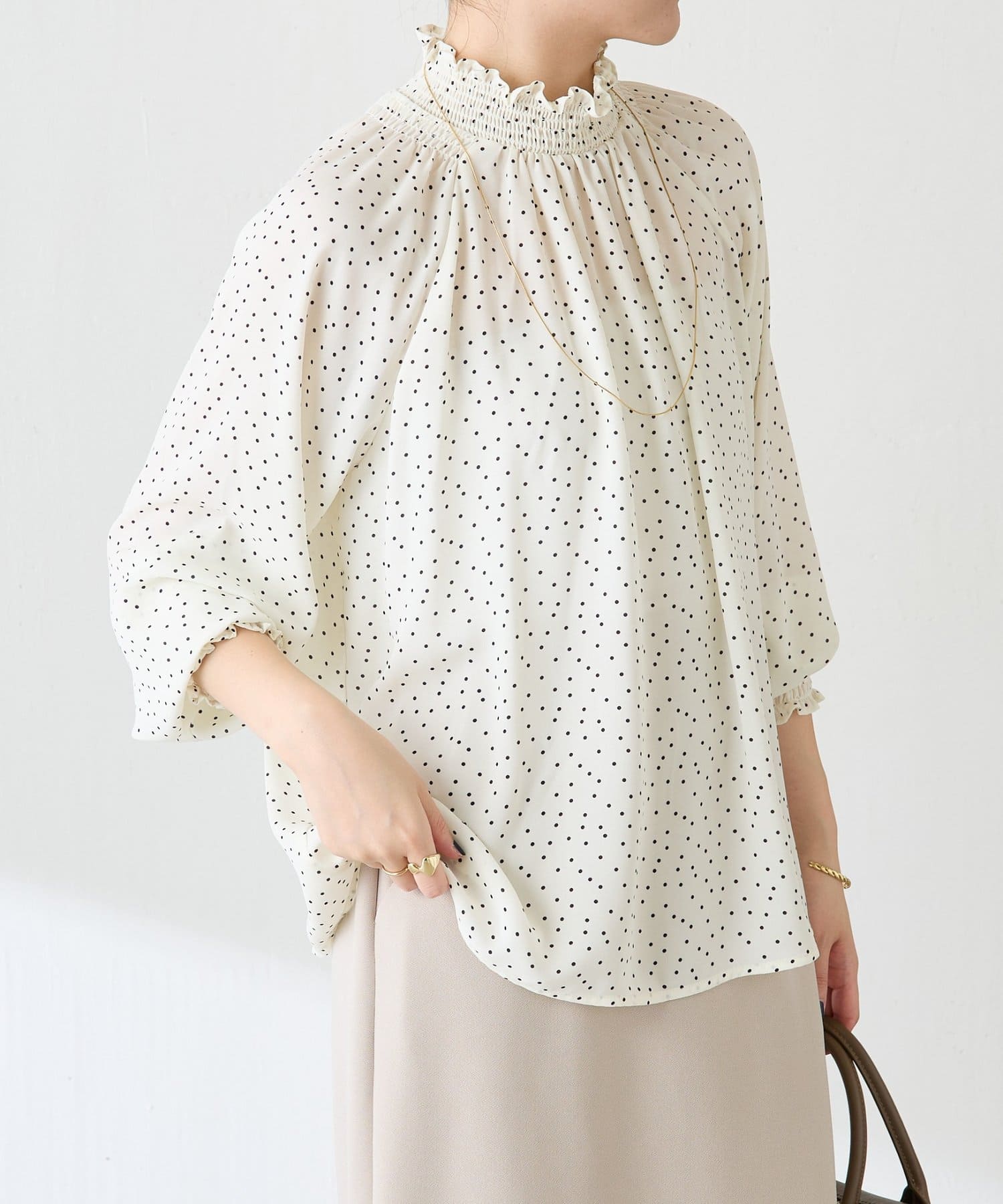 ハイネックシャーリングドットブラウス/セレモニー