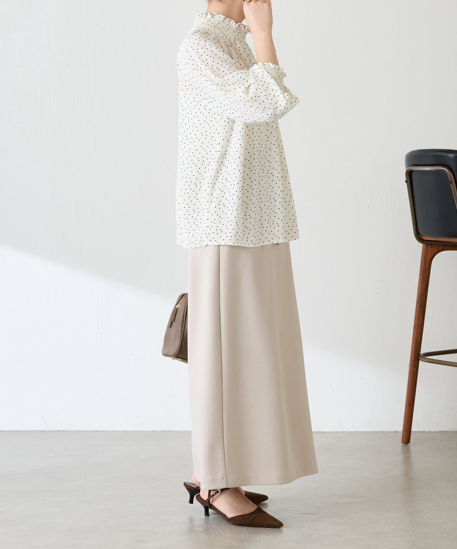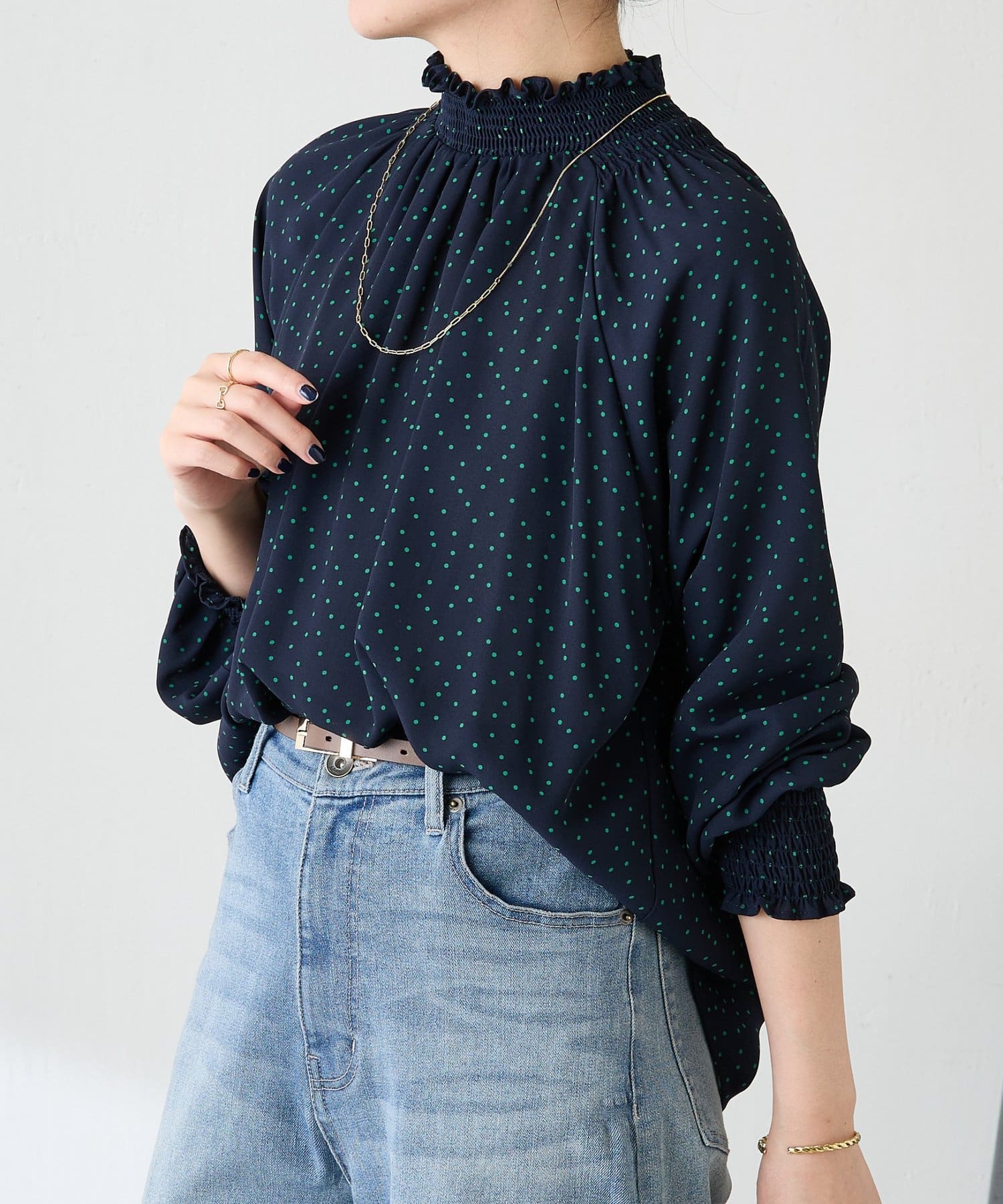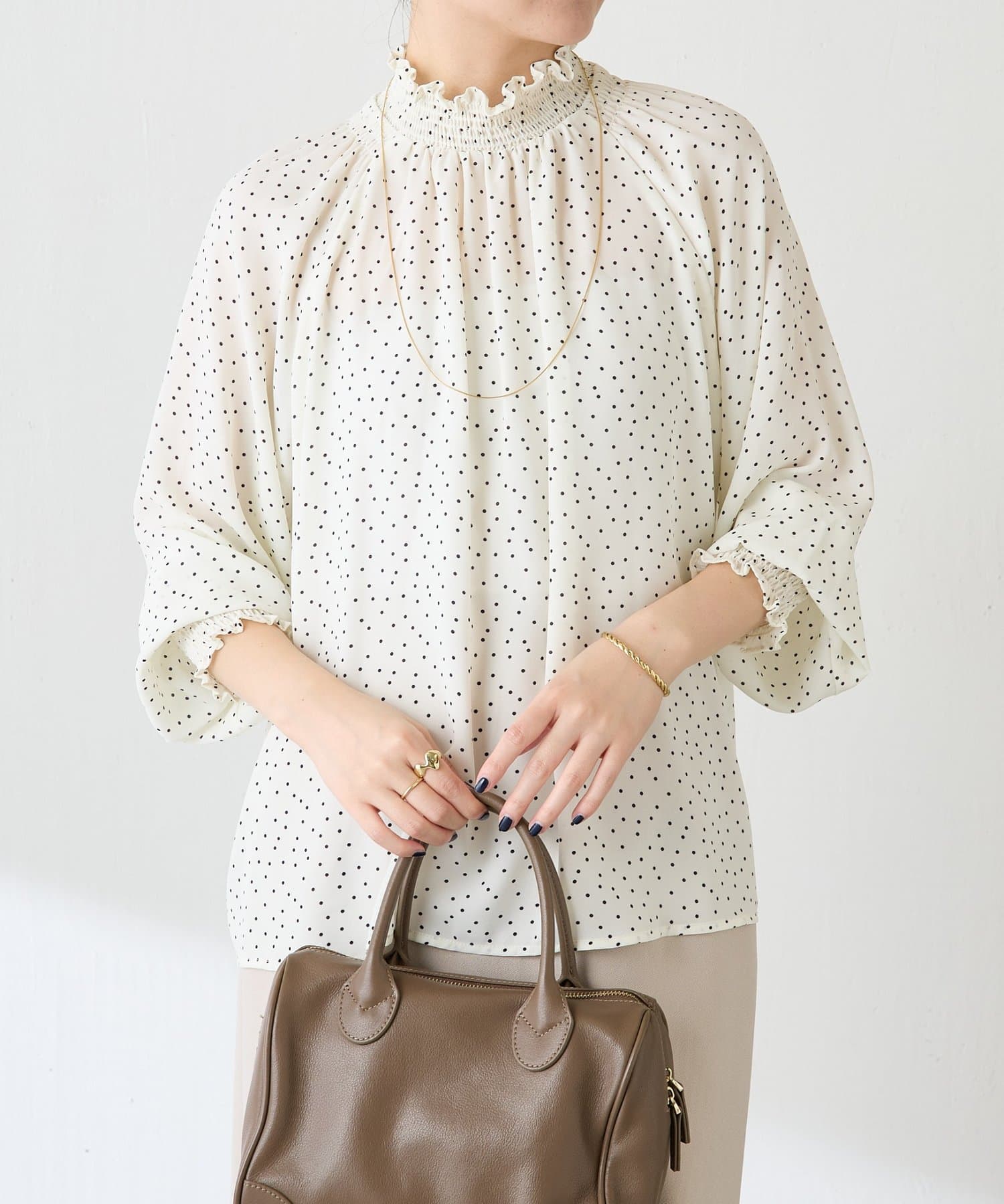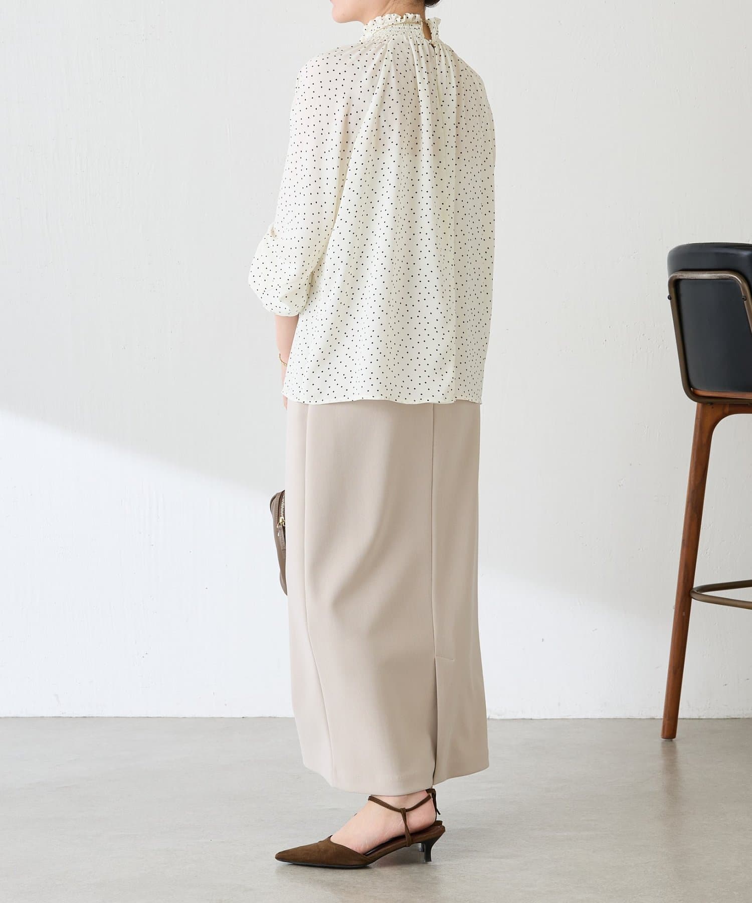 ハイネックシャーリングドットブラウス/セレモニー