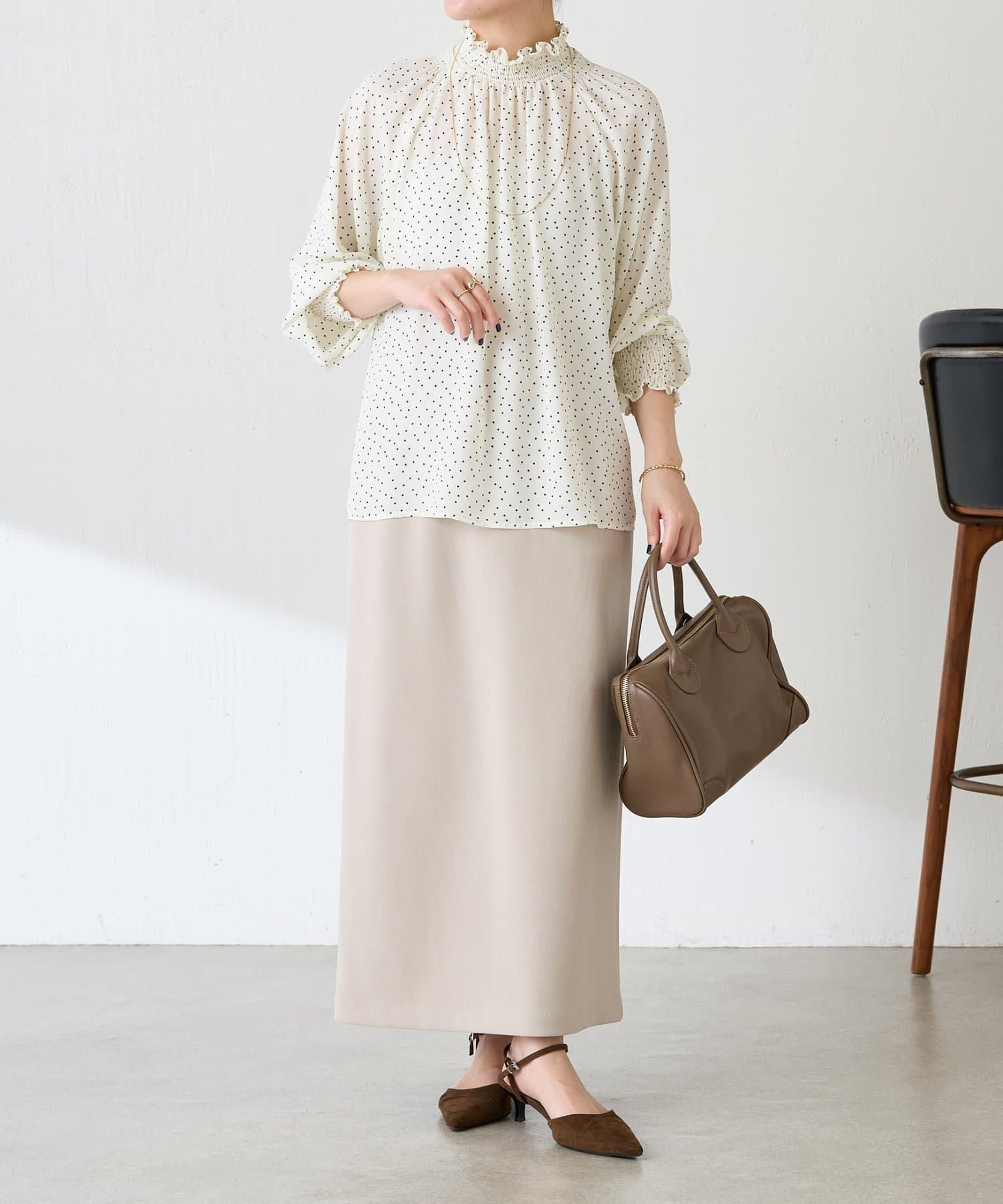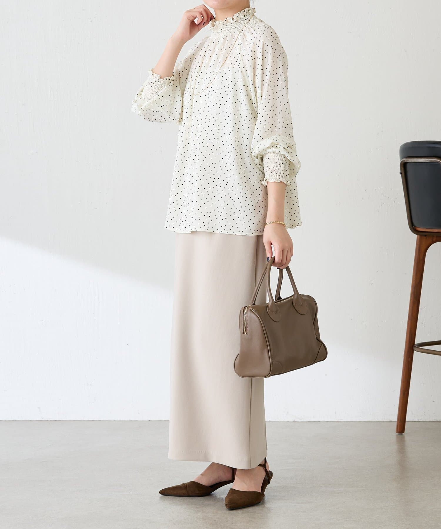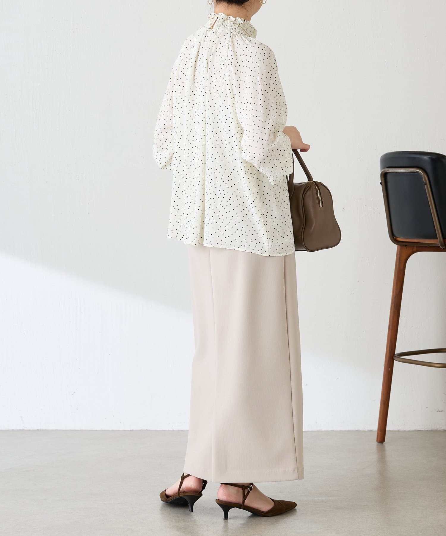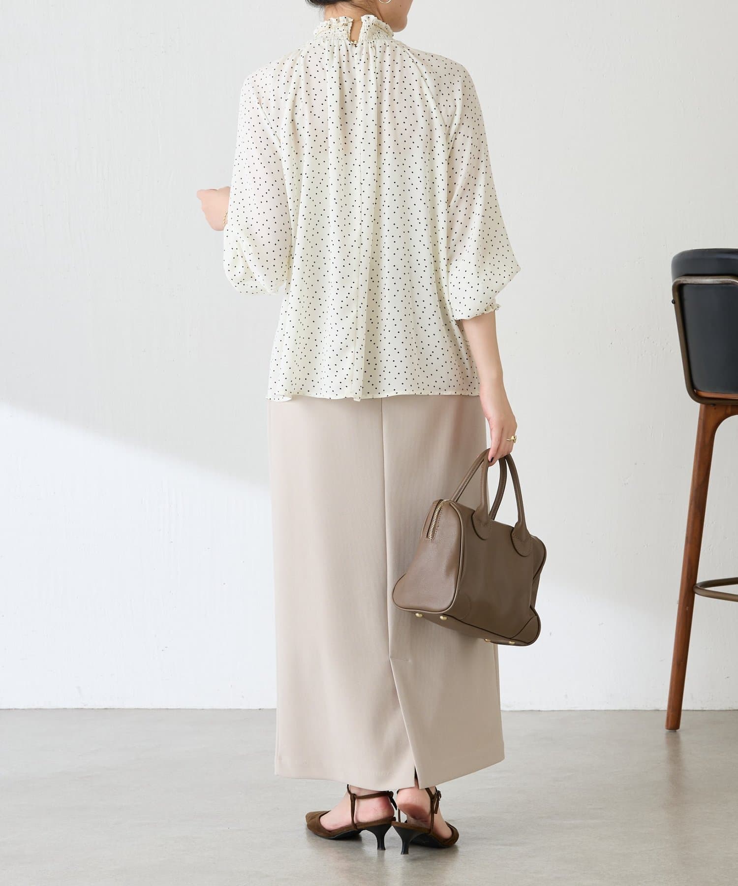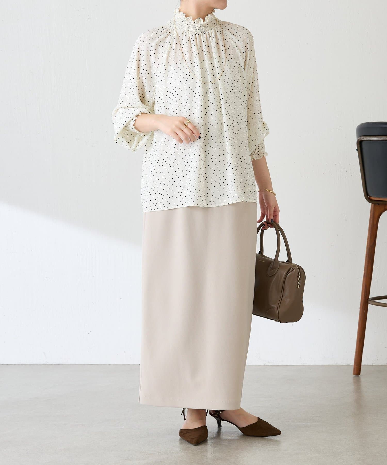 ハイネックシャーリングドットブラウス/セレモニー