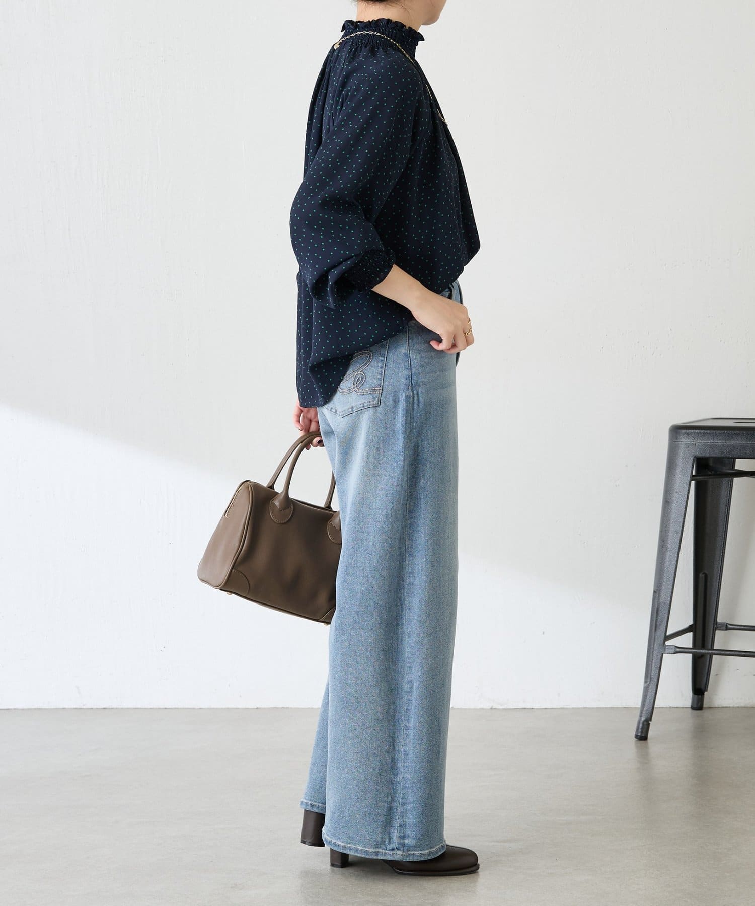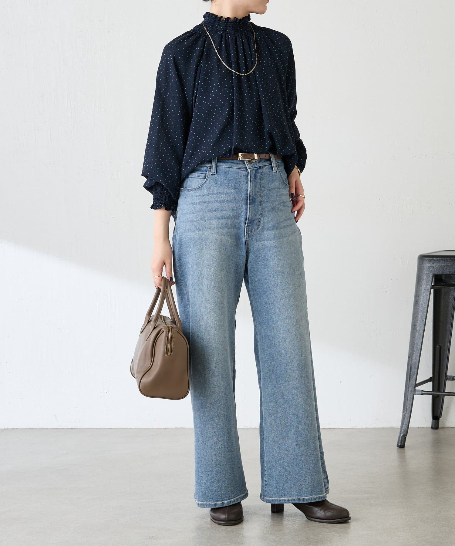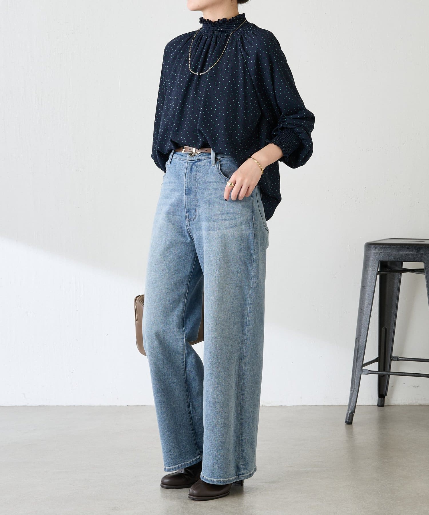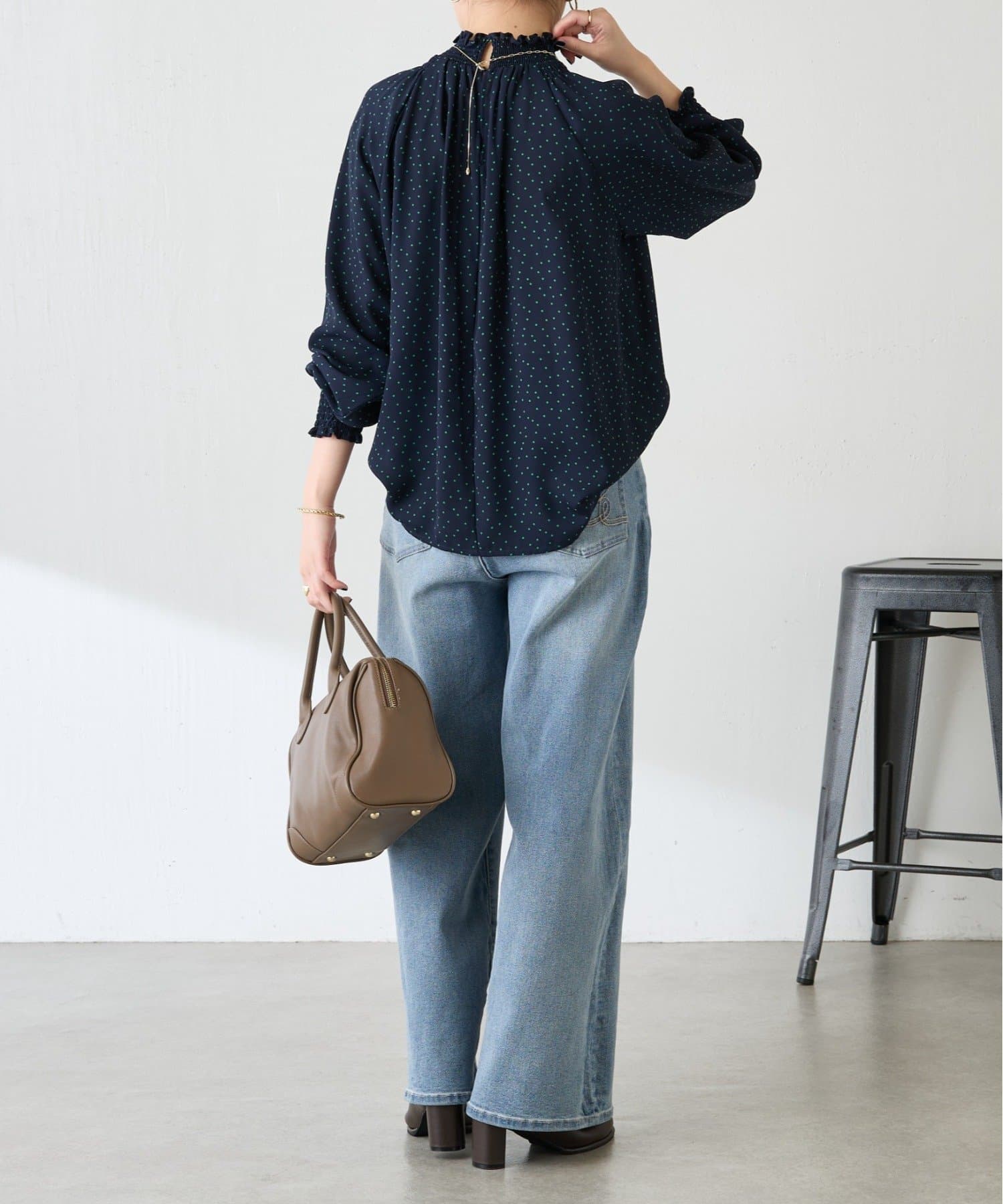 ハイネックシャーリングドットブラウス/セレモニー