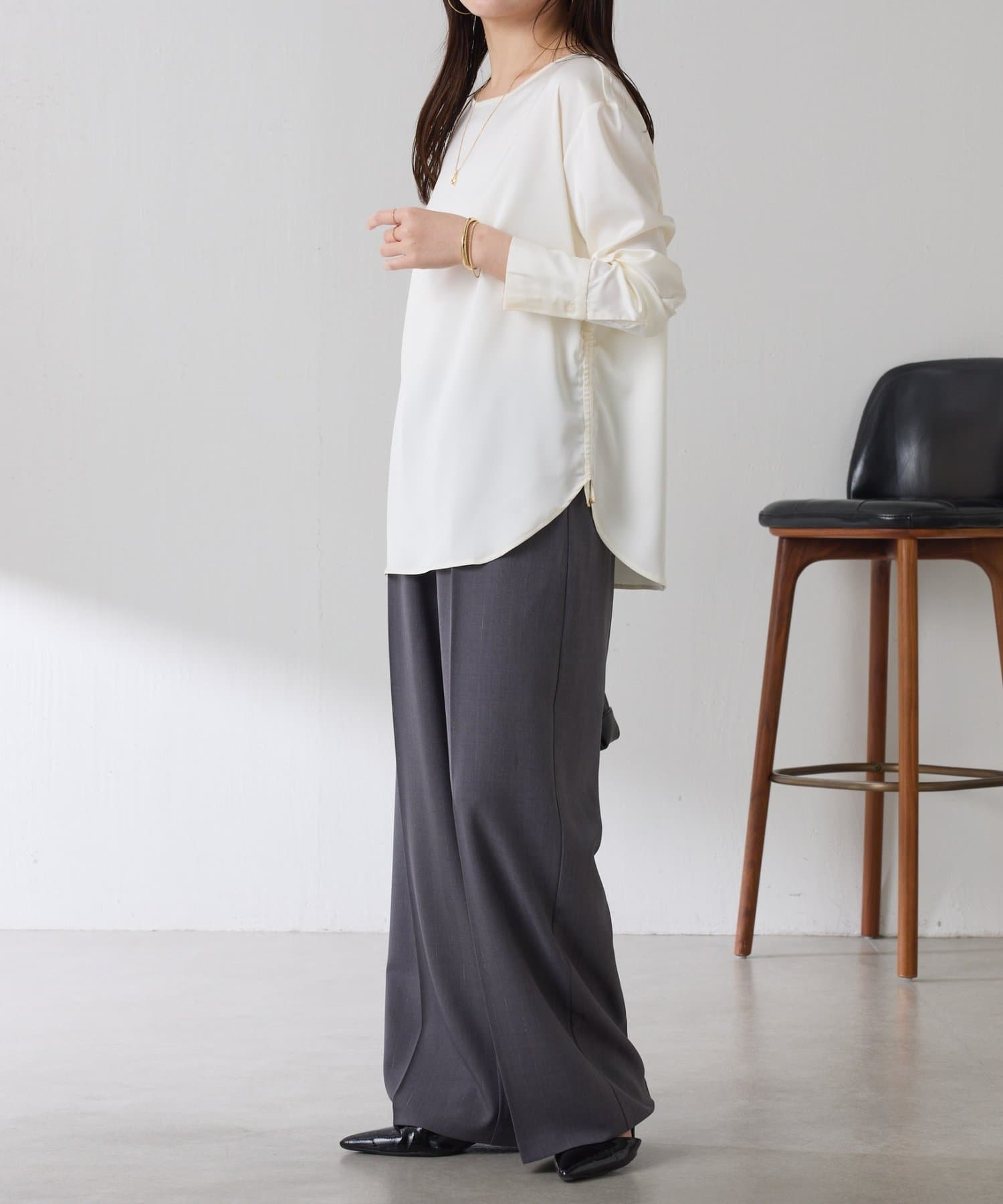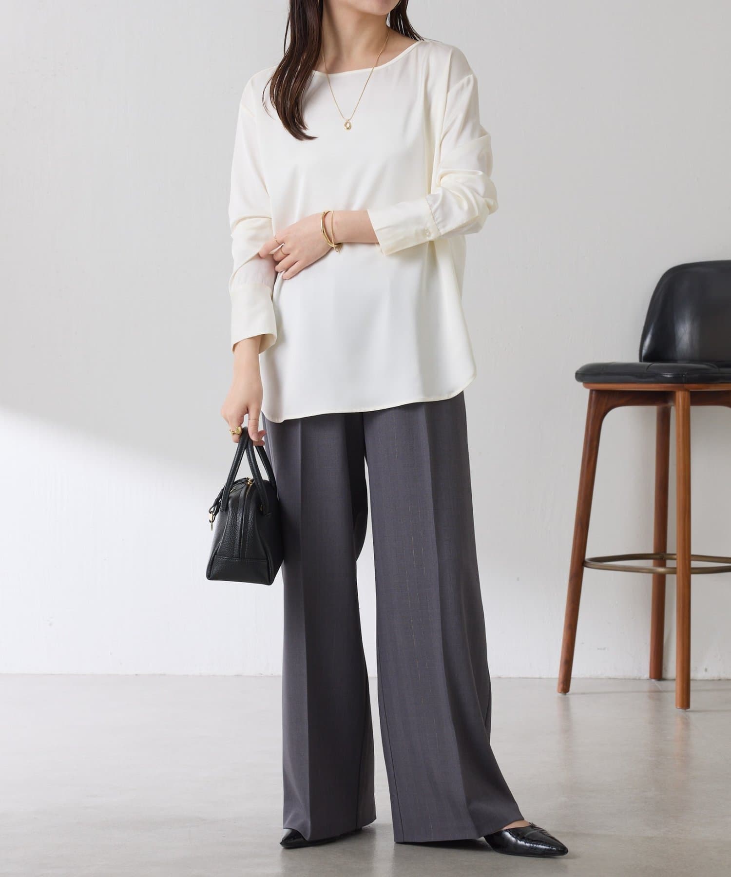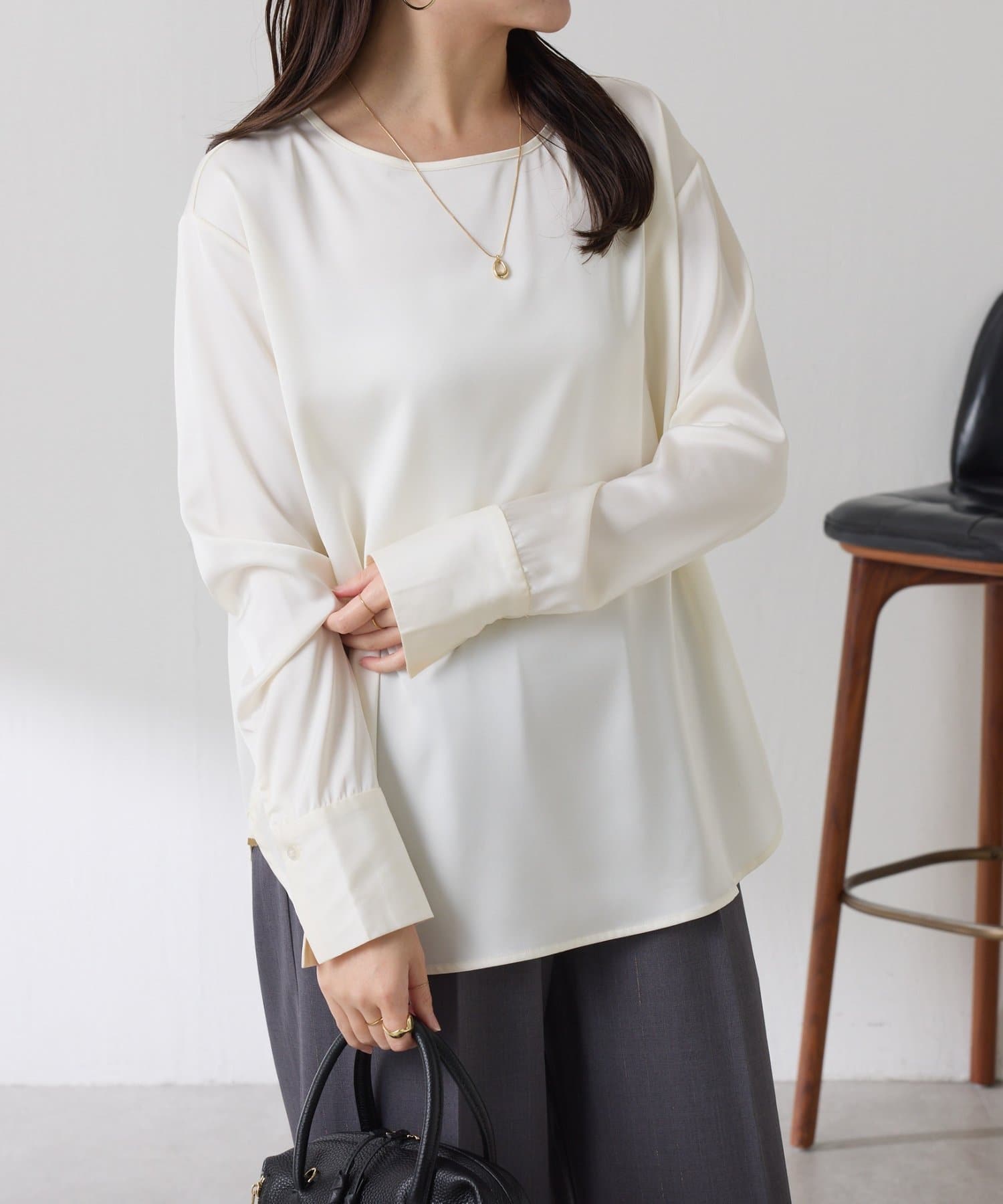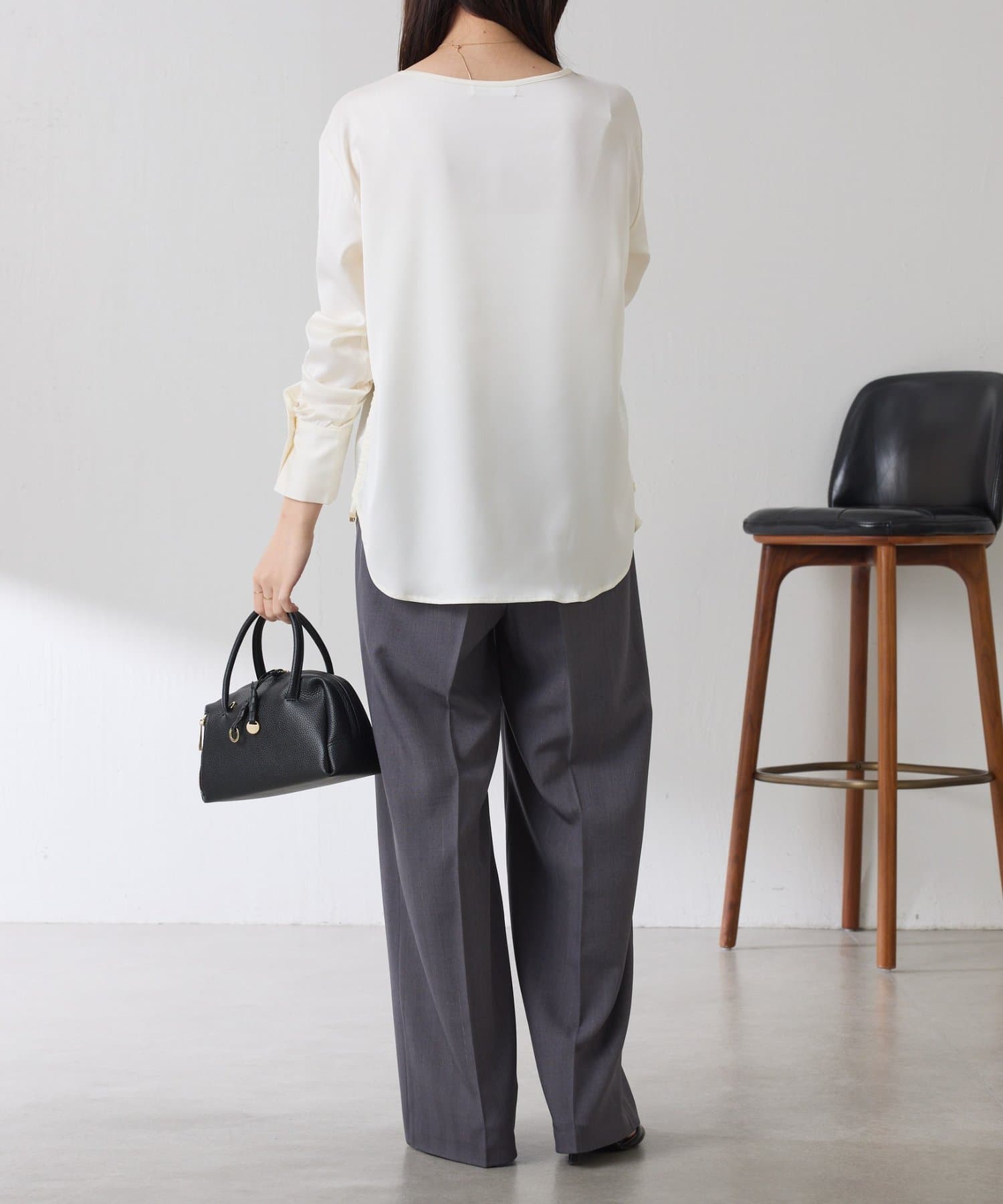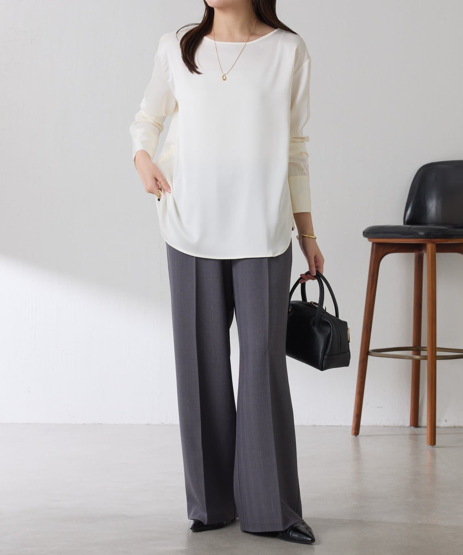 ほんのりした光沢感がコーデに女性らしさをプラスしてくれる万能ブラウス