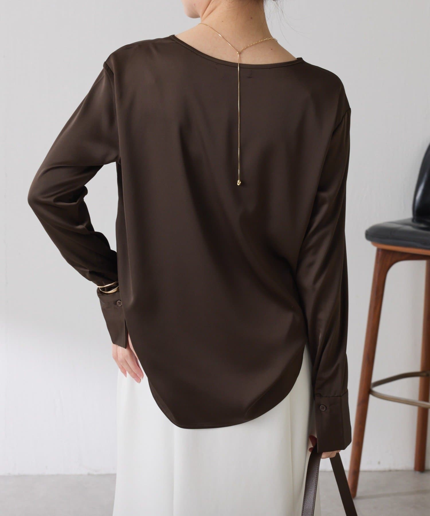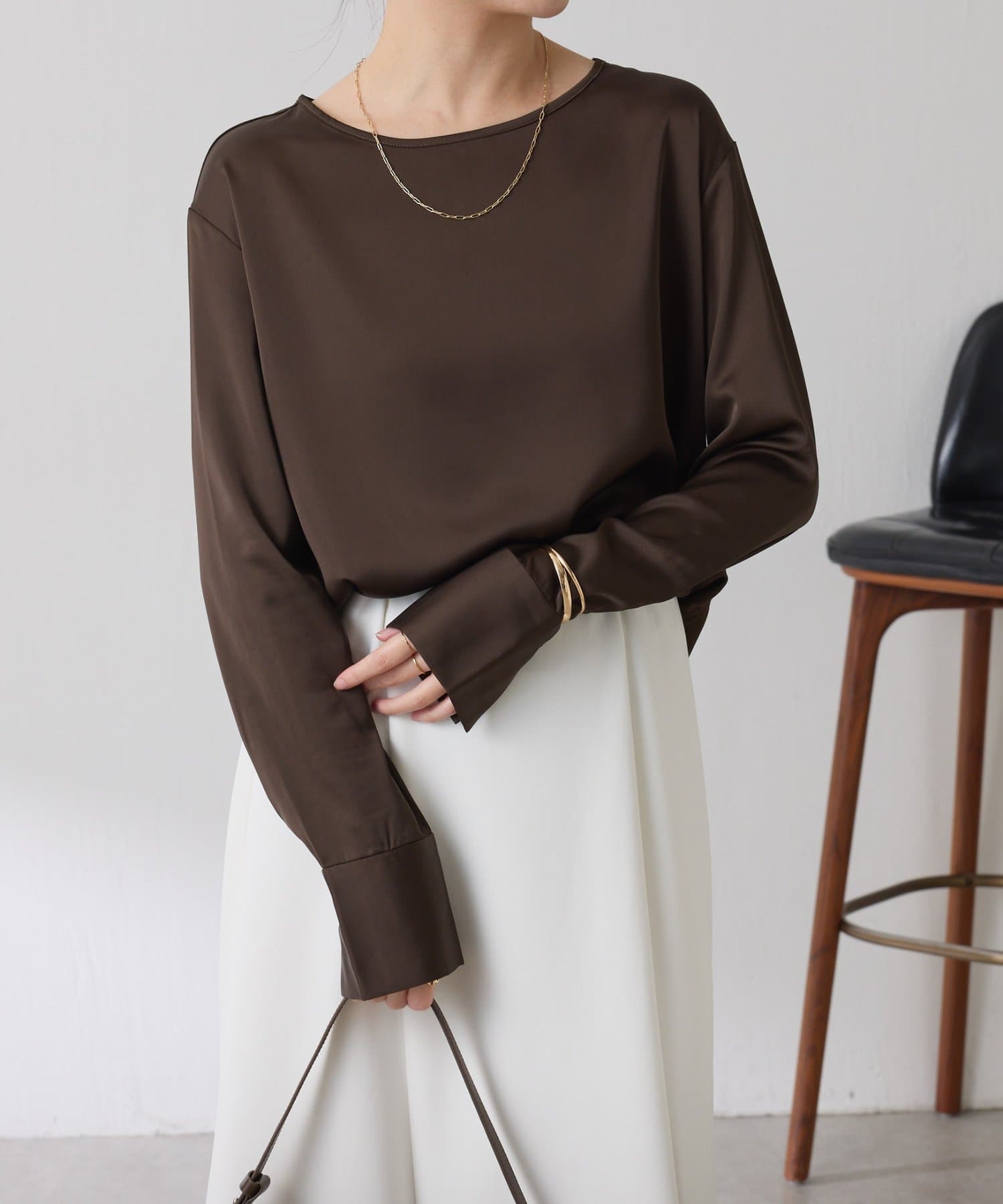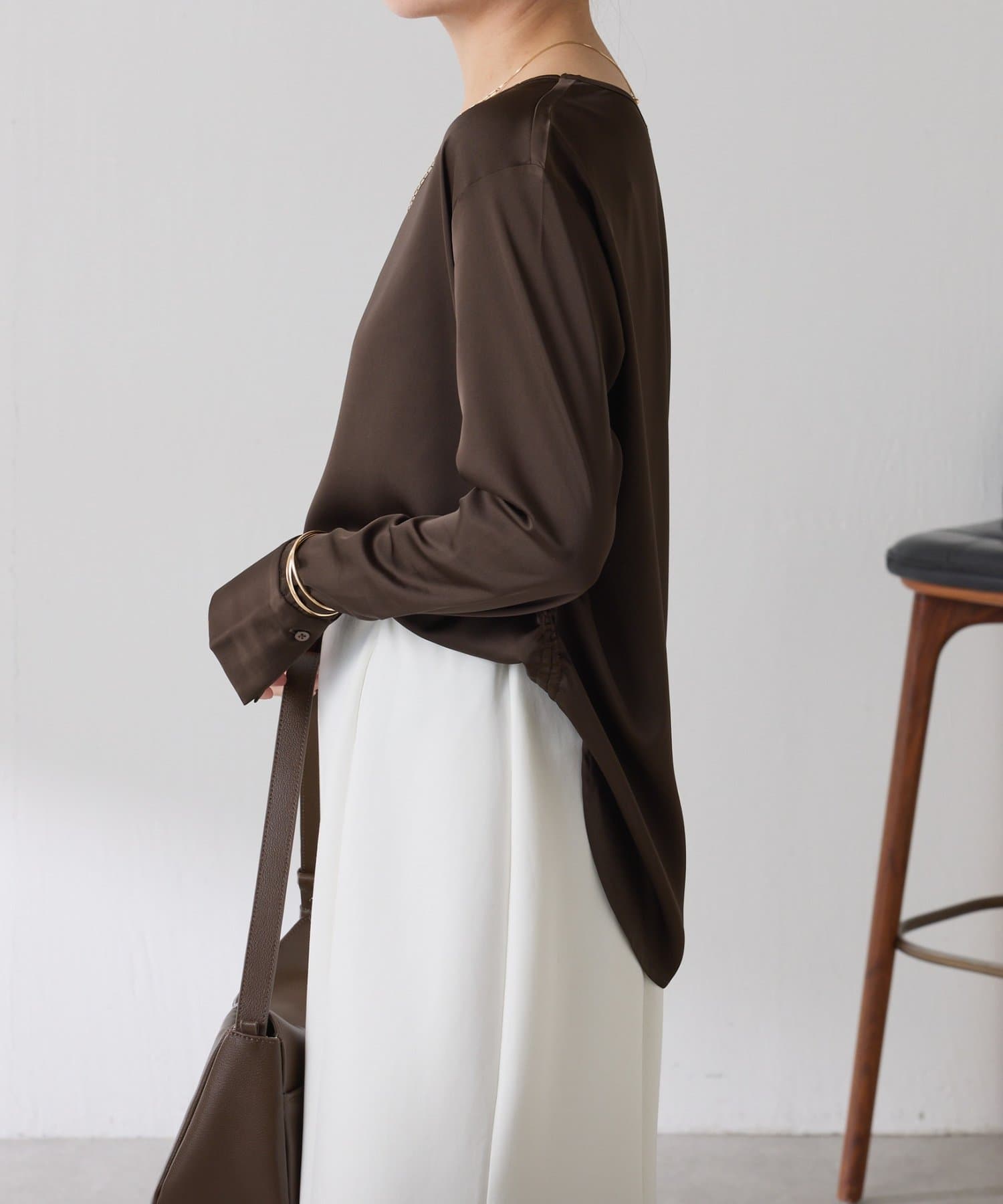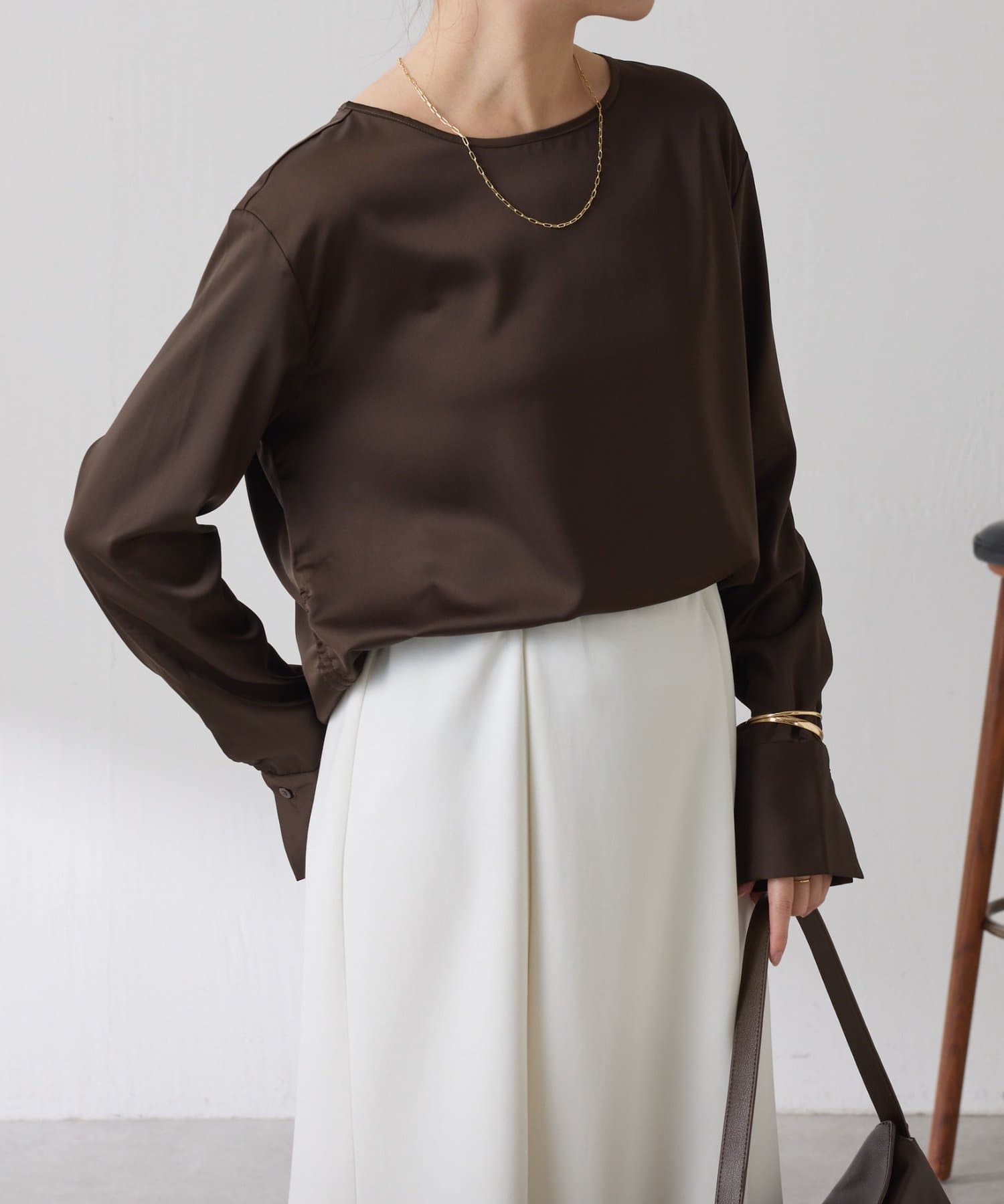 ほんのりした光沢感がコーデに女性らしさをプラスしてくれる万能ブラウス