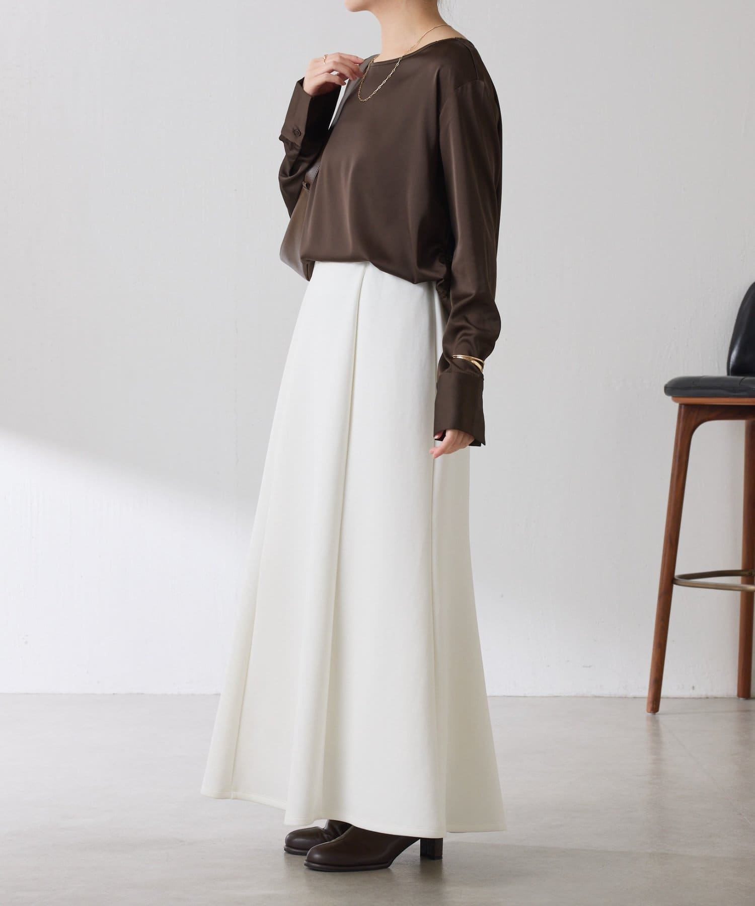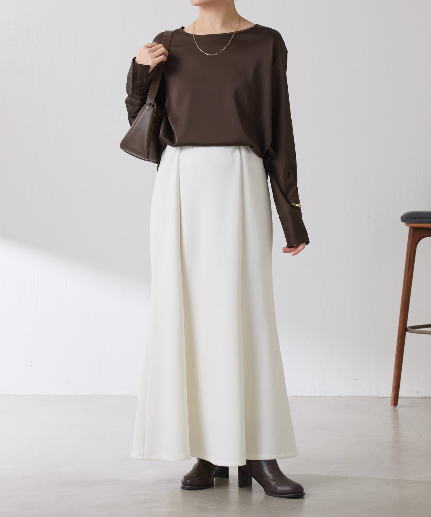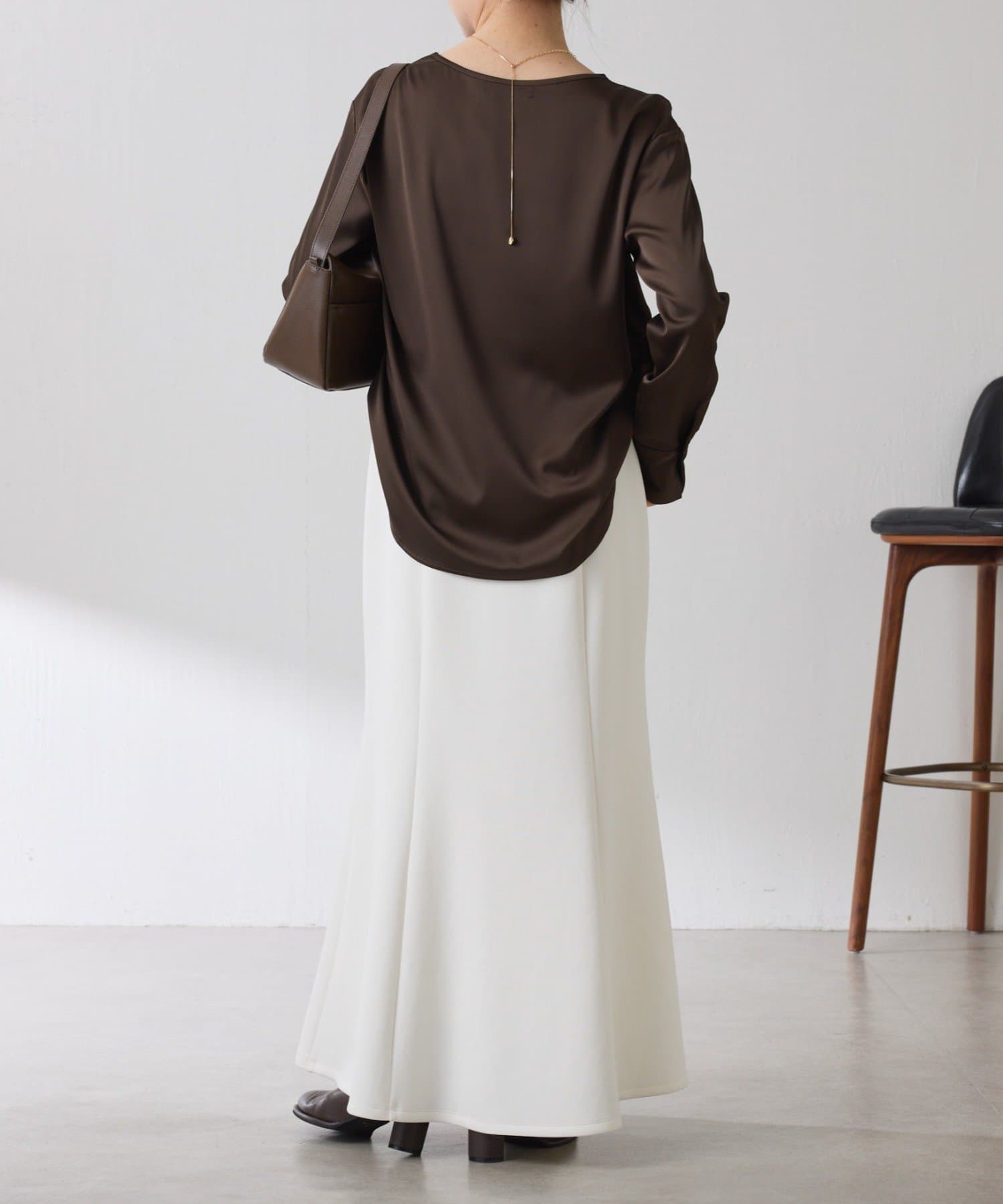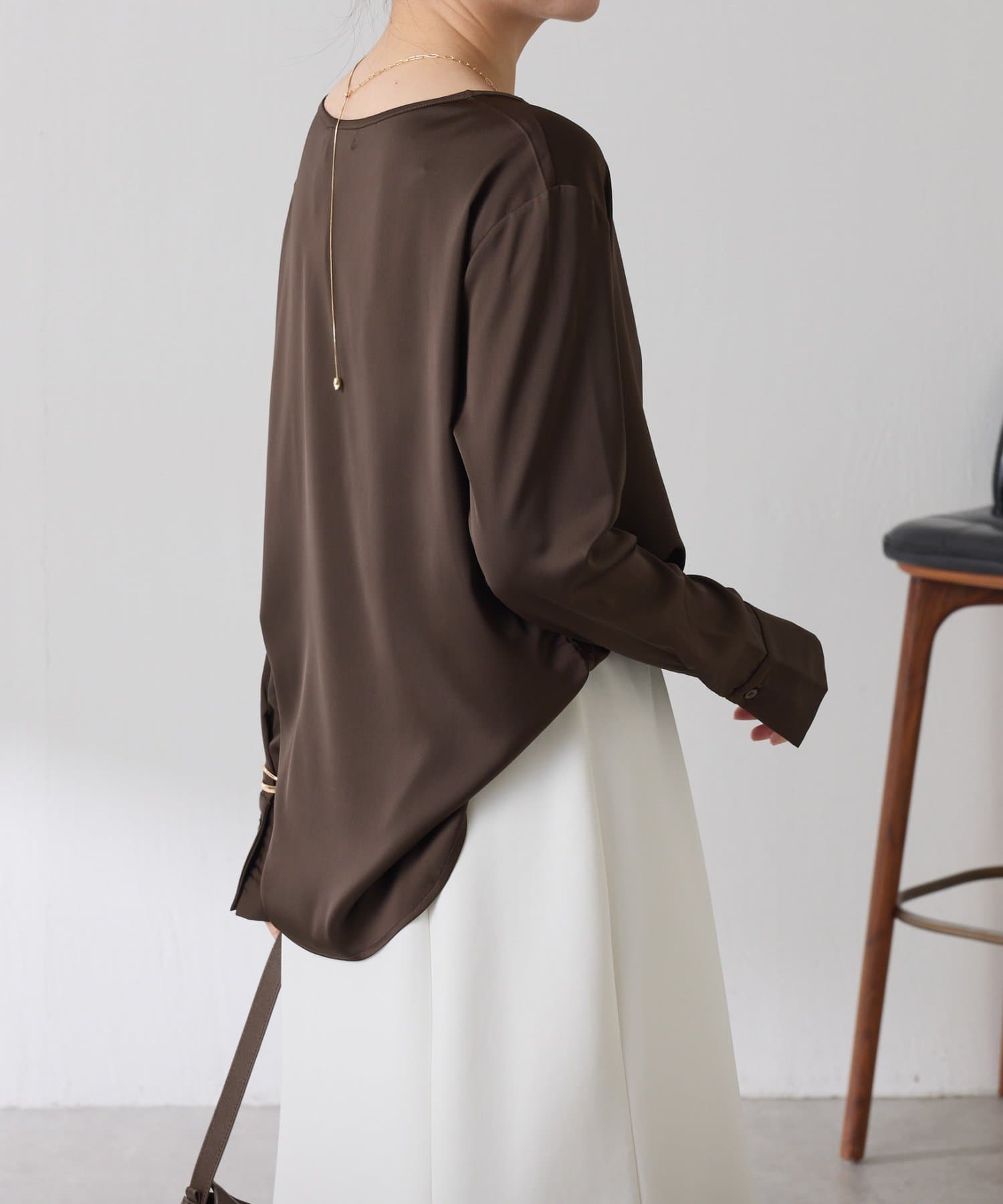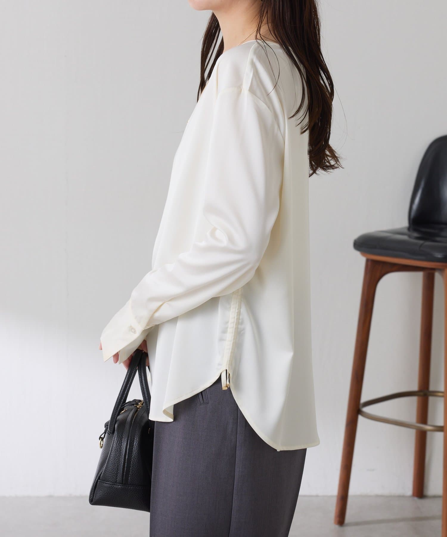 ほんのりした光沢感がコーデに女性らしさをプラスしてくれる万能ブラウス