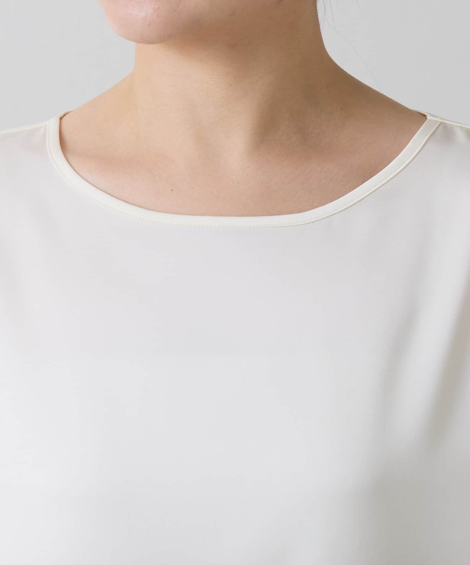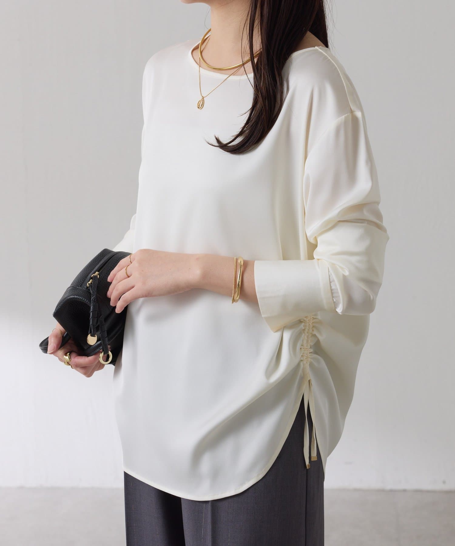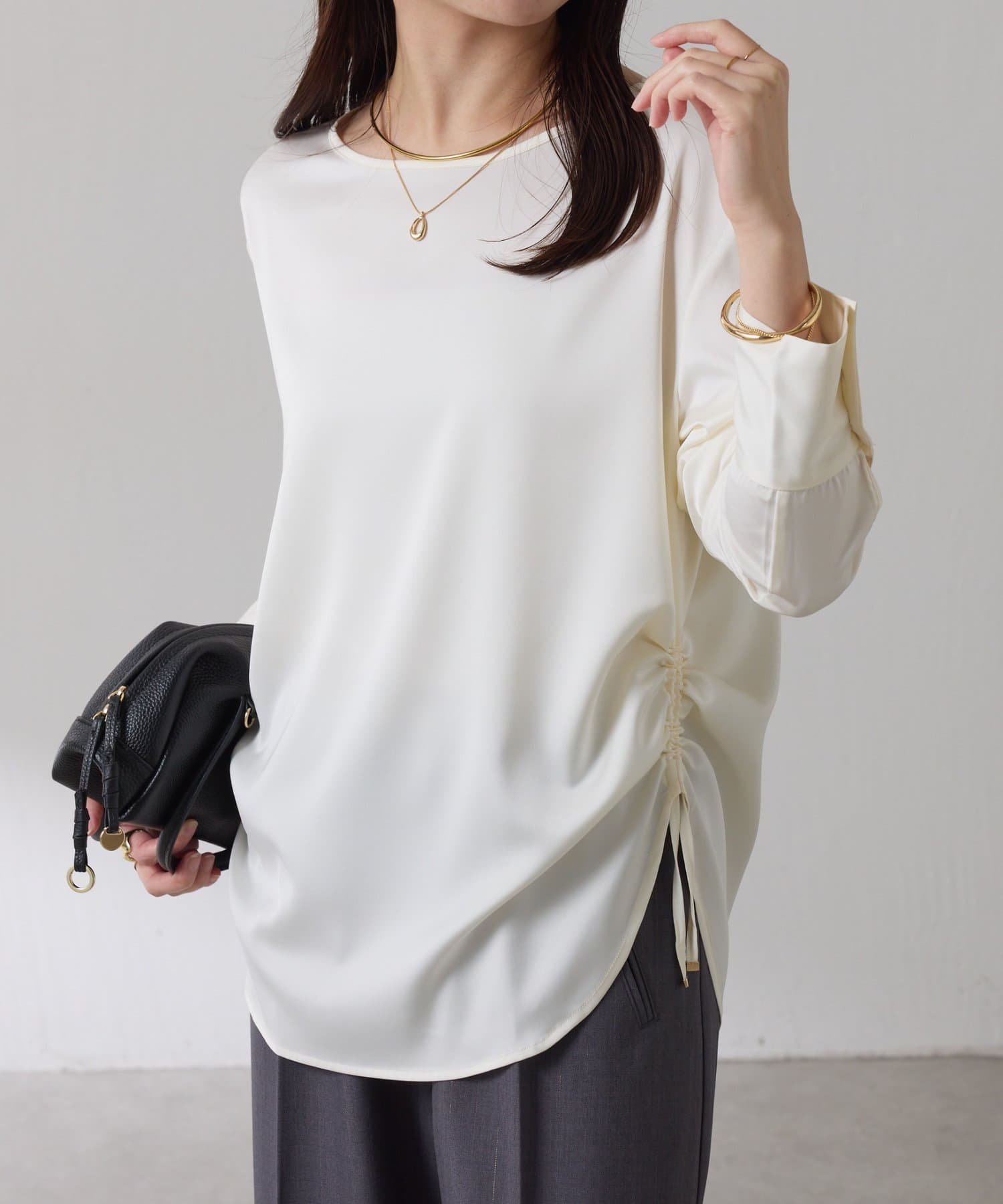 【伸びるサテン生地】サテンサイドドロストTブラウス/セレモニー