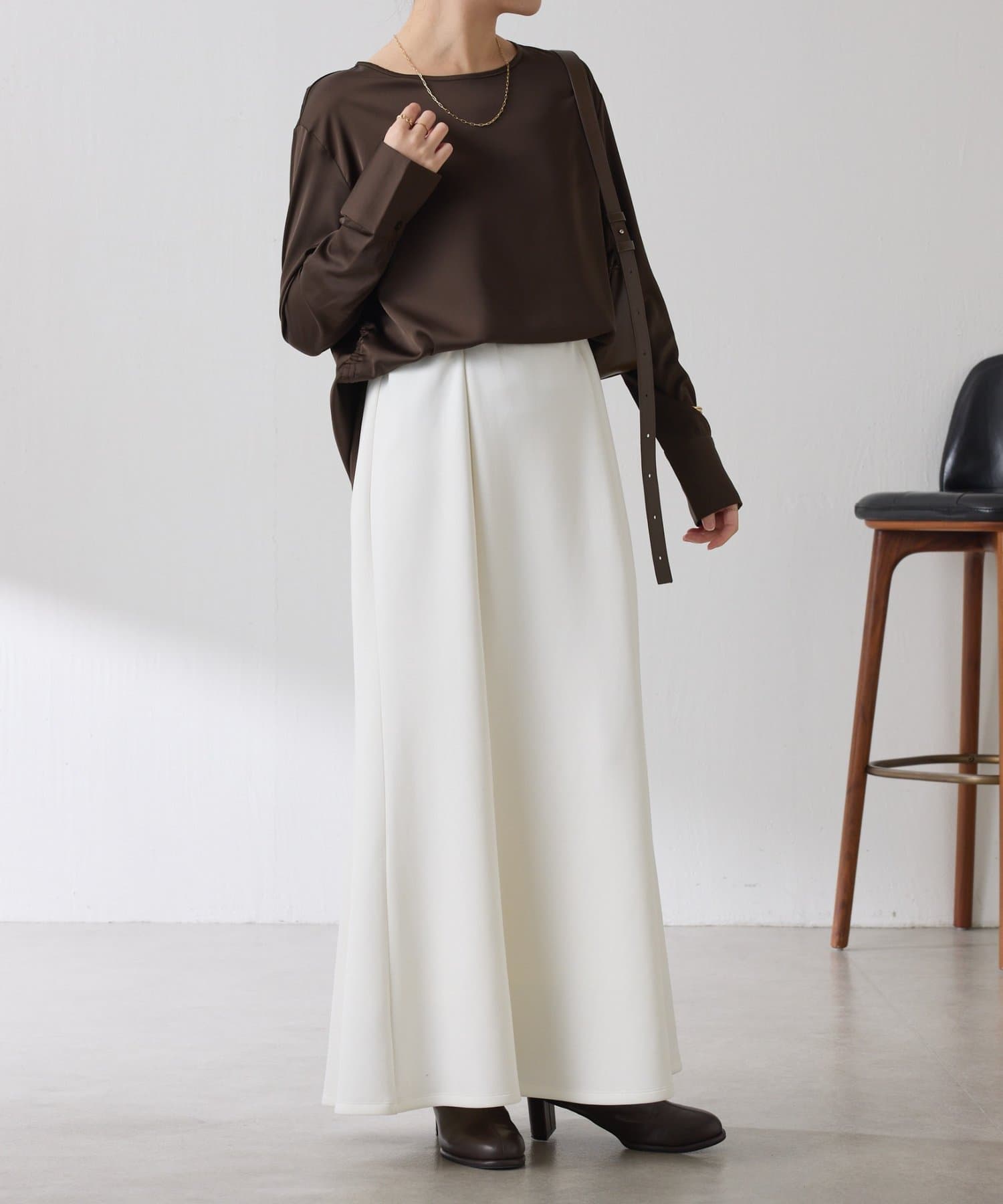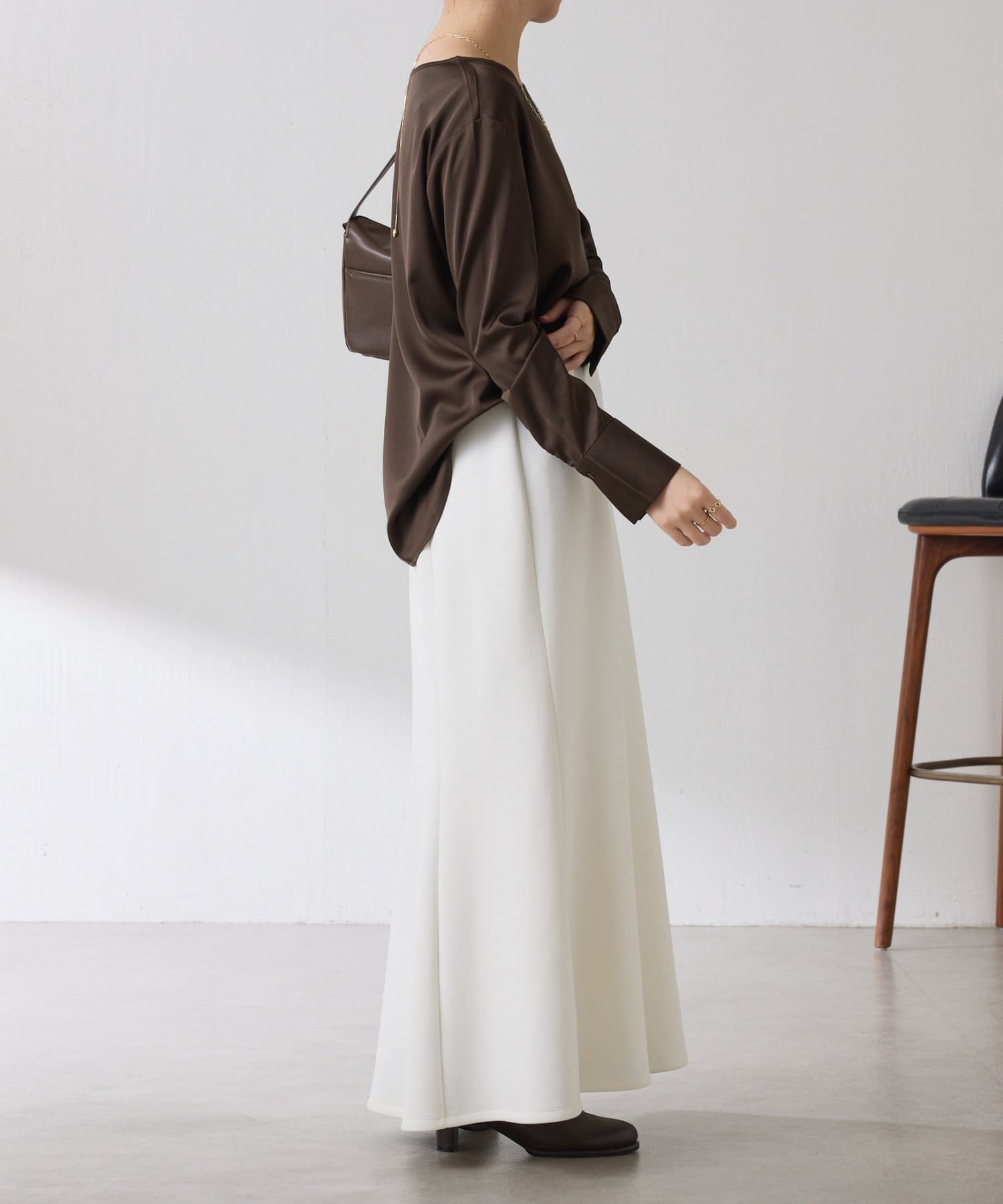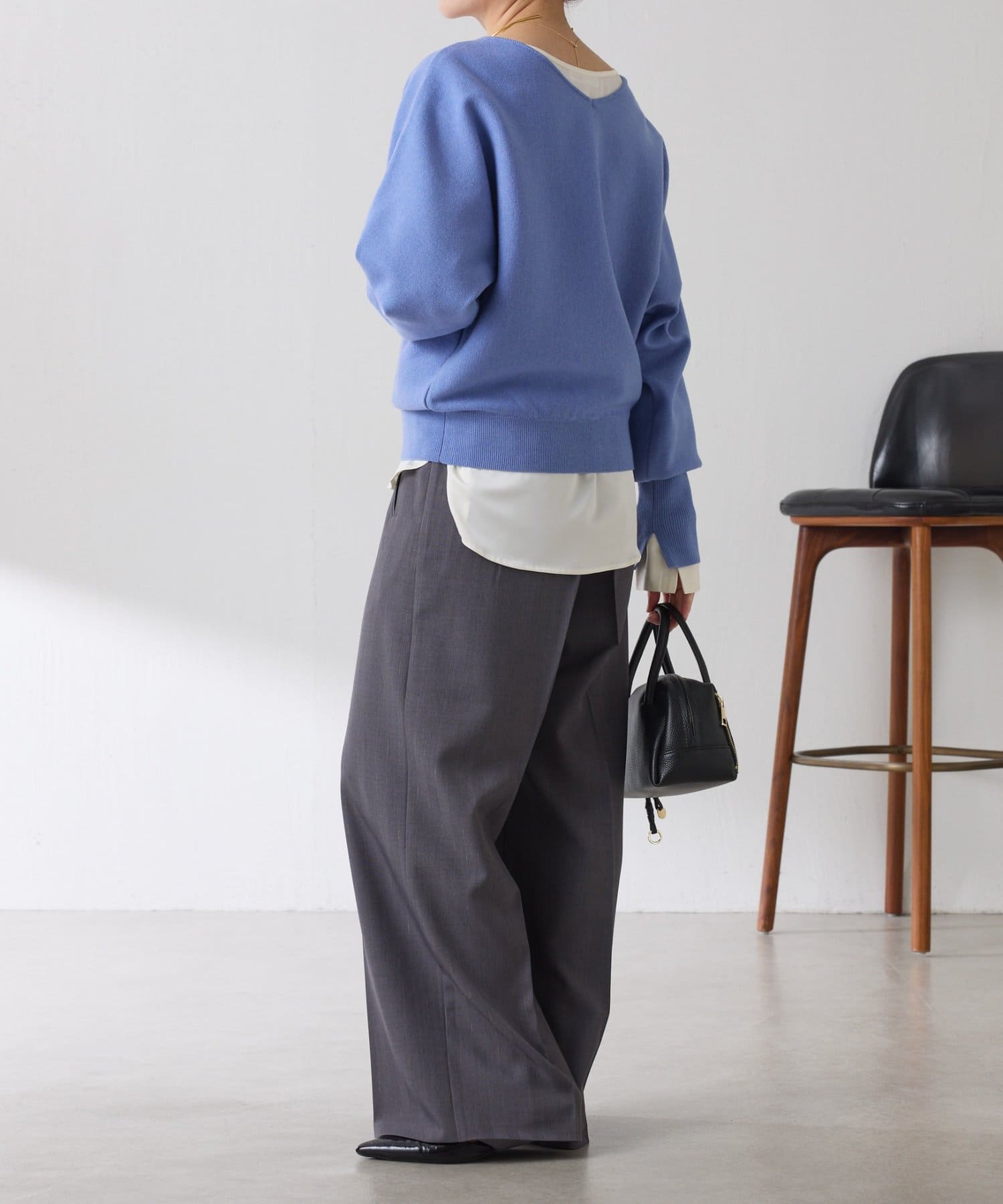 冬場にはニットと重ねて裾や袖口からツヤ感を覗かせて抜け感をプラスできます◎