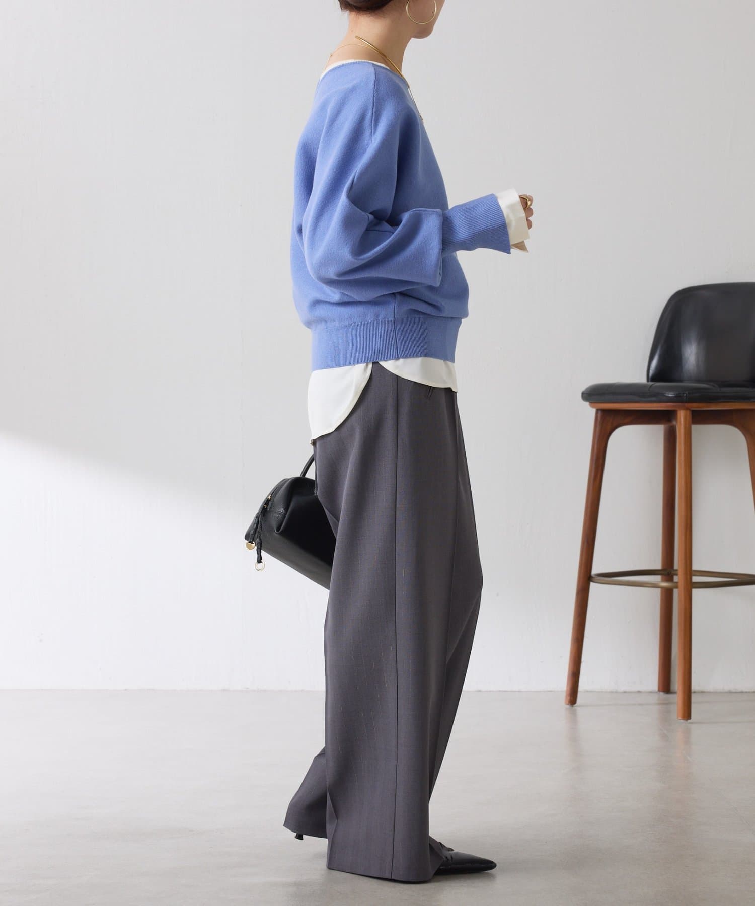 ・袖はカフスデザインでニットの下から覗かせてきちんと感を演出するのもおすすめです◎