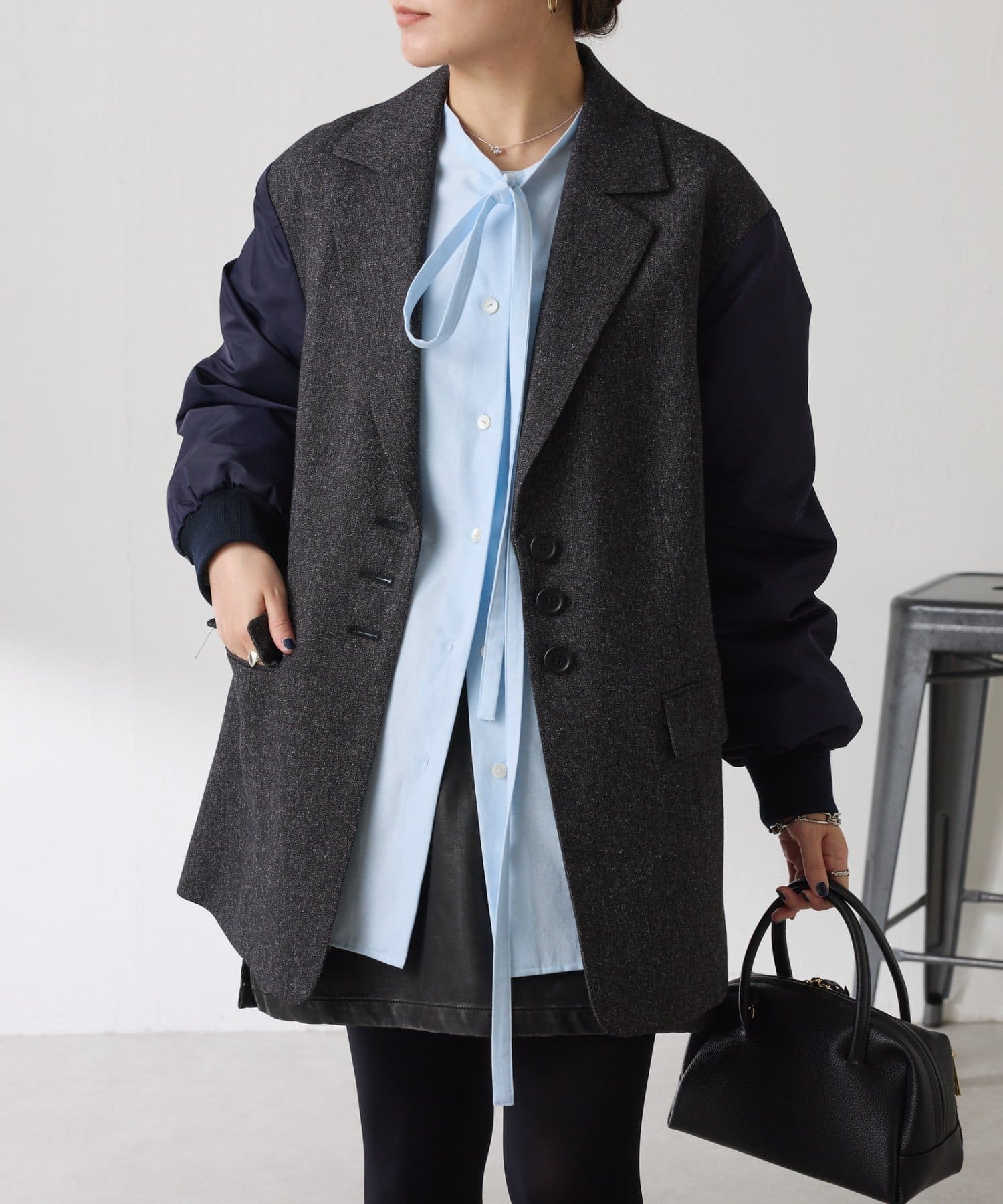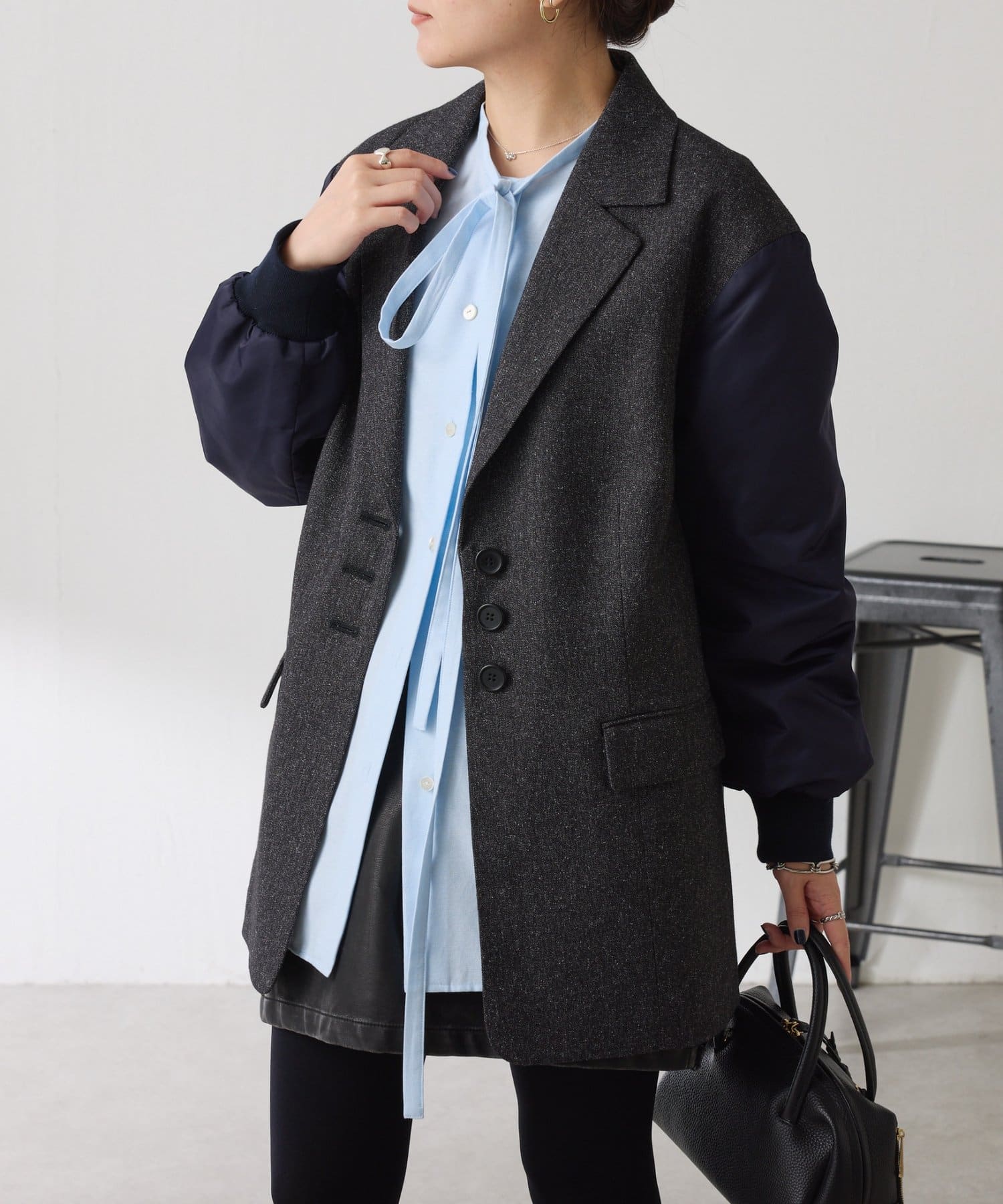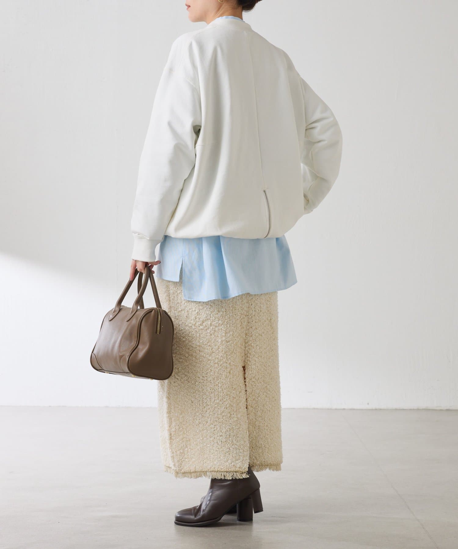 ・長めの袖×オーバーサイズが甘すぎず、身体のラインを拾わず1枚でこなれ感の出るデザイン。