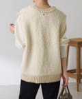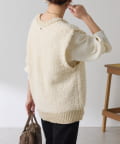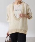 ・ざっくりしたニットですが、深めのUネックにすることで抜け感のある雰囲気に。ボウタイブラウスなどもレイヤードしやすいです。