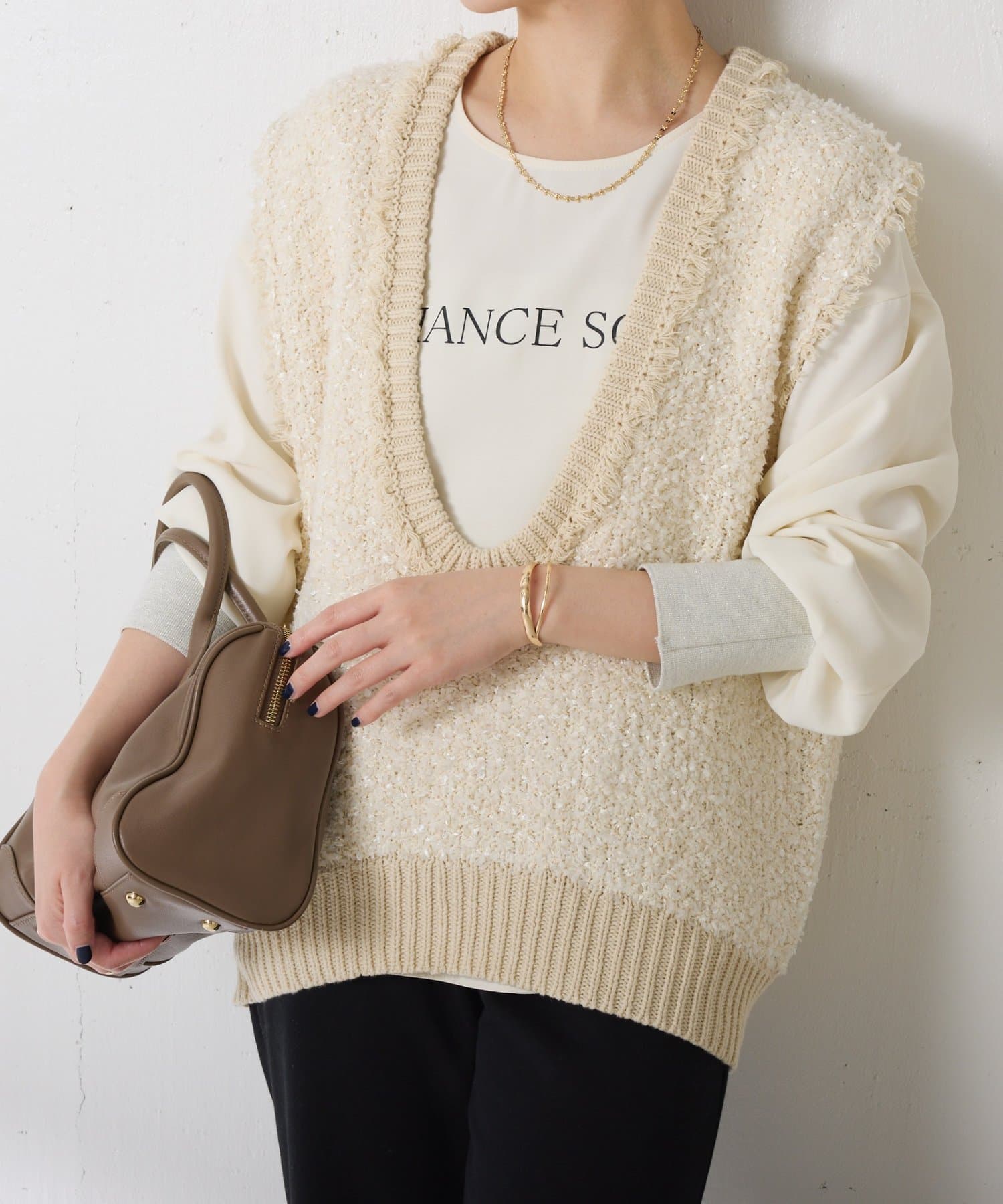 TOP > COLLAGE GALLARDAGALANTE > レディース > トップス > ベスト/ジレ > 【プラスワンアイテム】ツイードライクニットベスト
