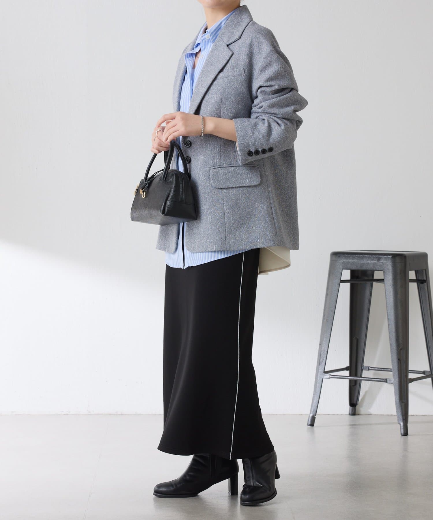 きれいめジャケットを合わせてセレモニーや祝典や同窓会など幅広シーンで活躍します◎