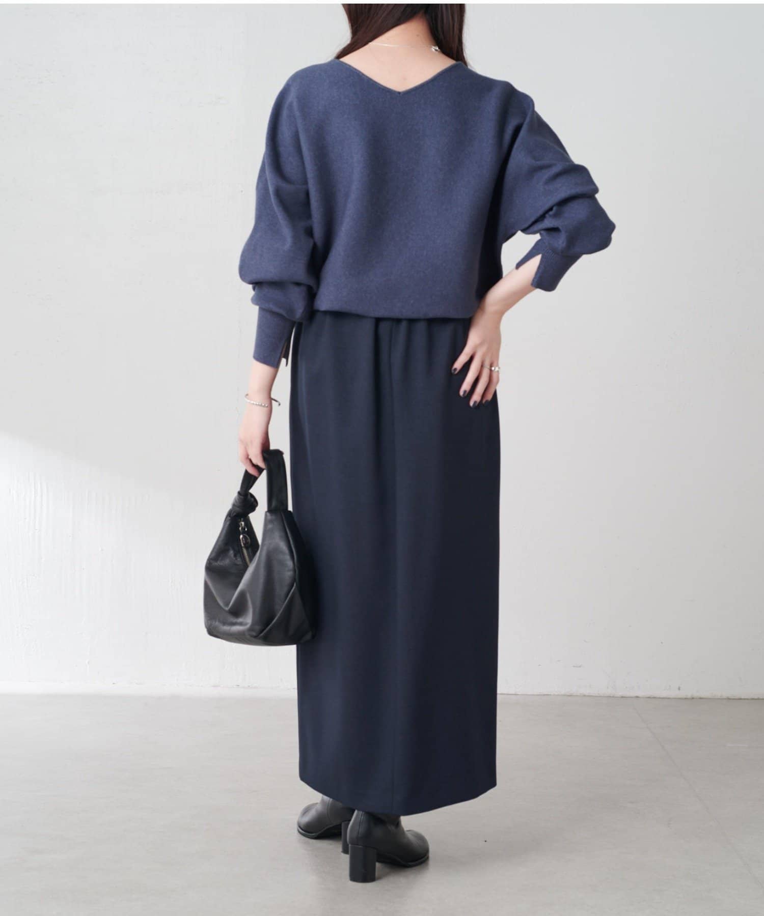 ・アシンメトリーなラップ風デザインですが、ラップスカートではなく、浅めのスリットなので安心して穿いていただけます。