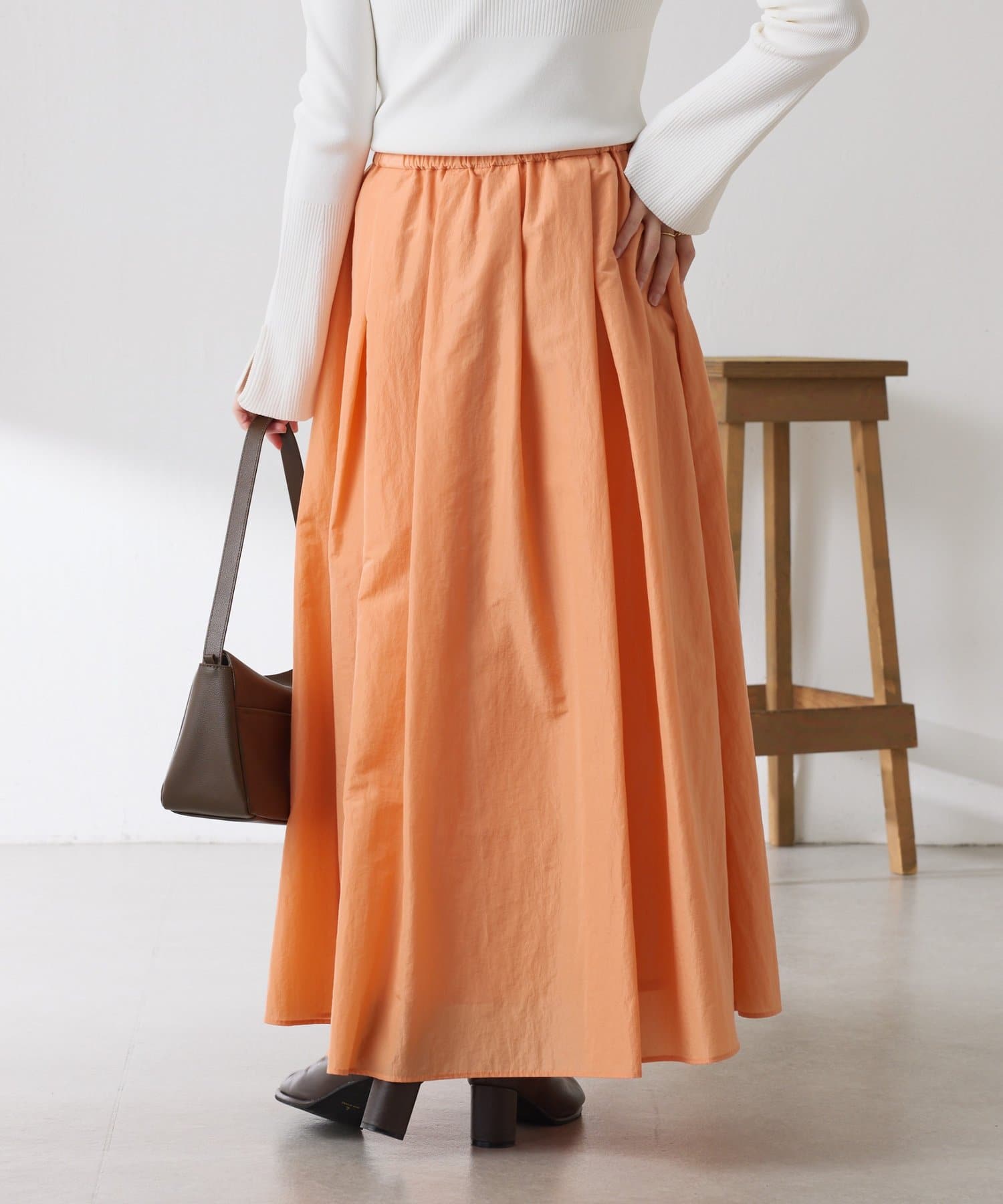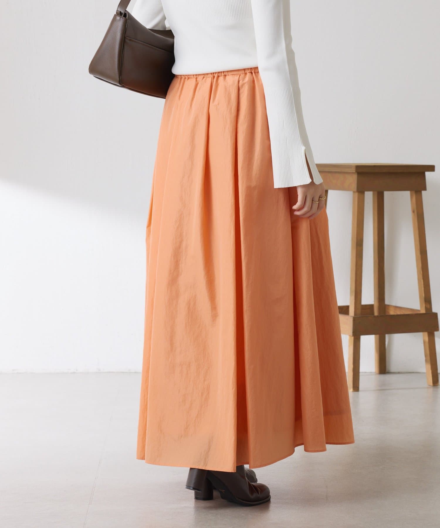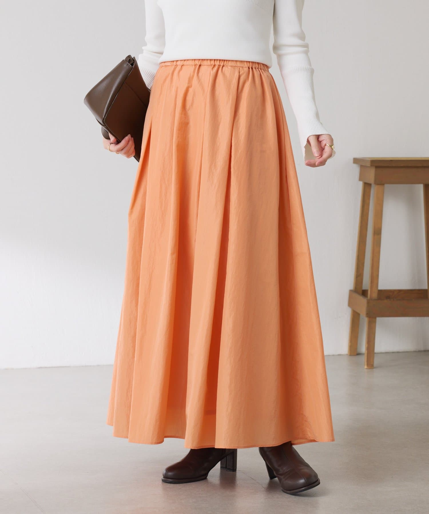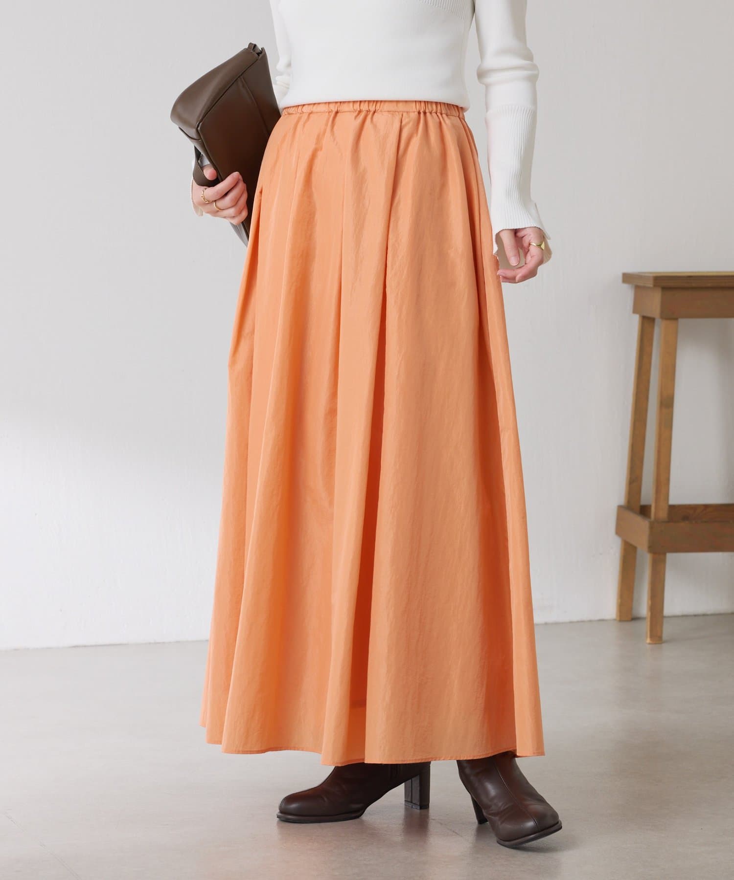 ・タックとギャザーでボリュームを出したコーデの主役になる華やかスカート。