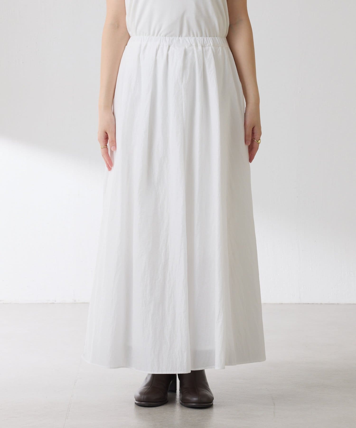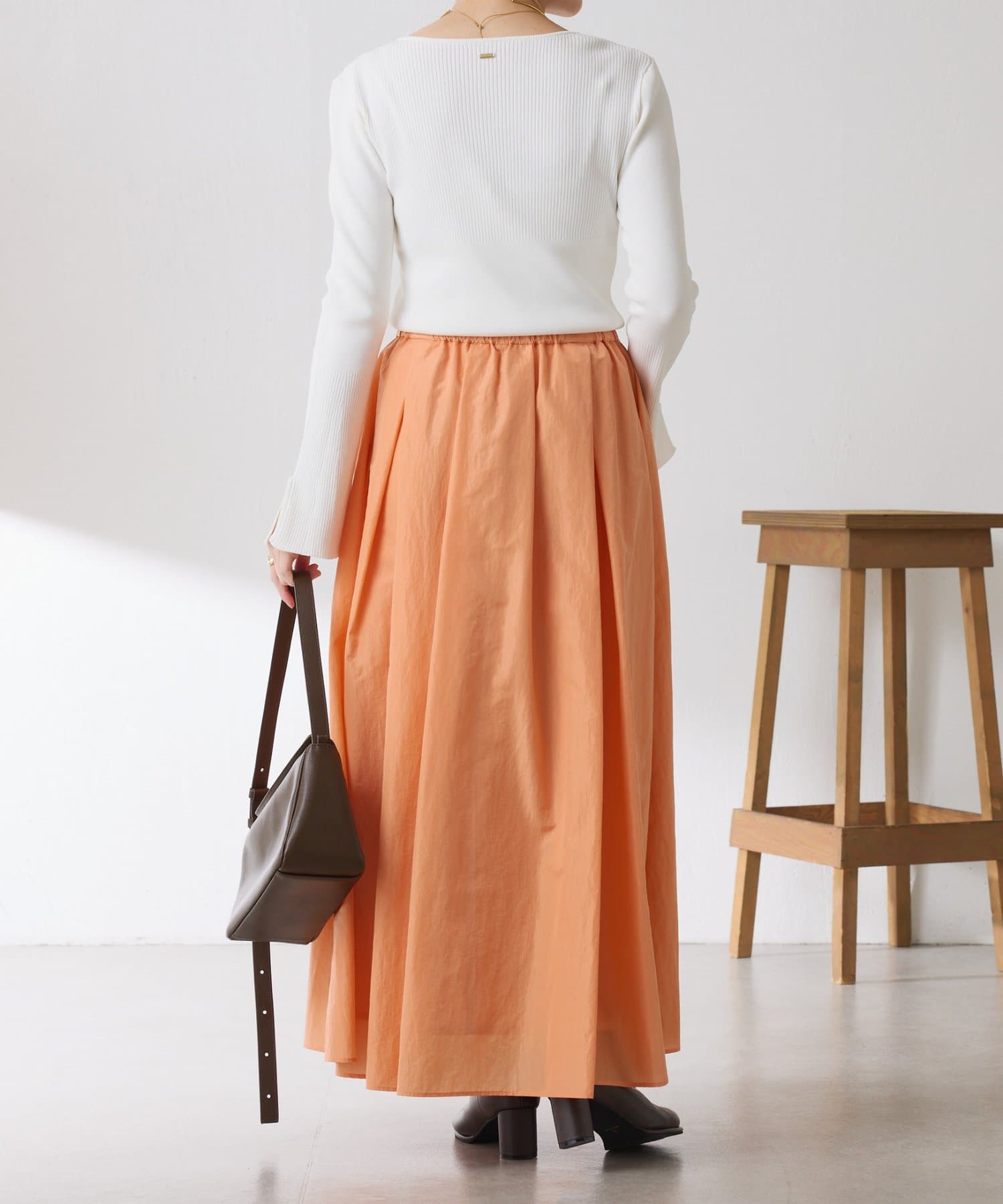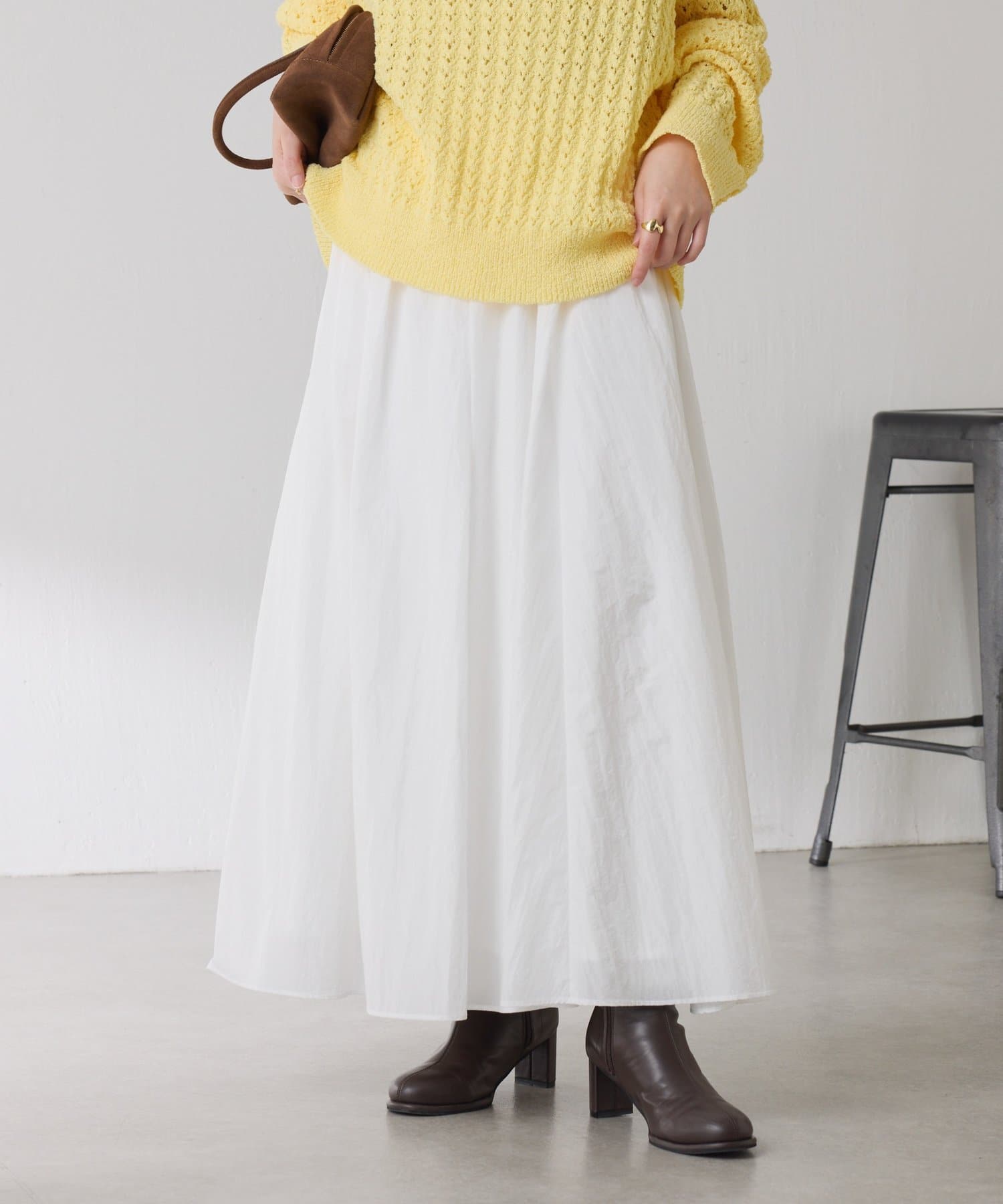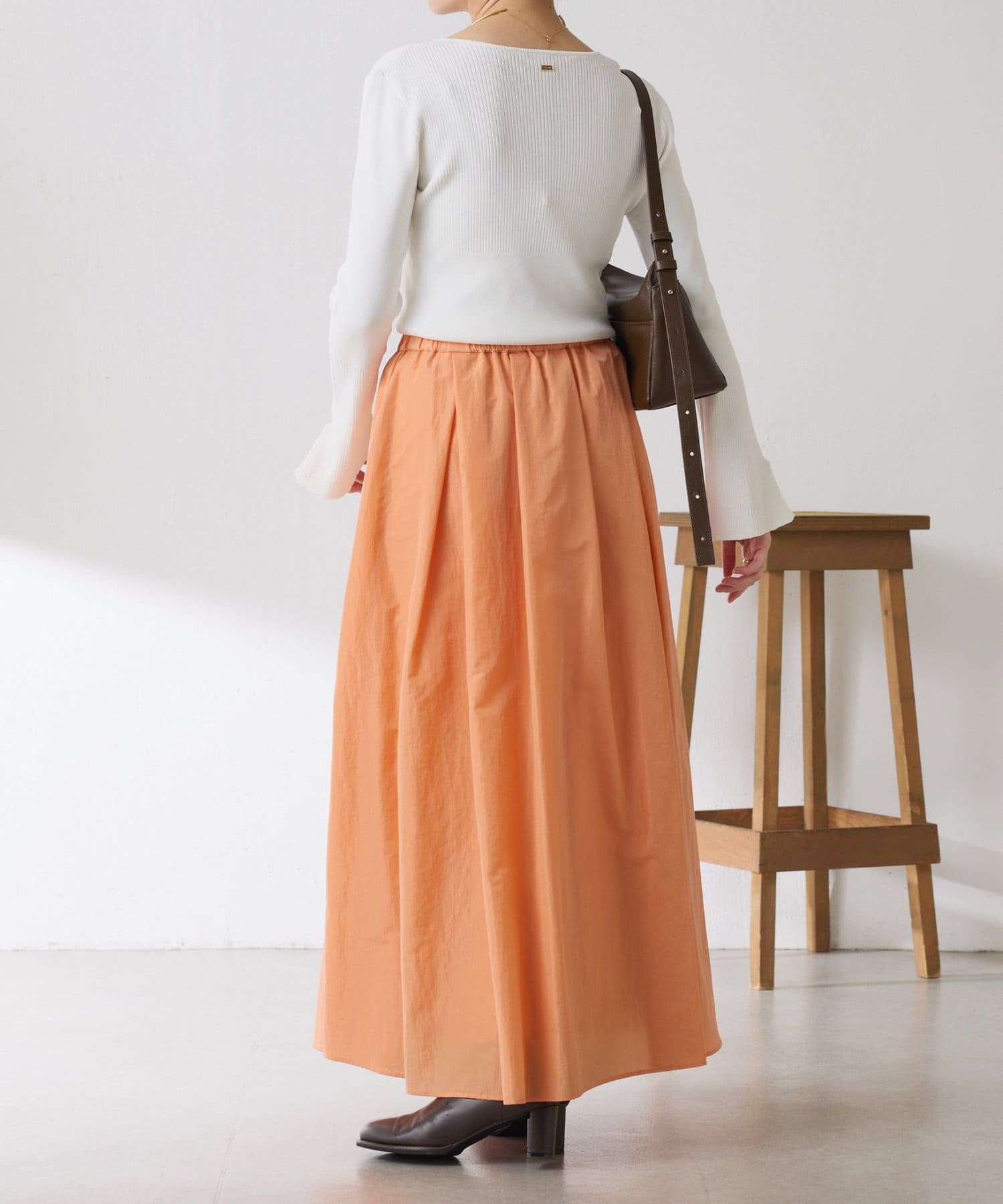 ・タックとギャザーでボリュームを出したコーデの主役になる華やかスカート。