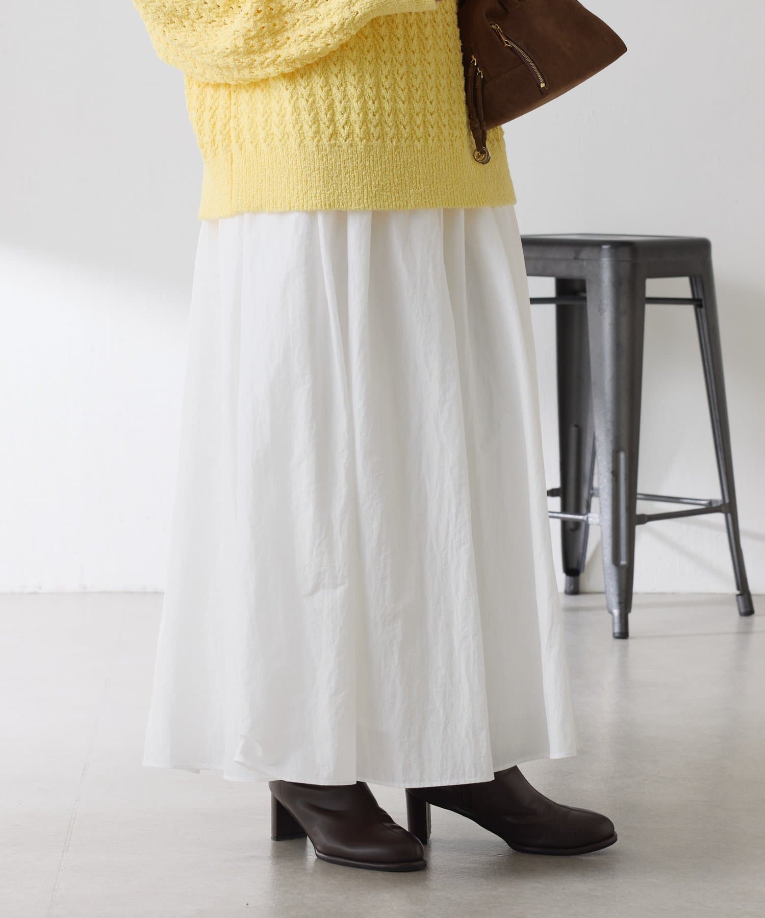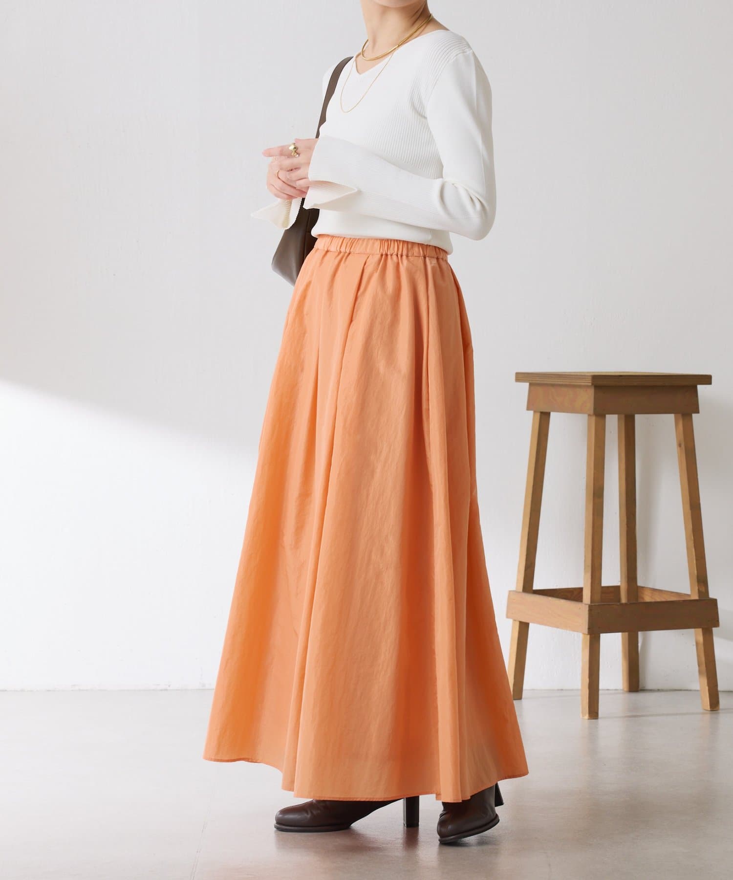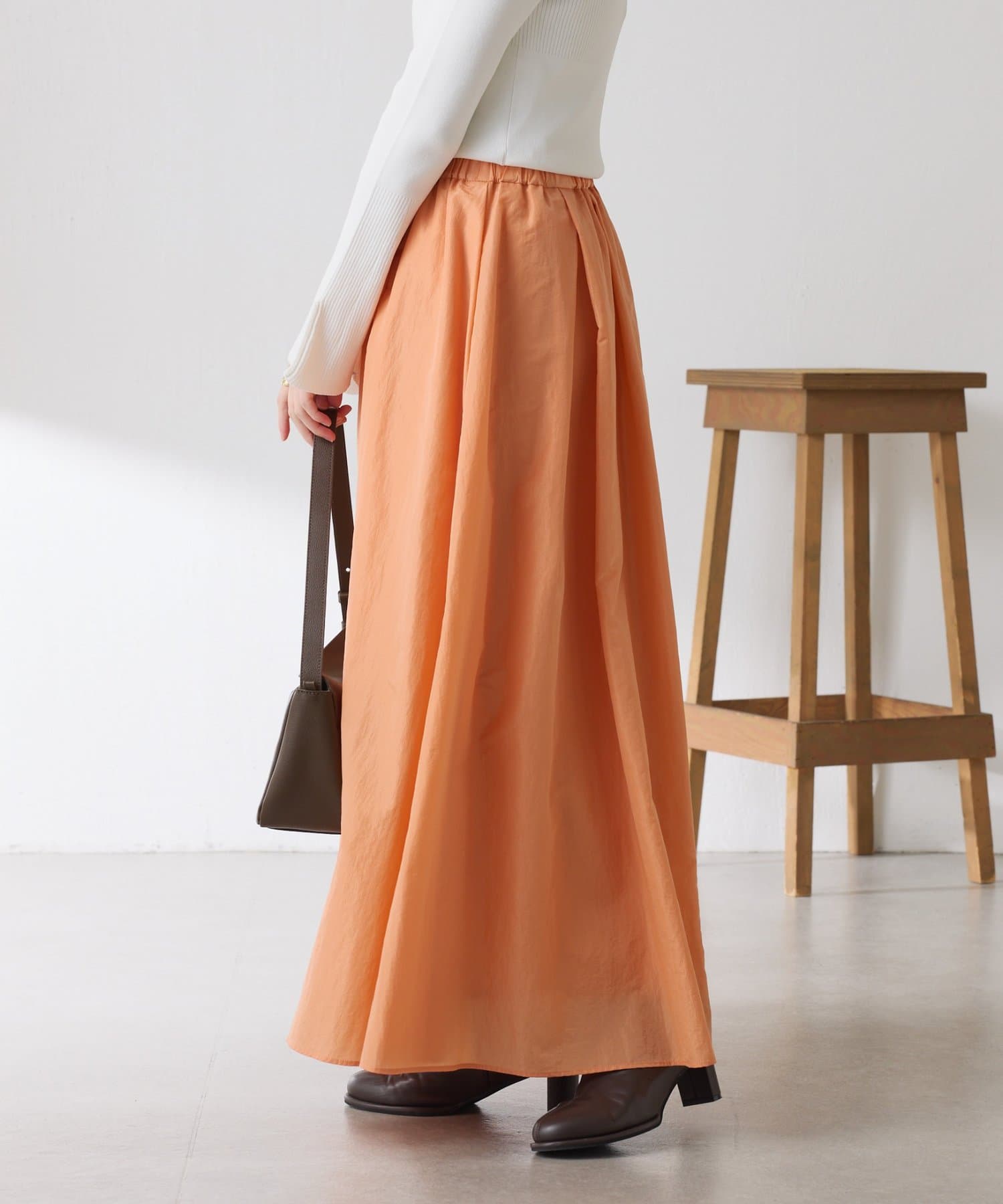 ほどよいツヤが抜け感を演出してくれるふんわりスカート