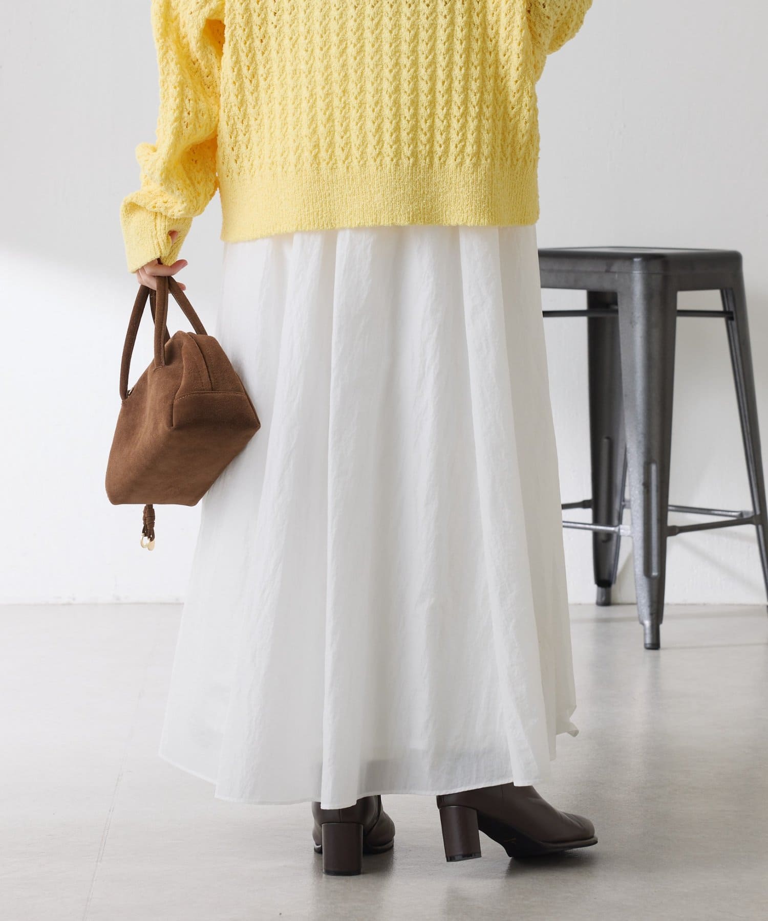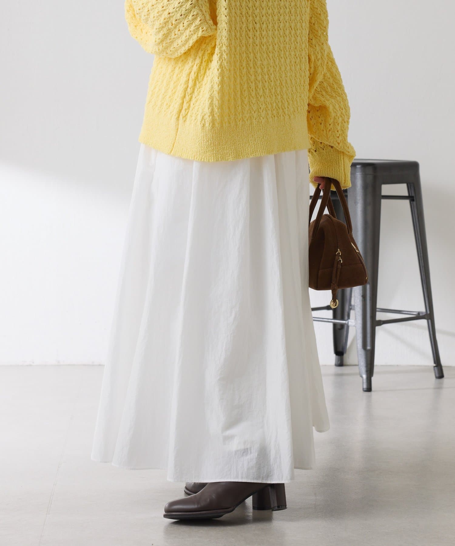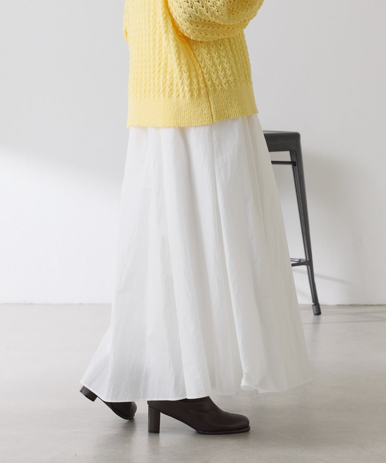 ほどよいツヤが抜け感を演出してくれるふんわりスカート