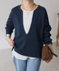 【着痩せ◎】Vネックバスクニット