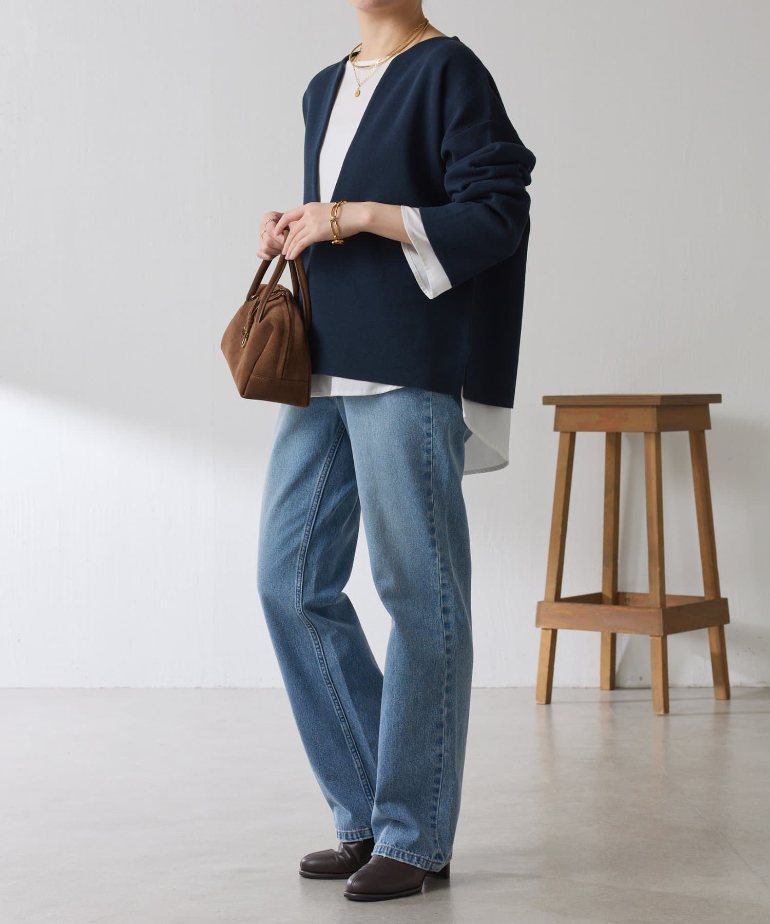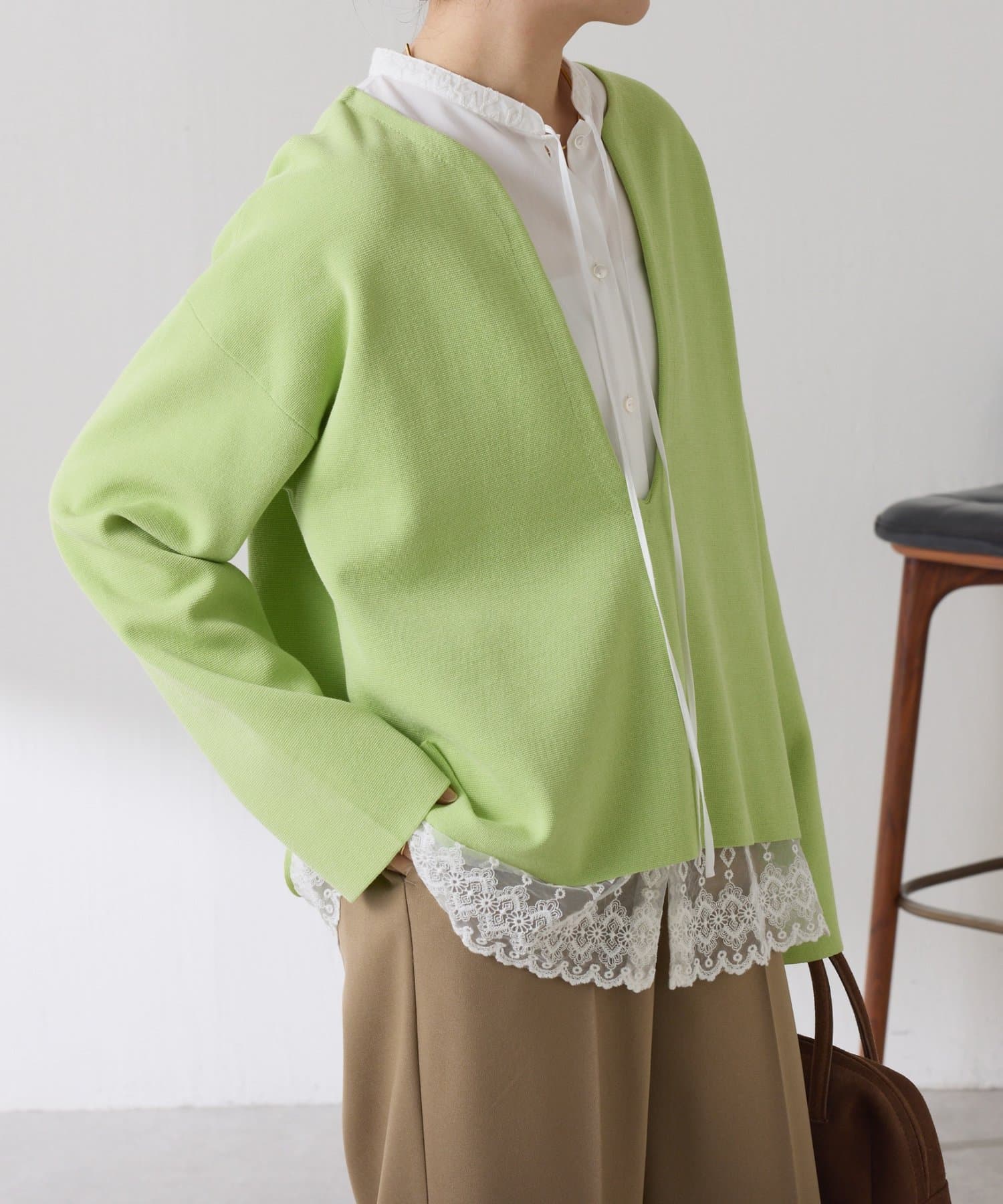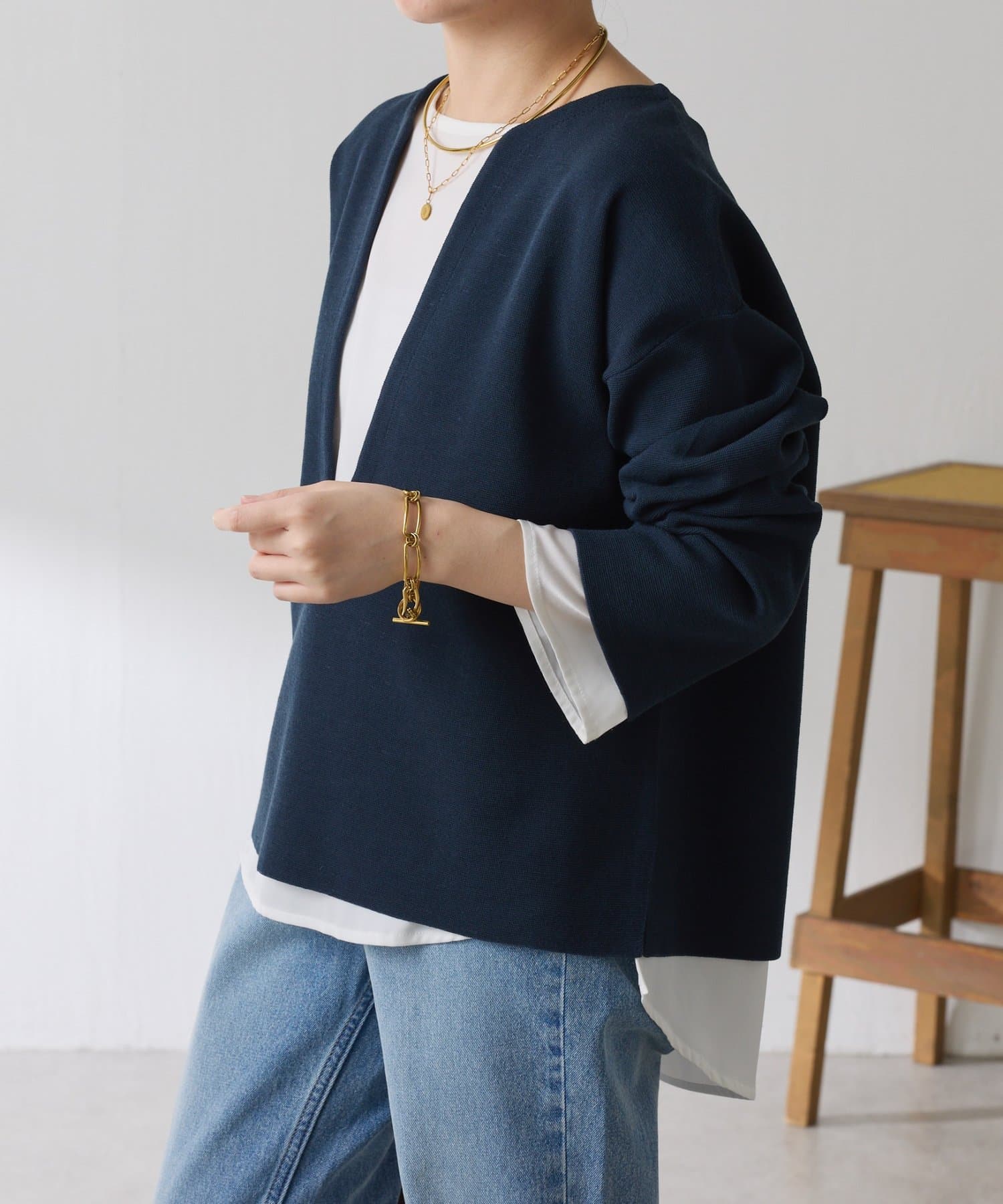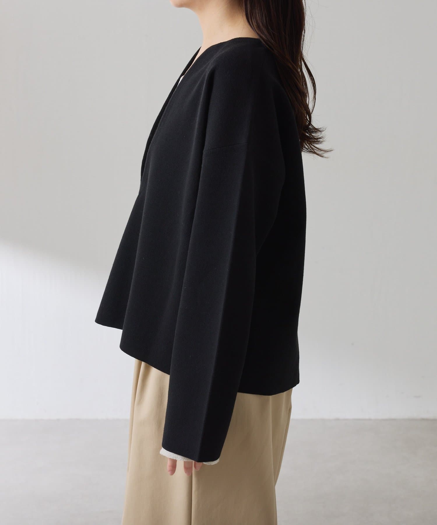 【裾シアーインナー CLN5042206A0001】と合わせて裾や袖口からインナーを覗かせてメリハリを出すのもおすすめです。