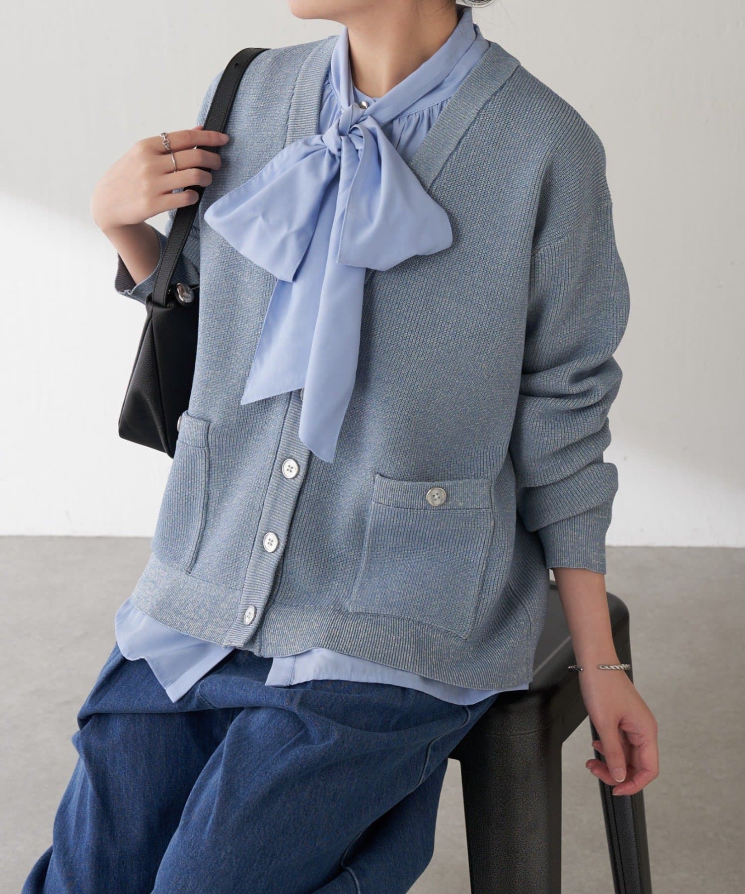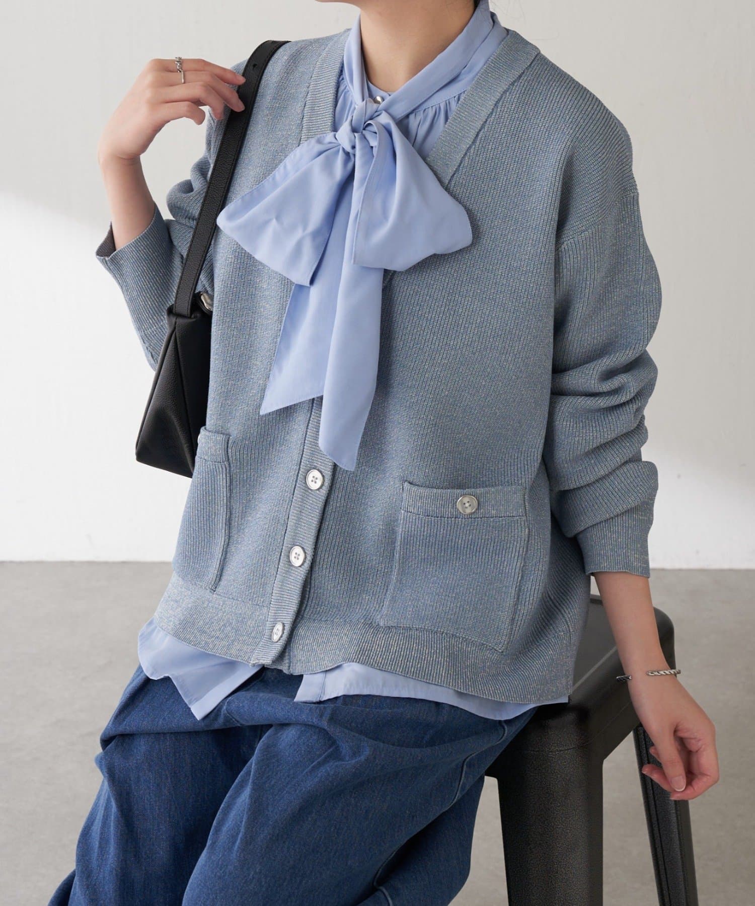 COLLAGE GALLARDAGALANTE(コラージュ ガリャルダガランテ) 【腰周りカバー】ツヤボタンカーディガン