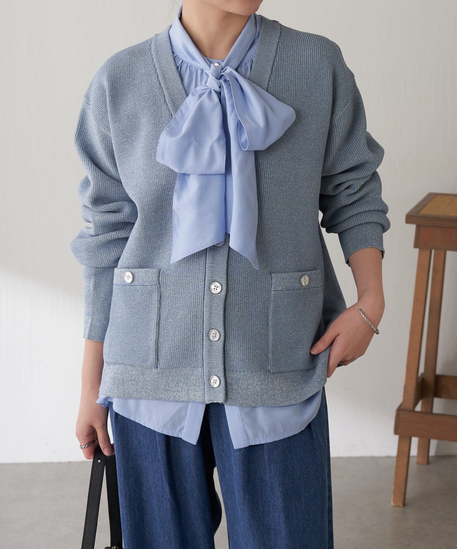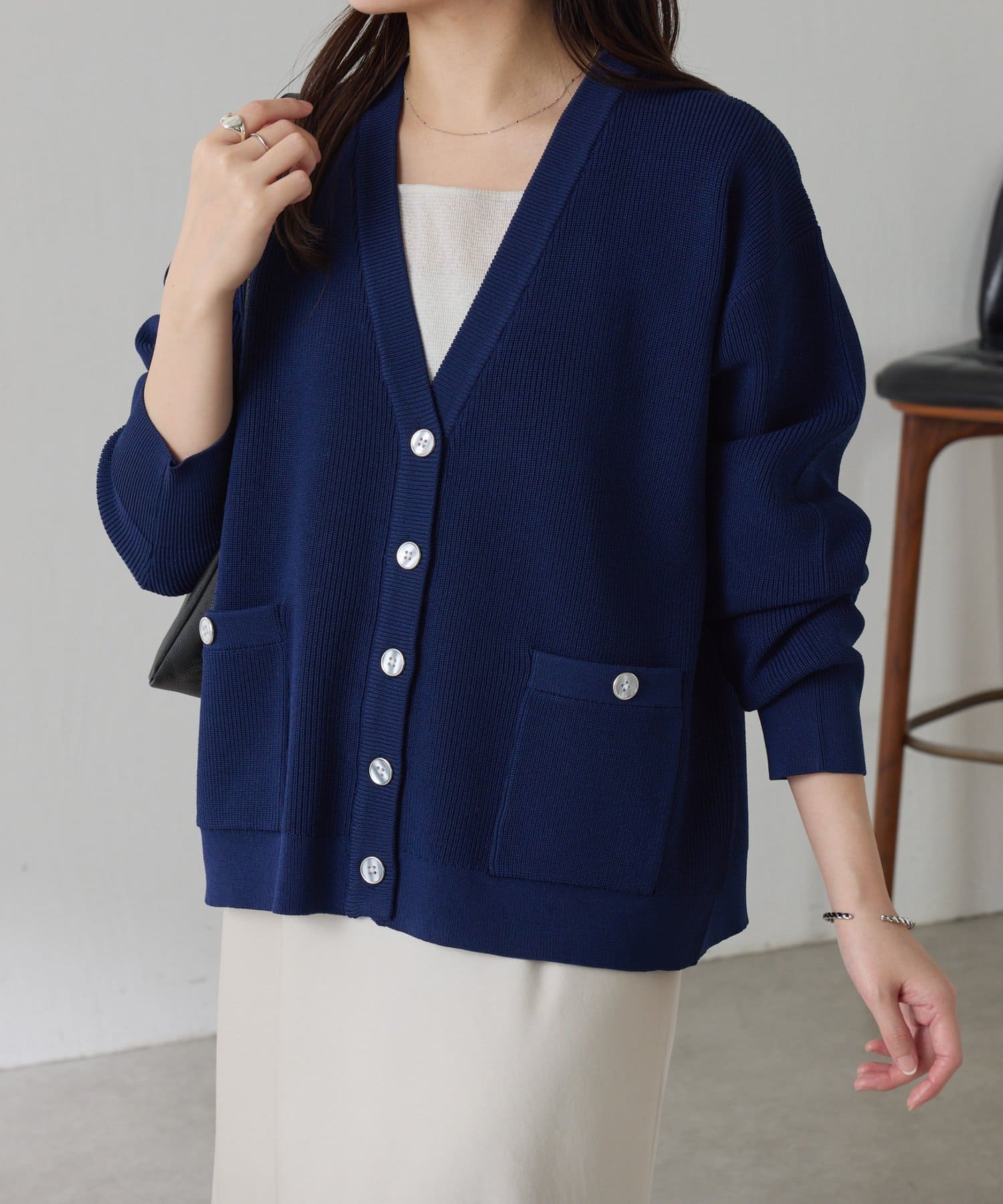 TOP > COLLAGE GALLARDAGALANTE > レディース > トップス > ニット/セーター > 【腰周りカバー】ツヤボタンカーディガン