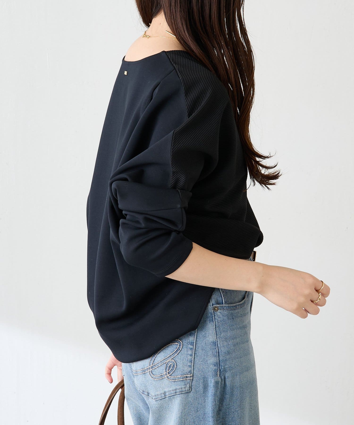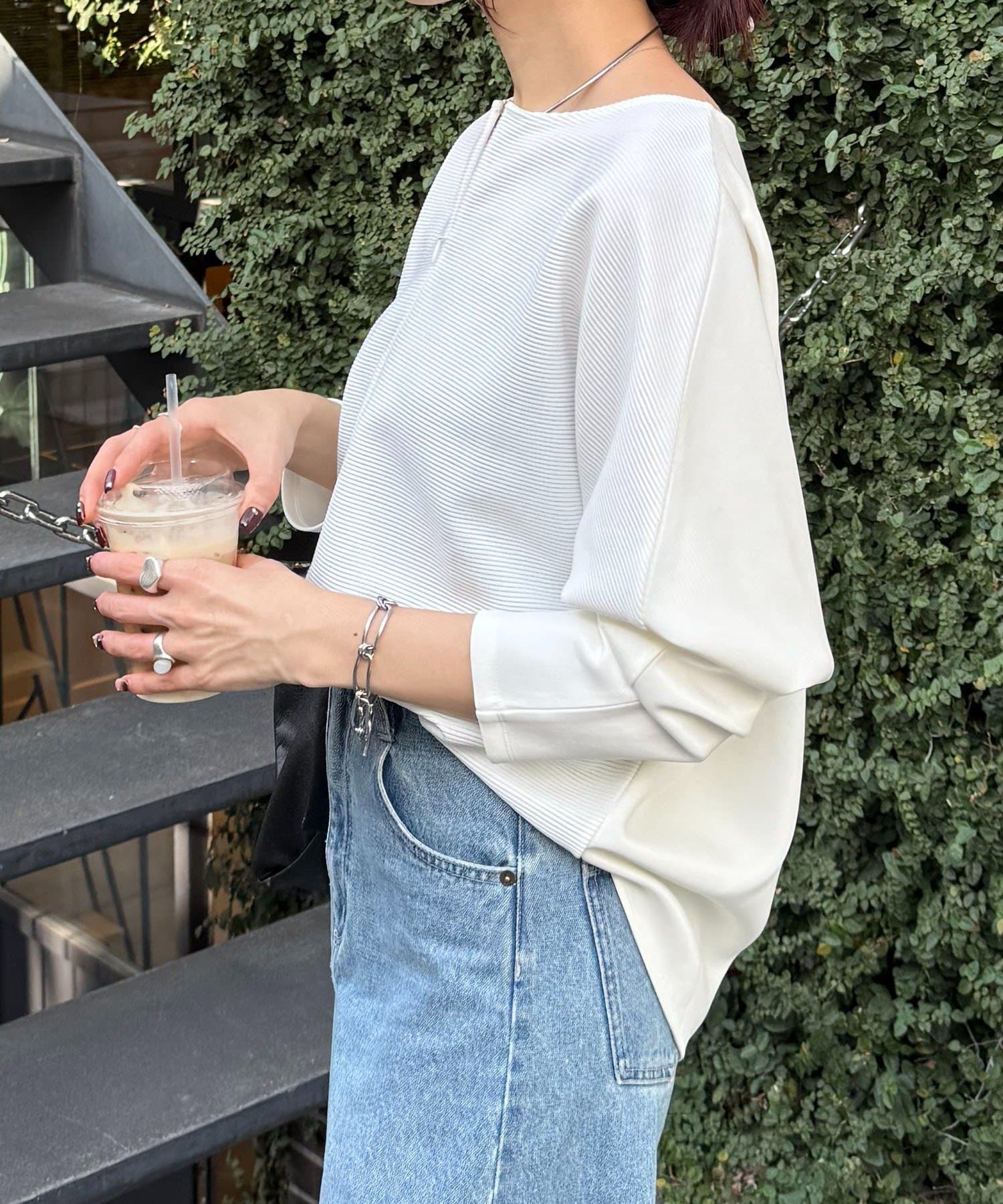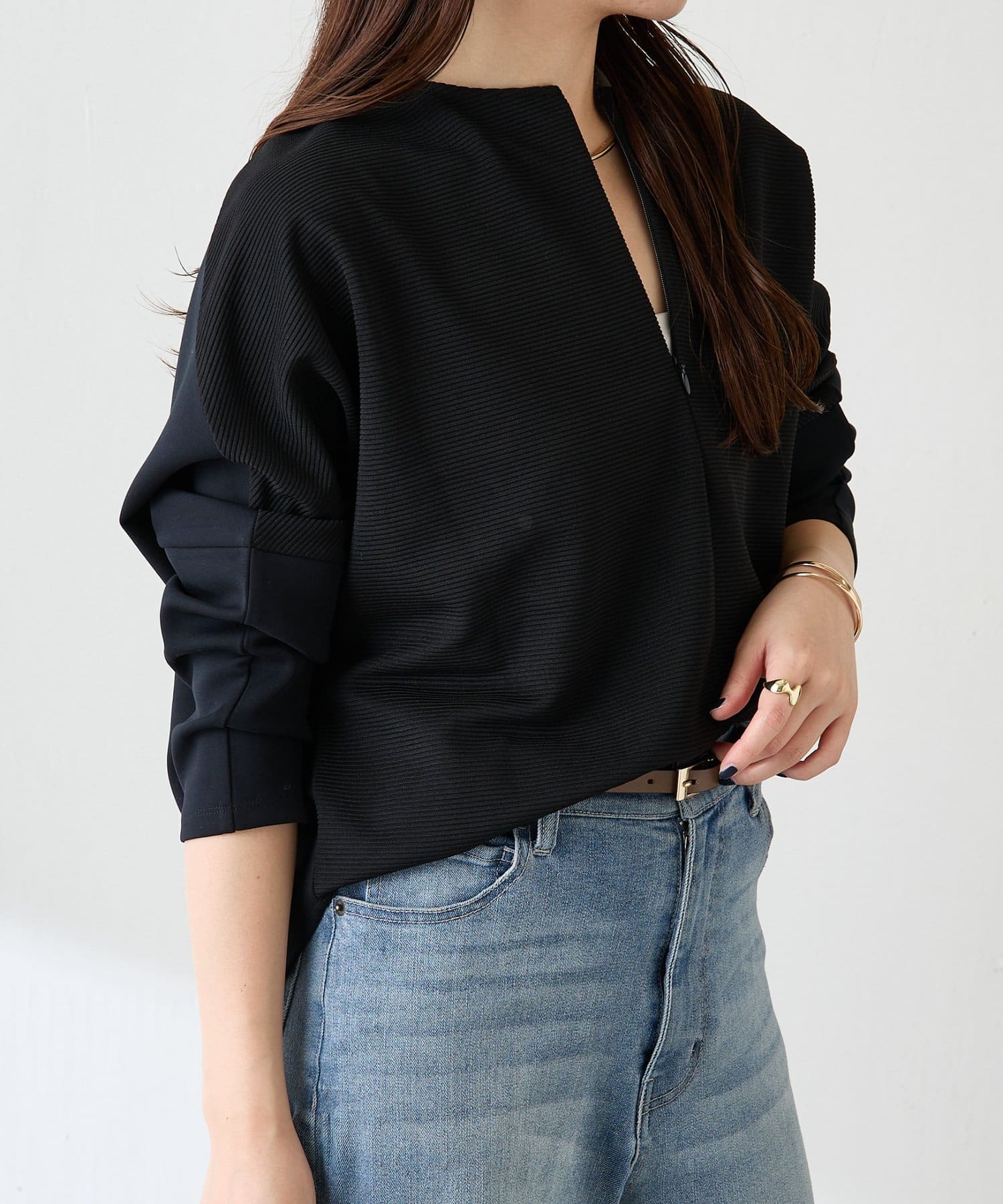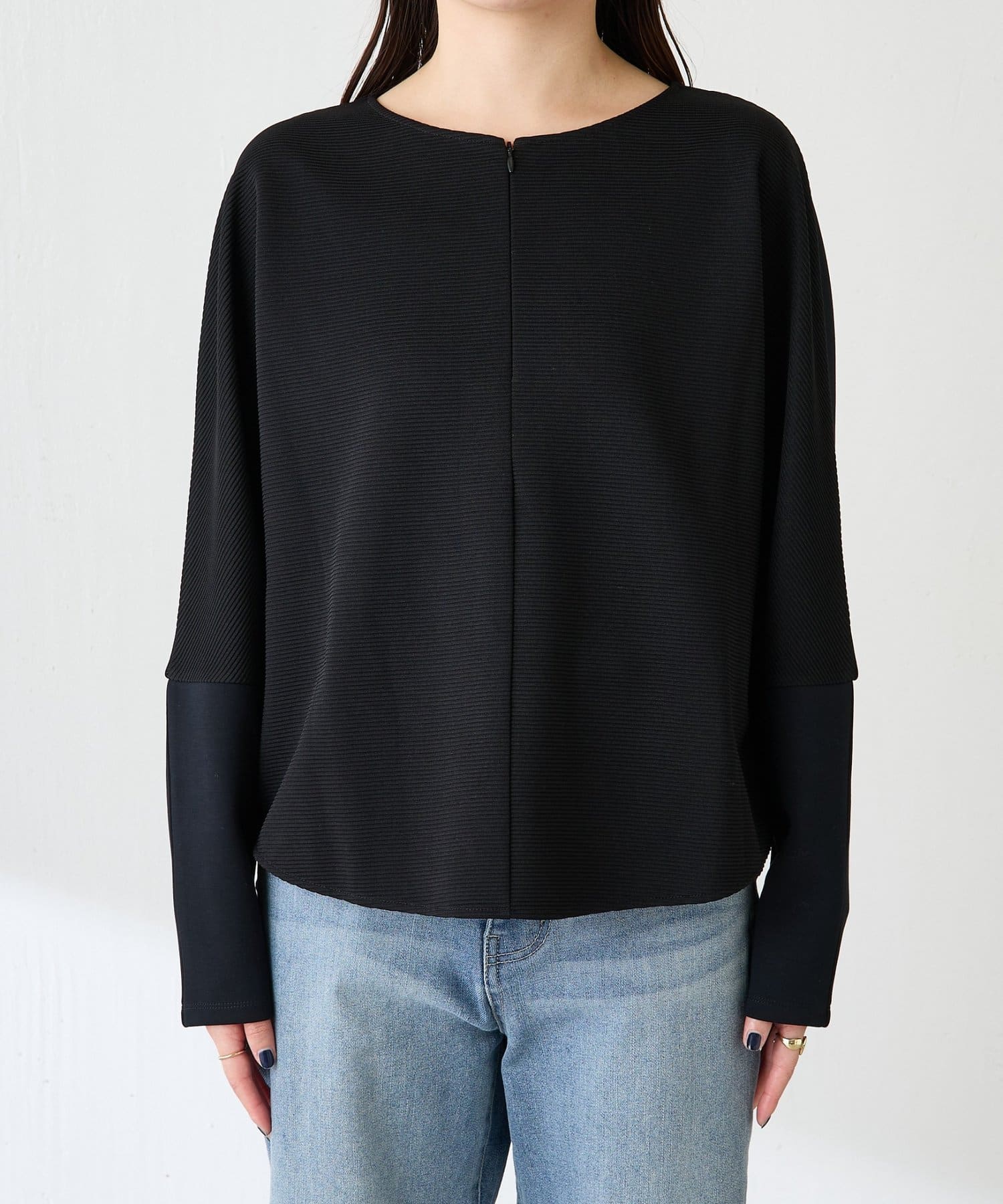 ・フロントと袖部分は立体感のある横段のリップル素材を使用することで、身体のラインを拾いません◎