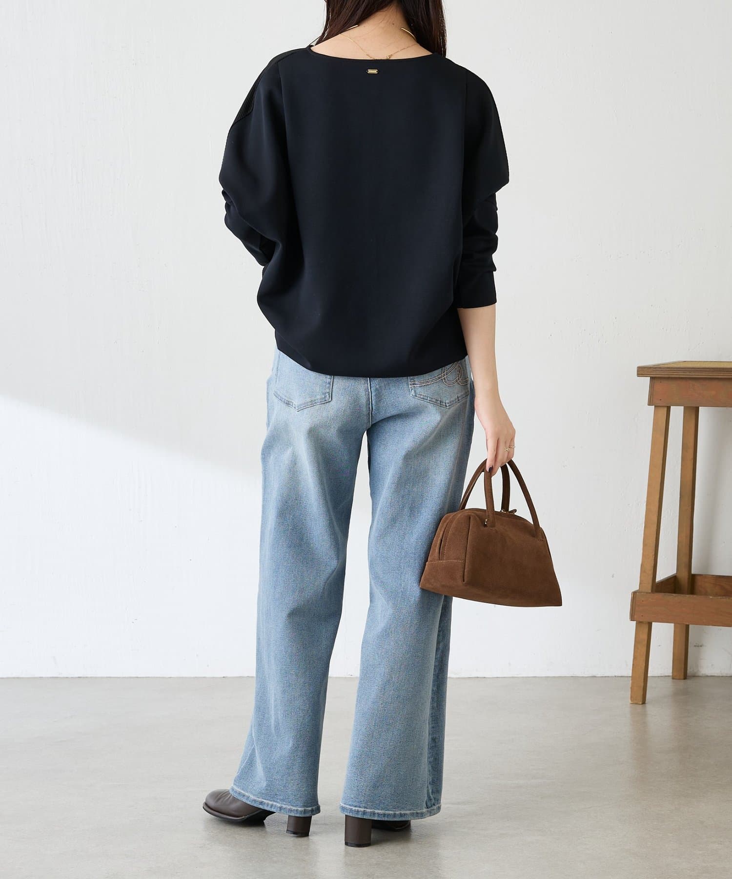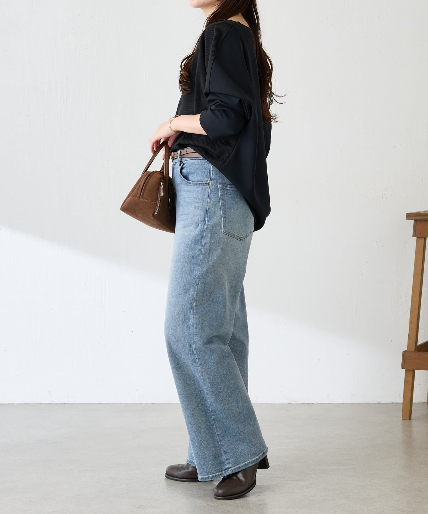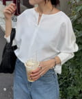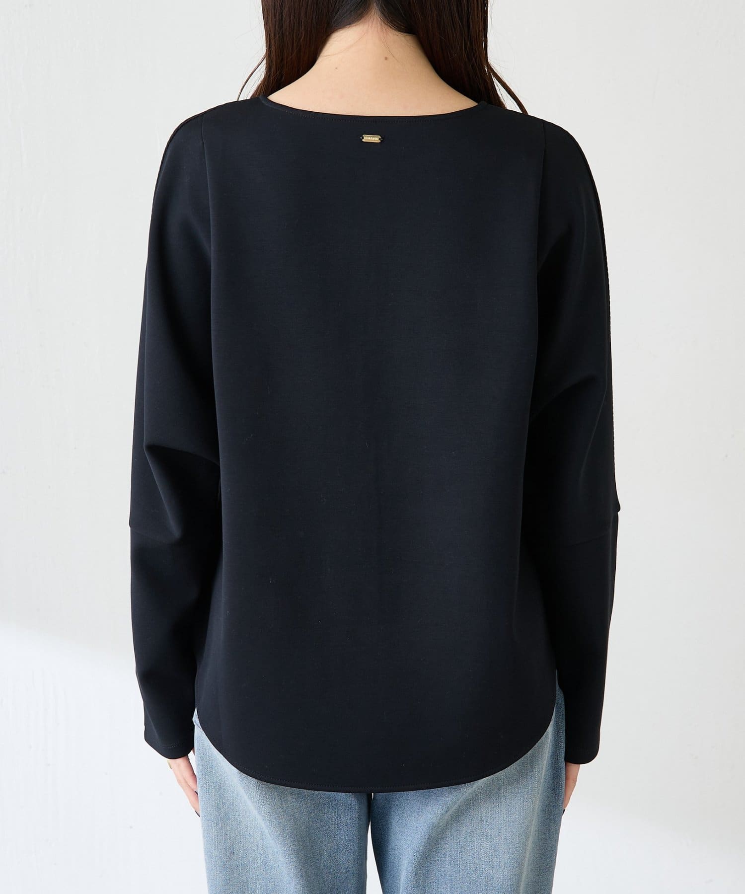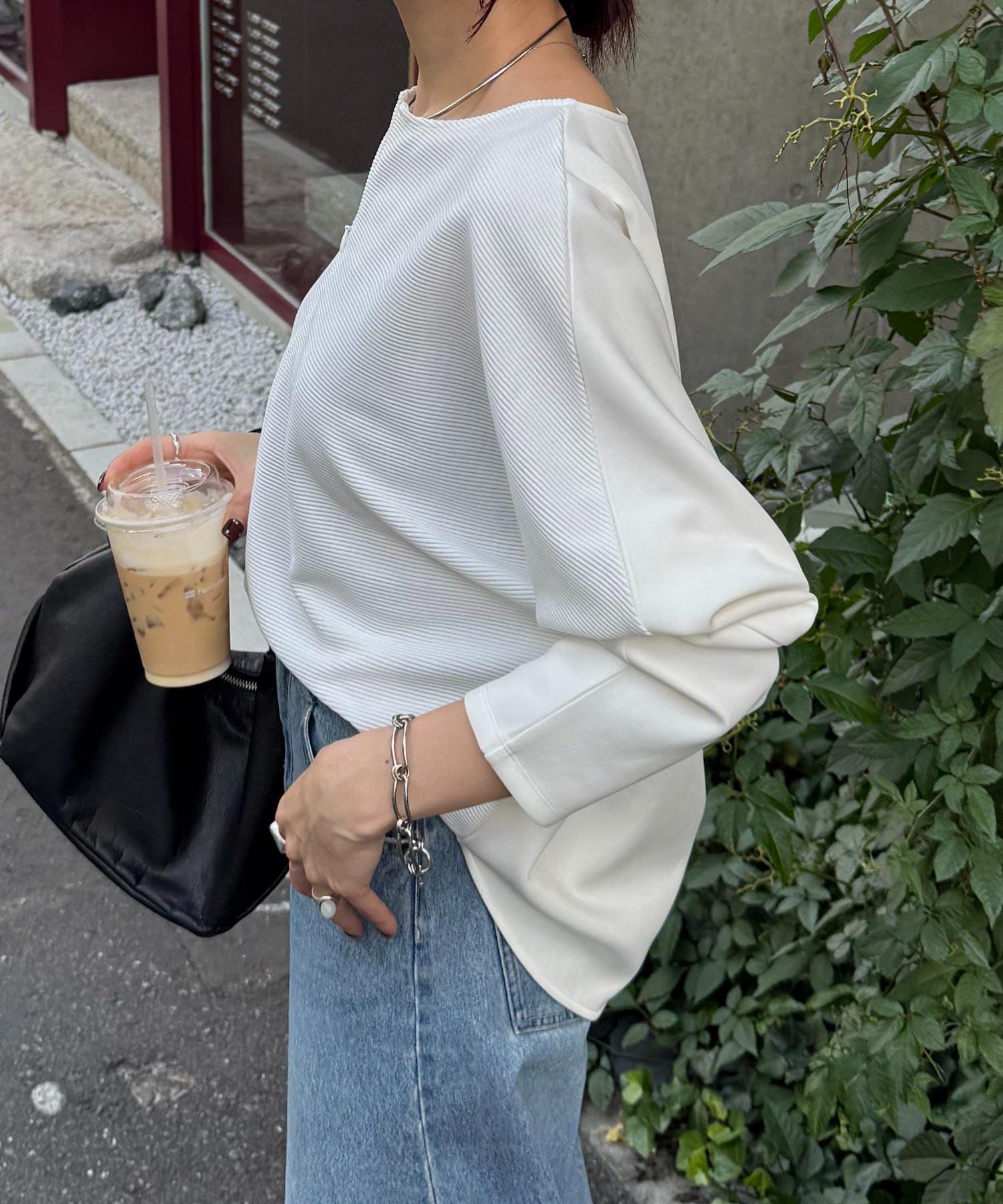 ・フロントと袖部分は立体感のある横段のリップル素材を使用することで、身体のラインを拾いません◎