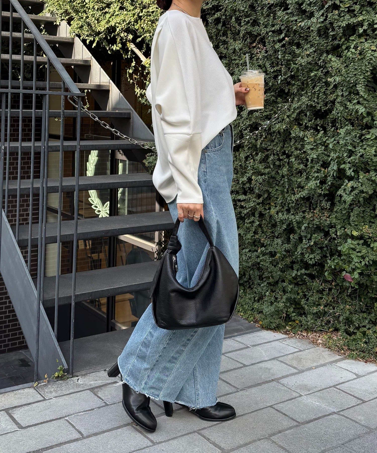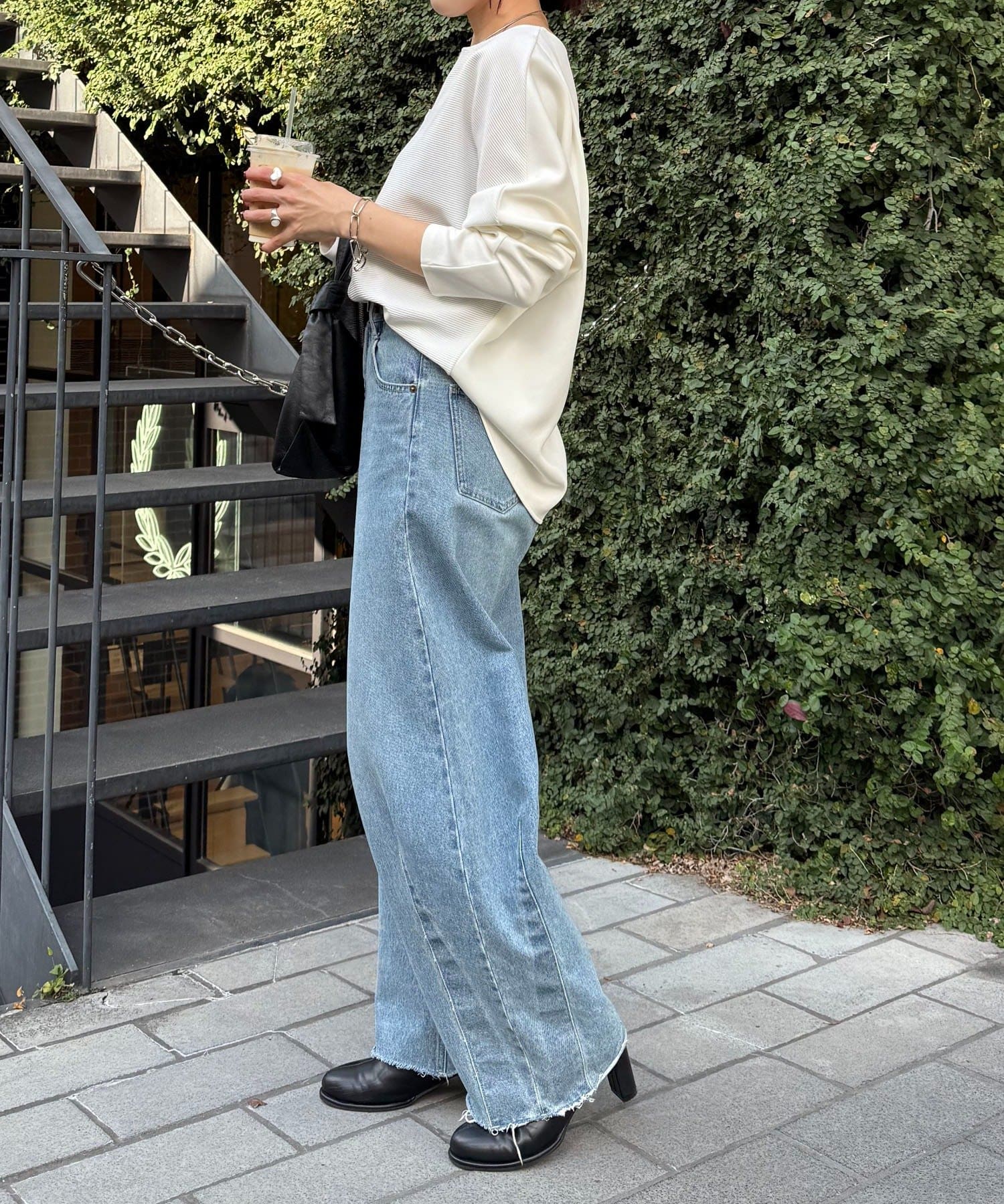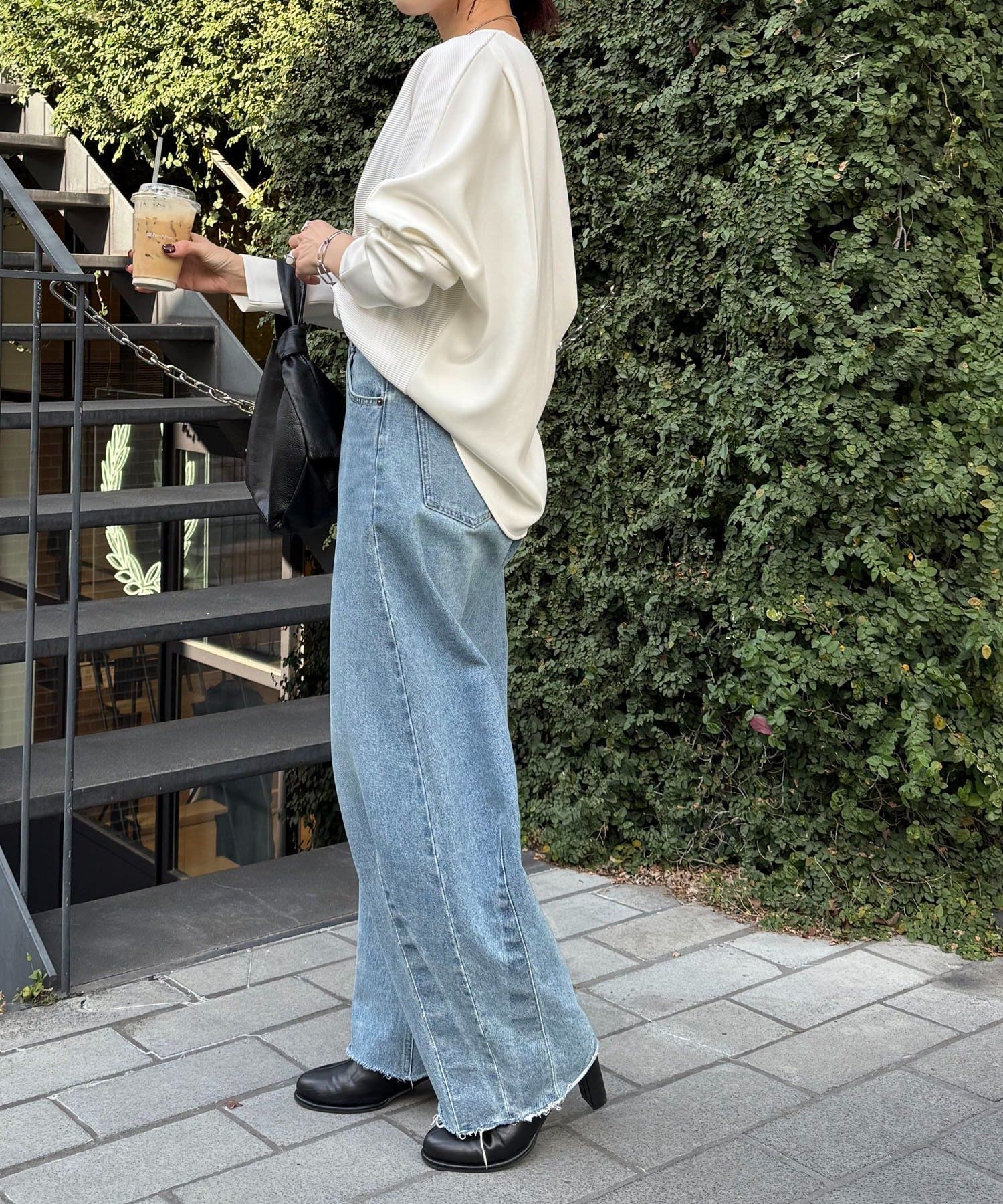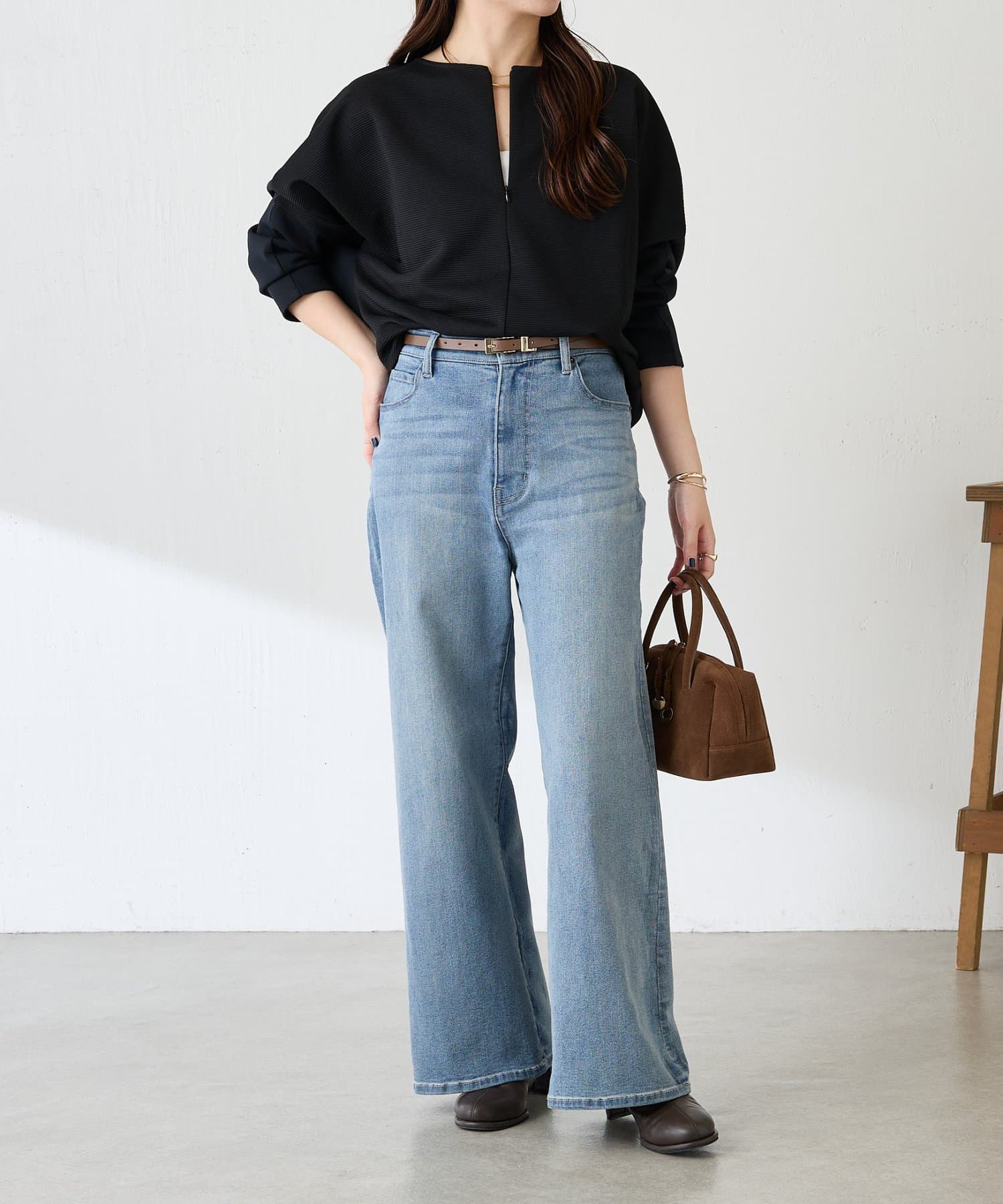 ・フロントと袖部分は立体感のある横段のリップル素材を使用することで、身体のラインを拾いません◎