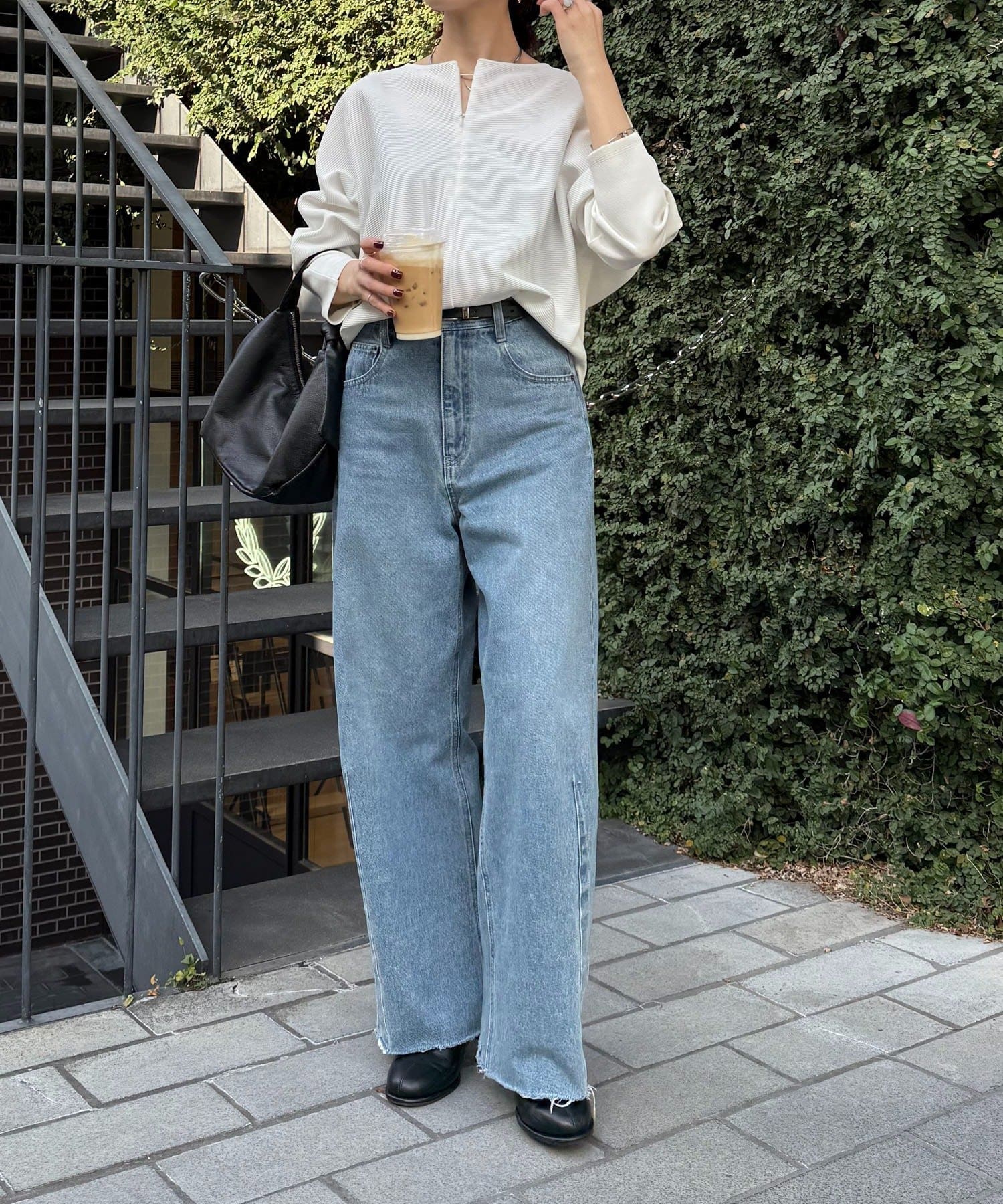 ・フロントにはコンシールファスナー付きで、スキッパーにして抜け感を出しても着ていただけます◎