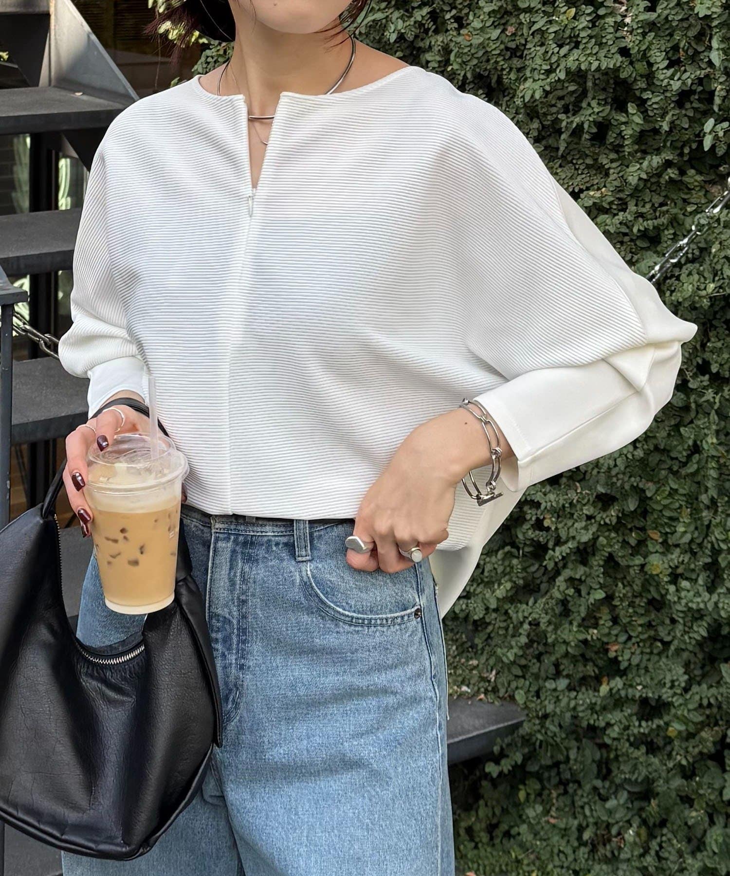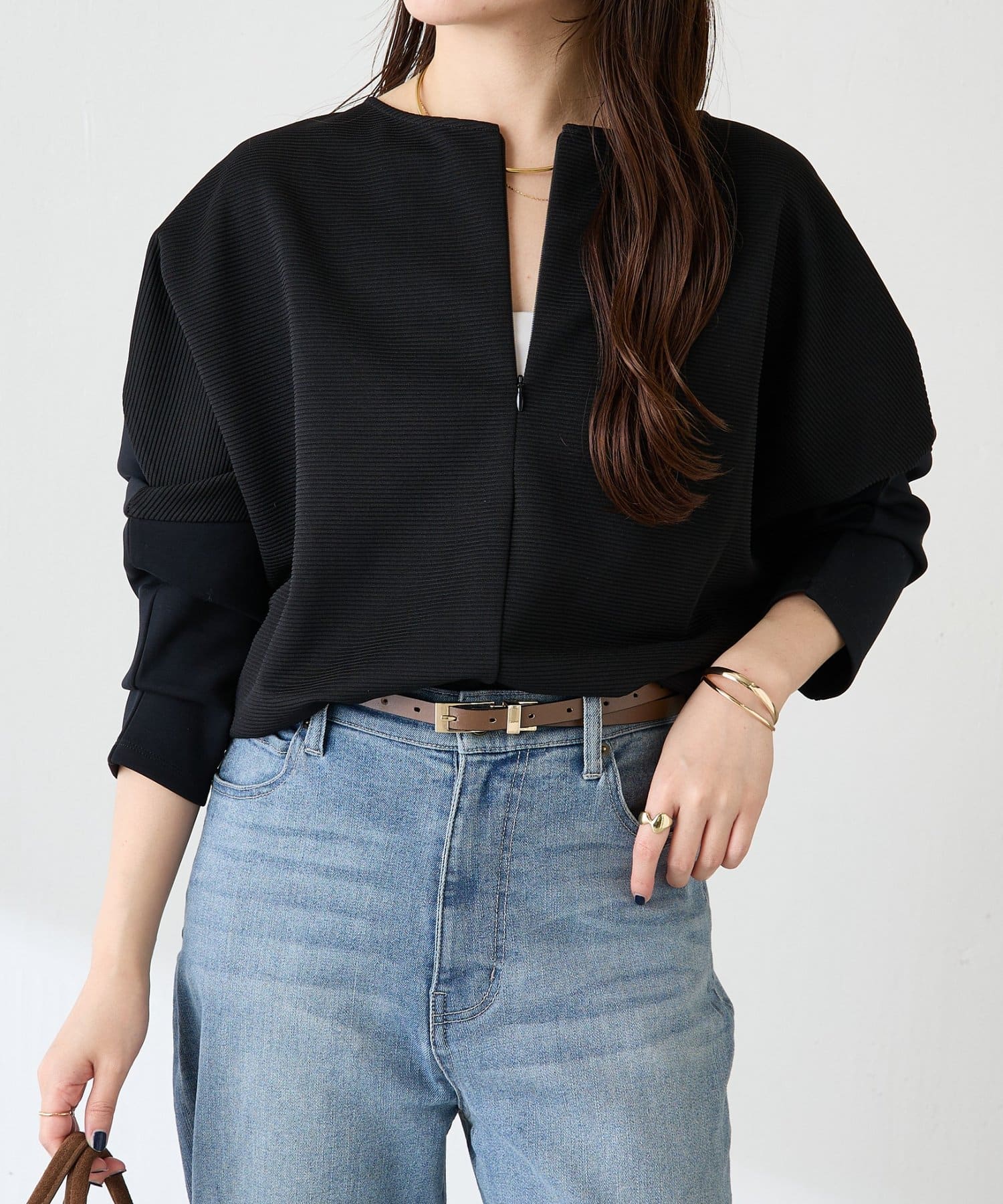 TOP > COLLAGE GALLARDAGALANTE > レディース > トップス > Tシャツ/カットソー > 【ジップ付き】リップルコンビダンボールプルオーバー/セットアップ可
