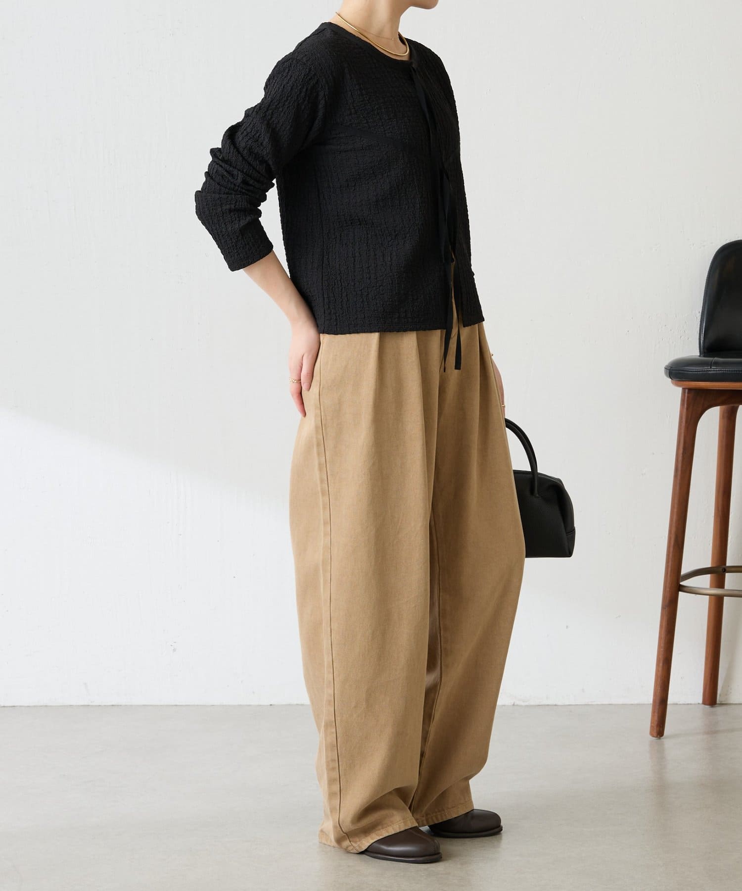 ・表情のあるくしゅくしゅとしたギャザーが体のラインを拾わないのも嬉しいポイント。