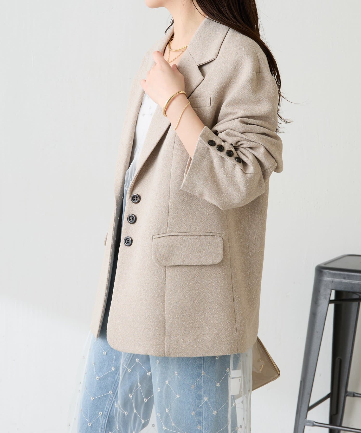 ・肩を落としたオーバージャケットでこなれ感のある雰囲気を演出できます。