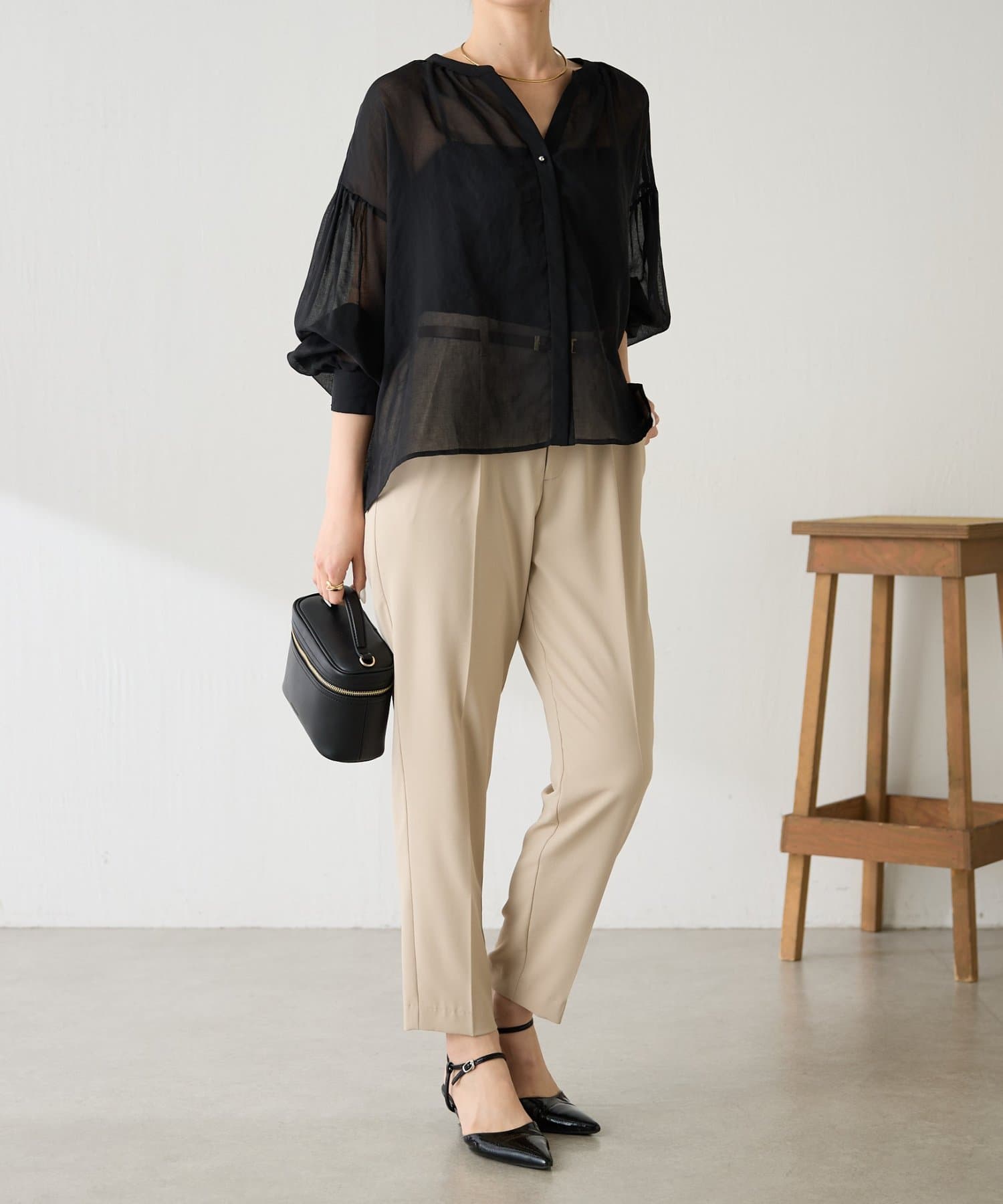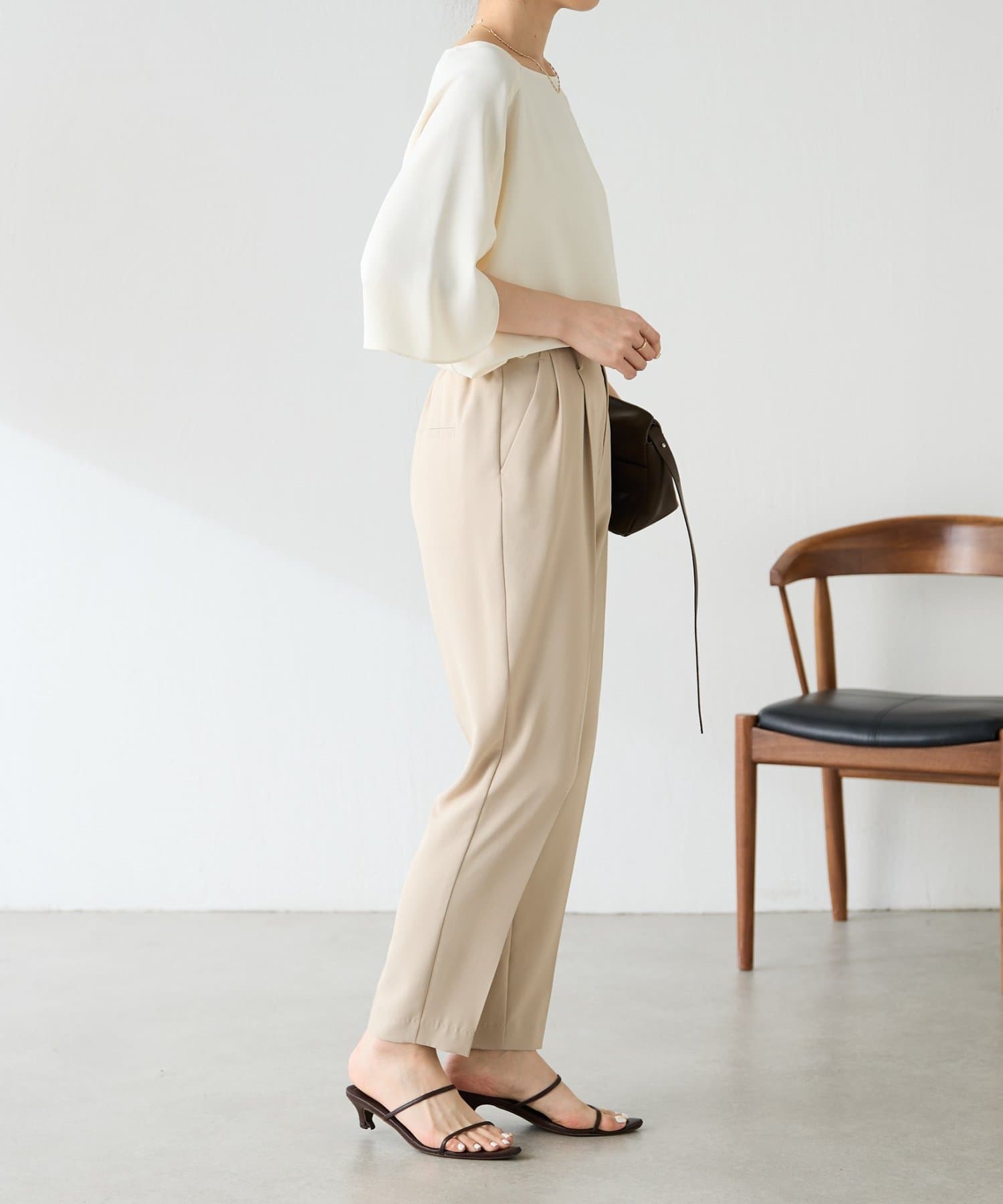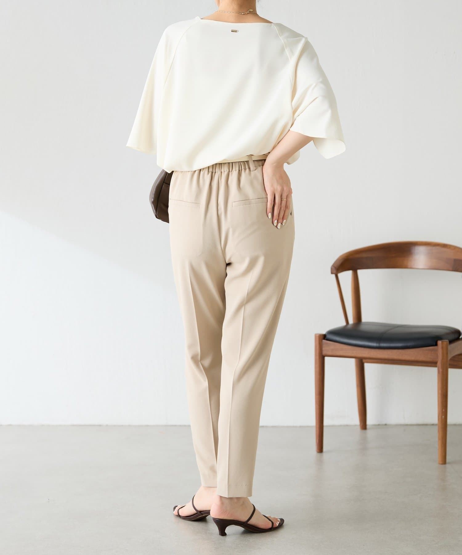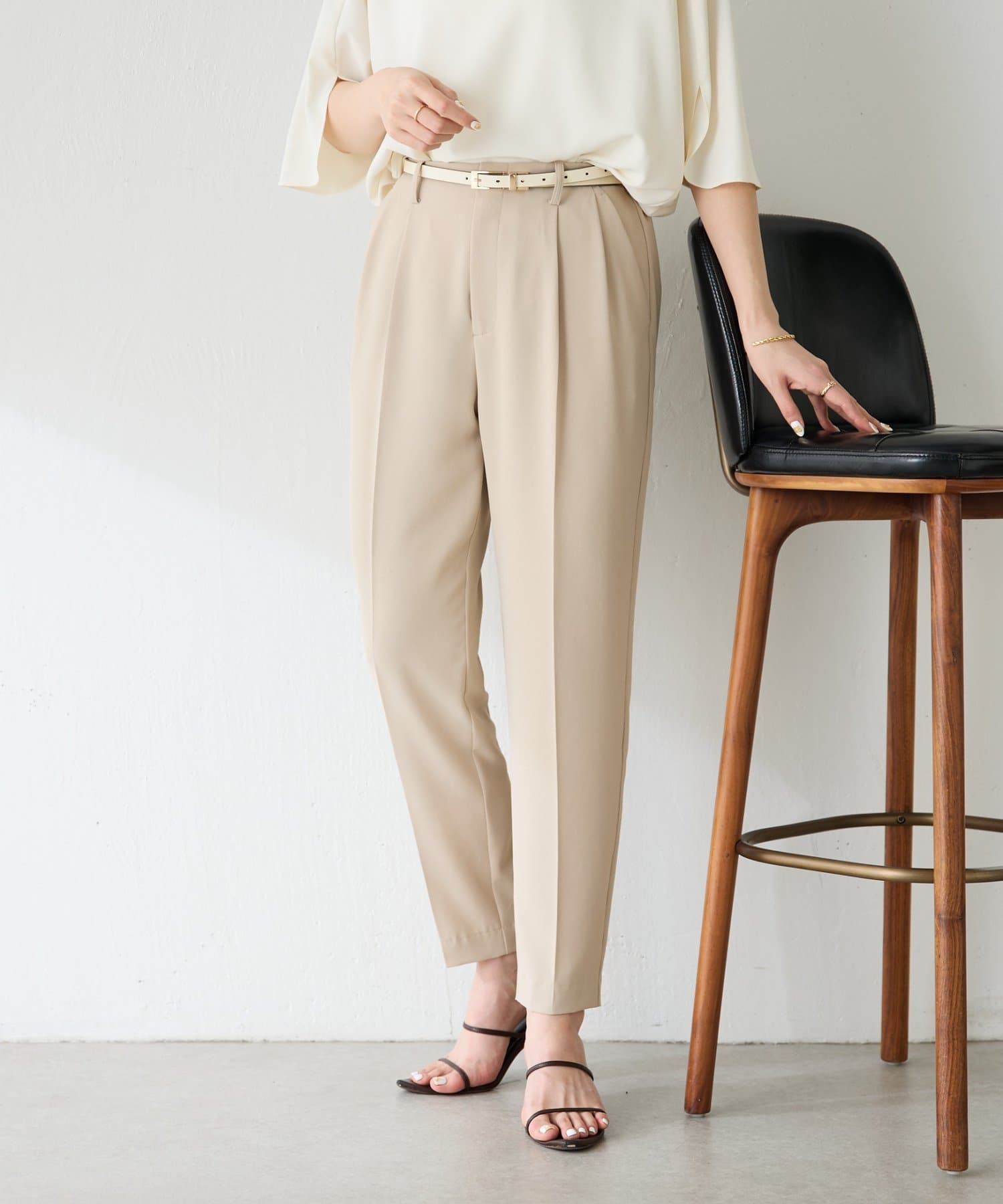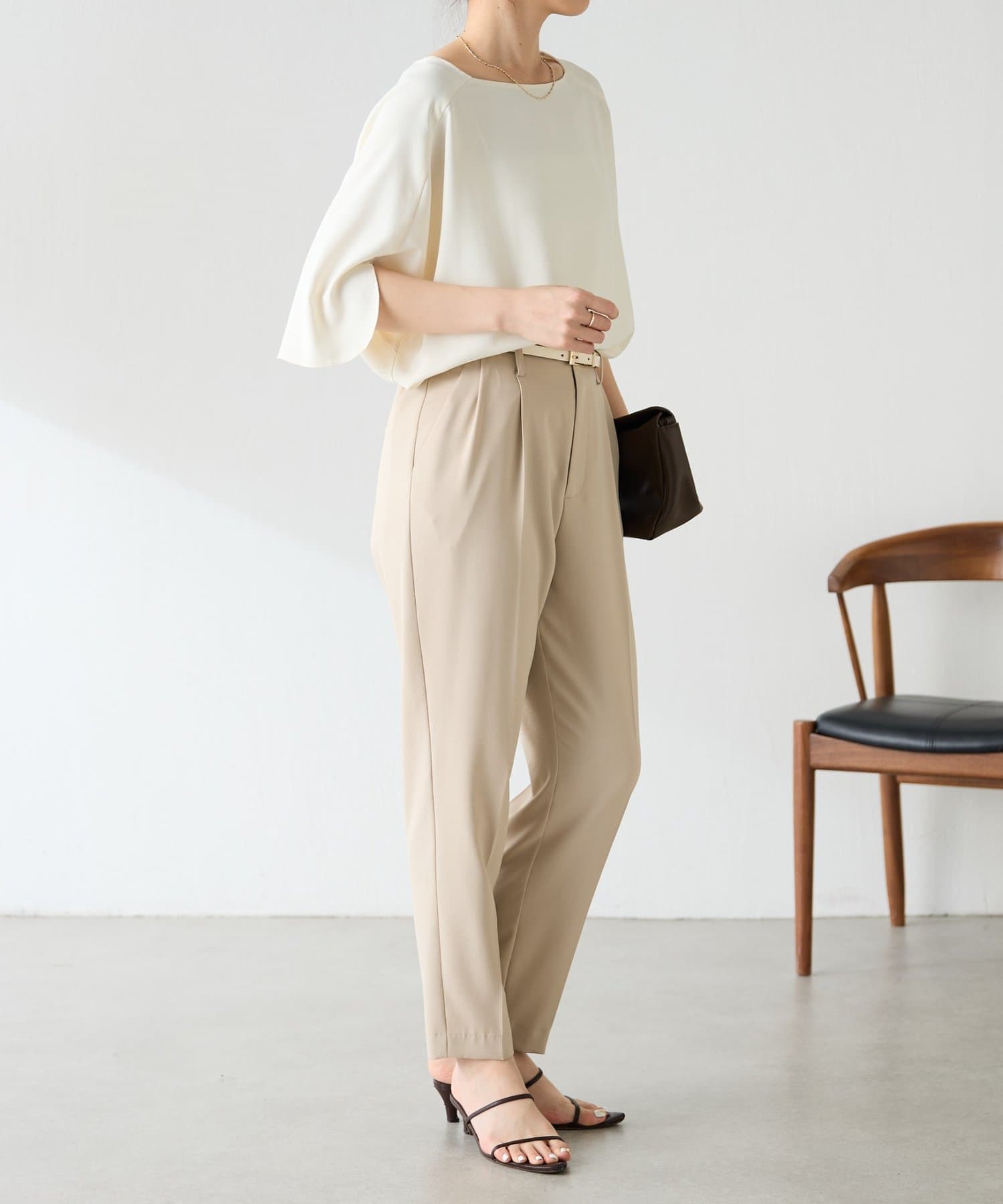 ・太ももにはゆとりを持たせ、裾にかけてゆるやかに細身になったテーパードシルエットは、体のラインを拾いにくく程よくスマートなシルエットに仕上げてくれます。