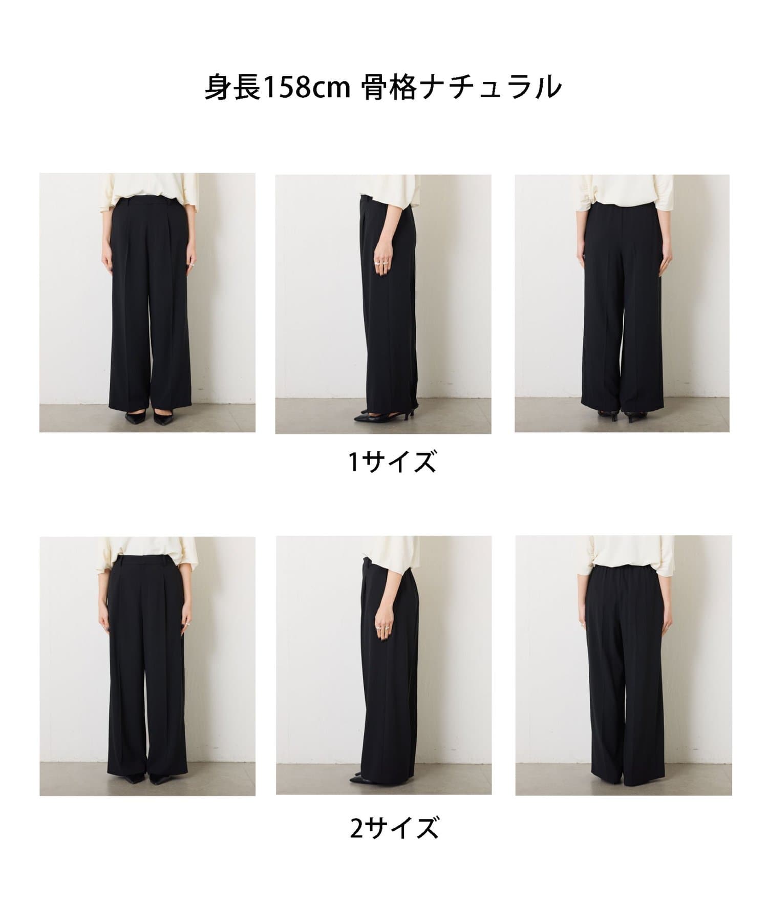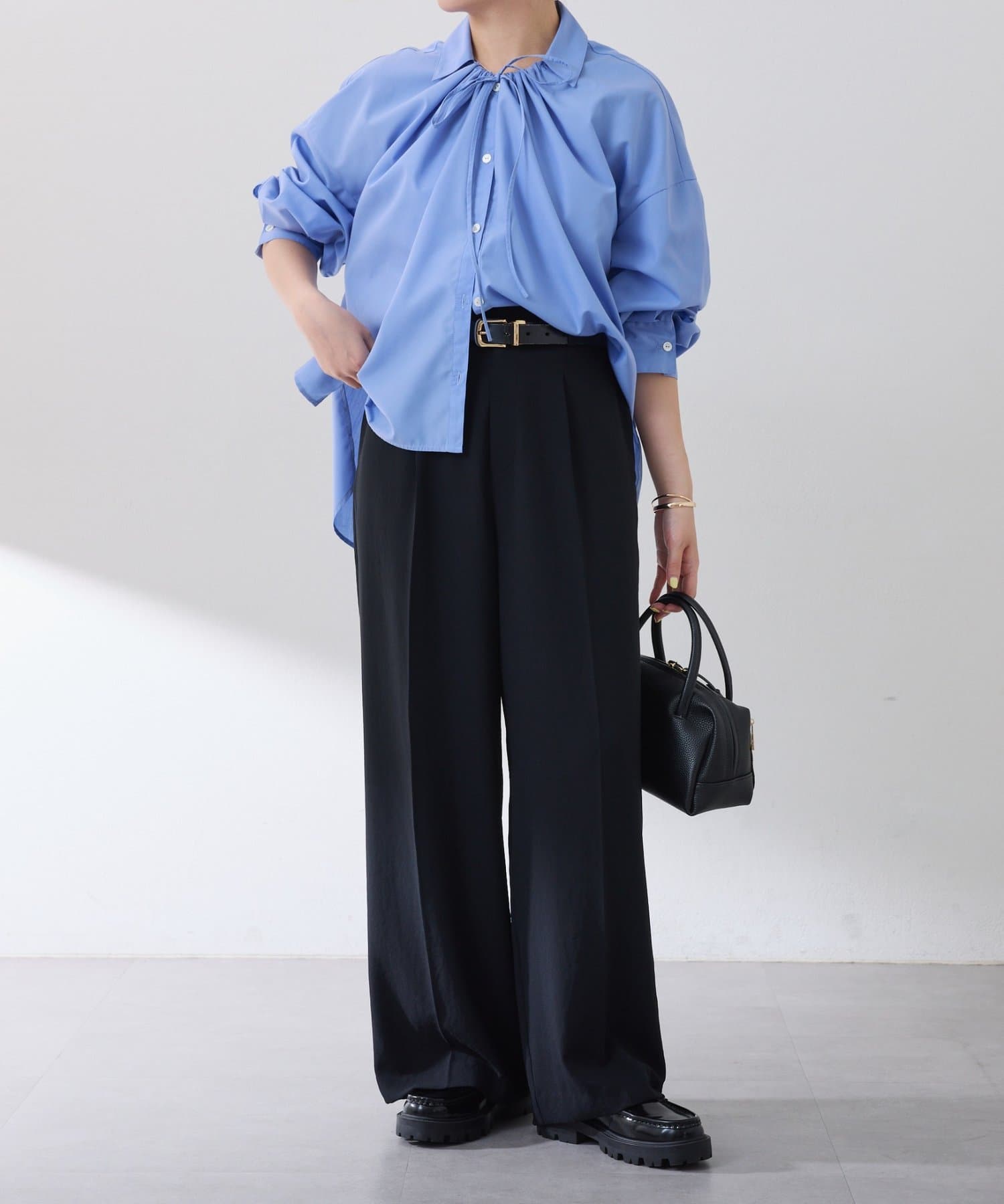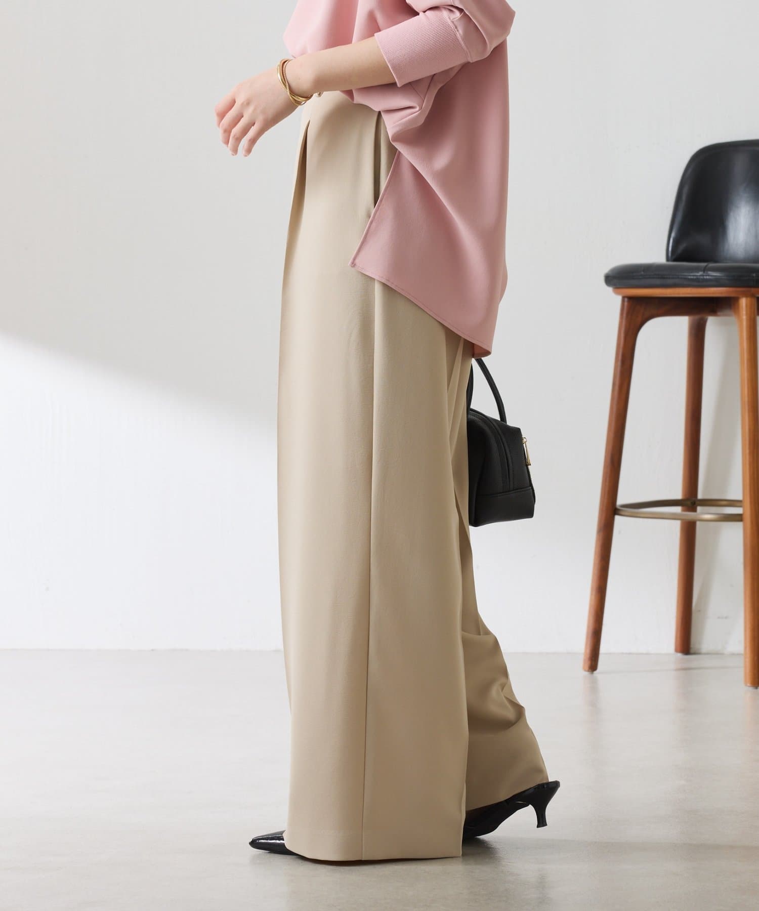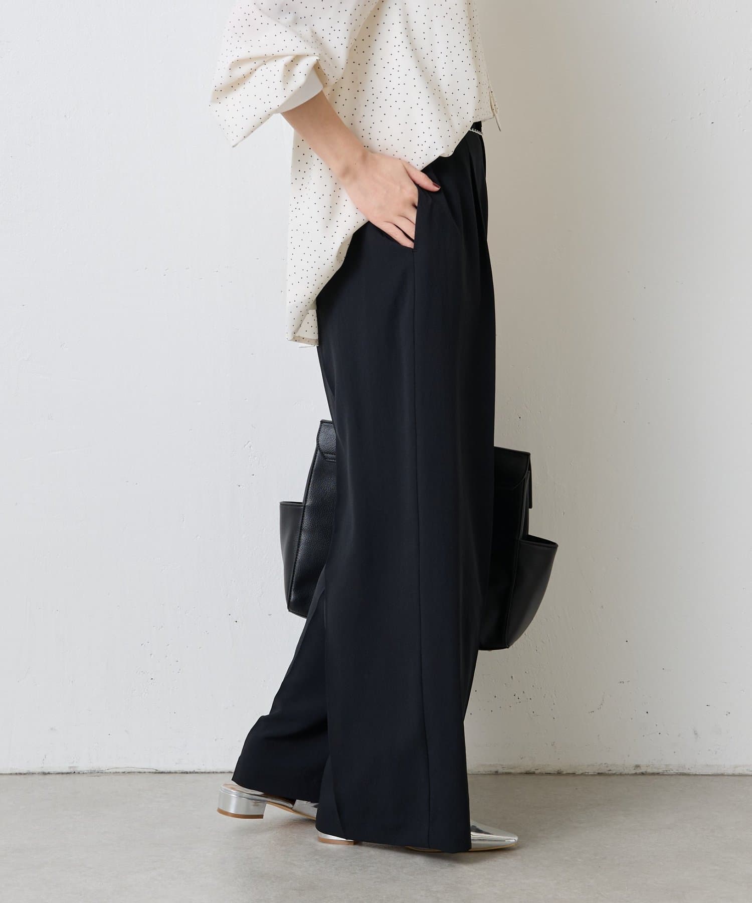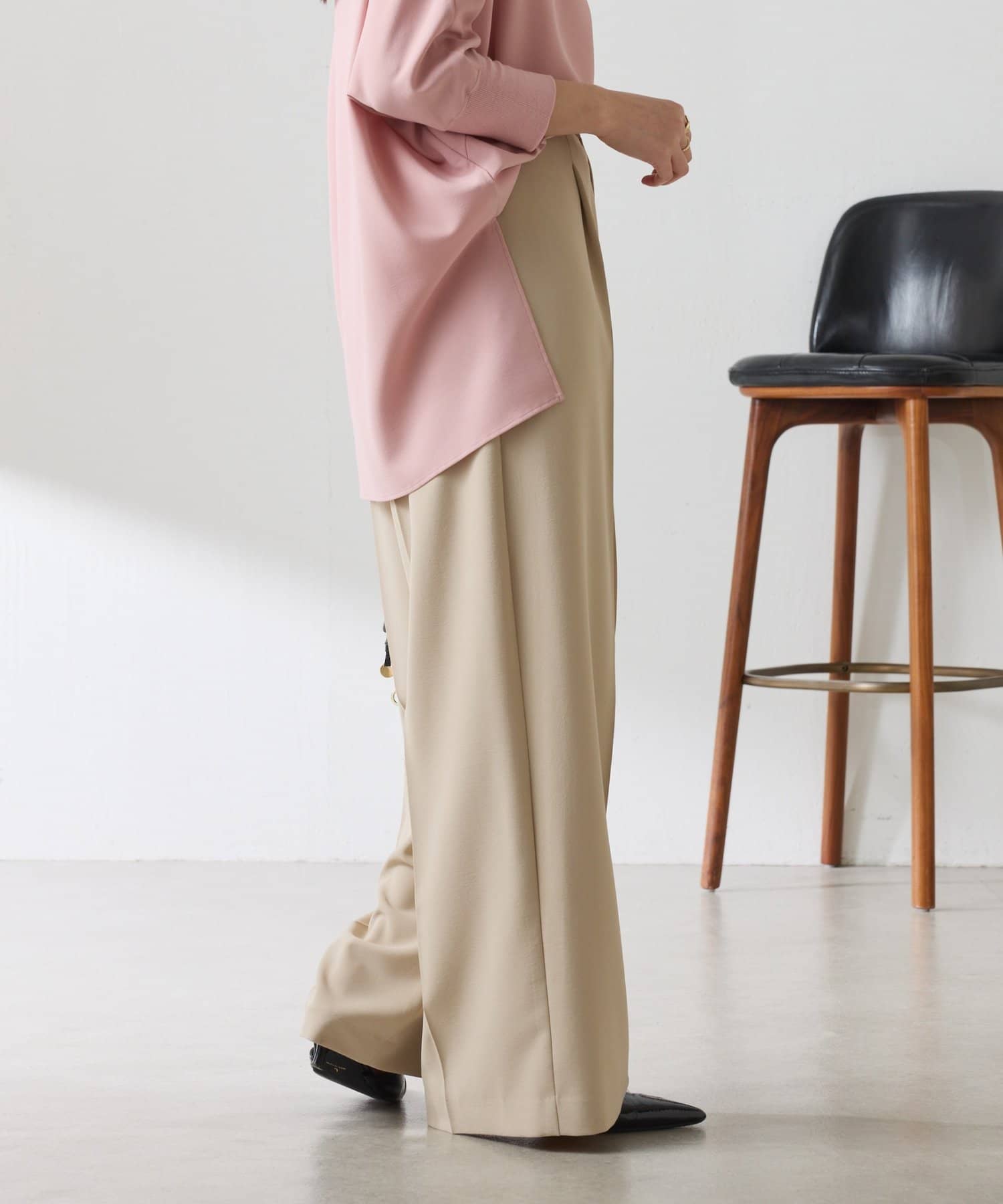 ・落ち感のある生地なので、ワイドパンツでもすっきりとした印象で履いていただけます。