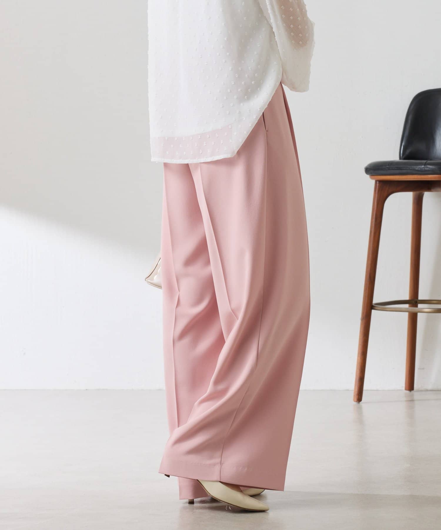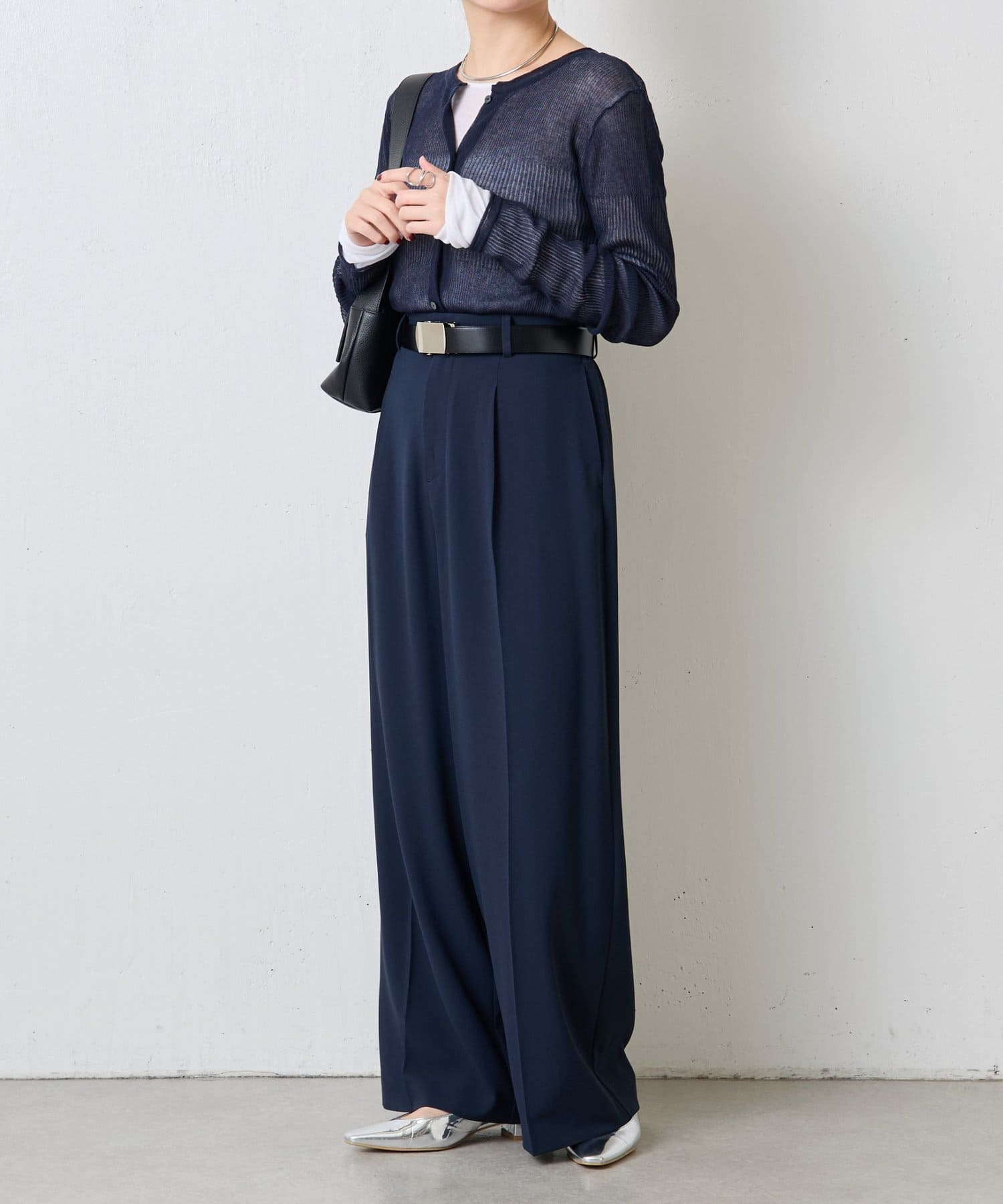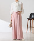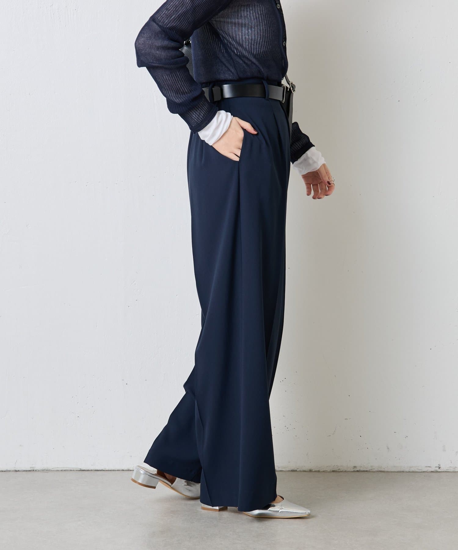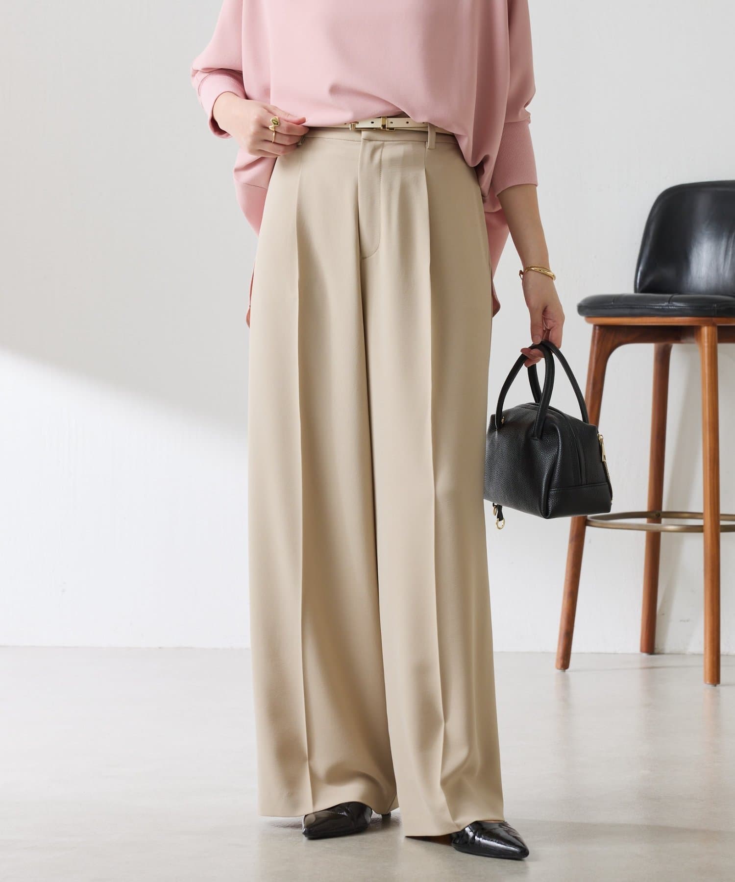・落ち感のある生地なので、ワイドパンツでもすっきりとした印象で履いていただけます。