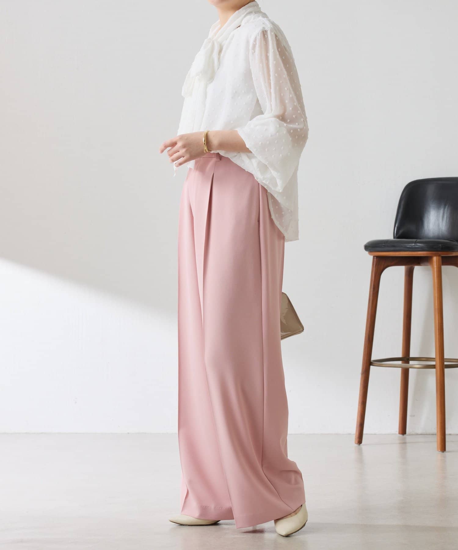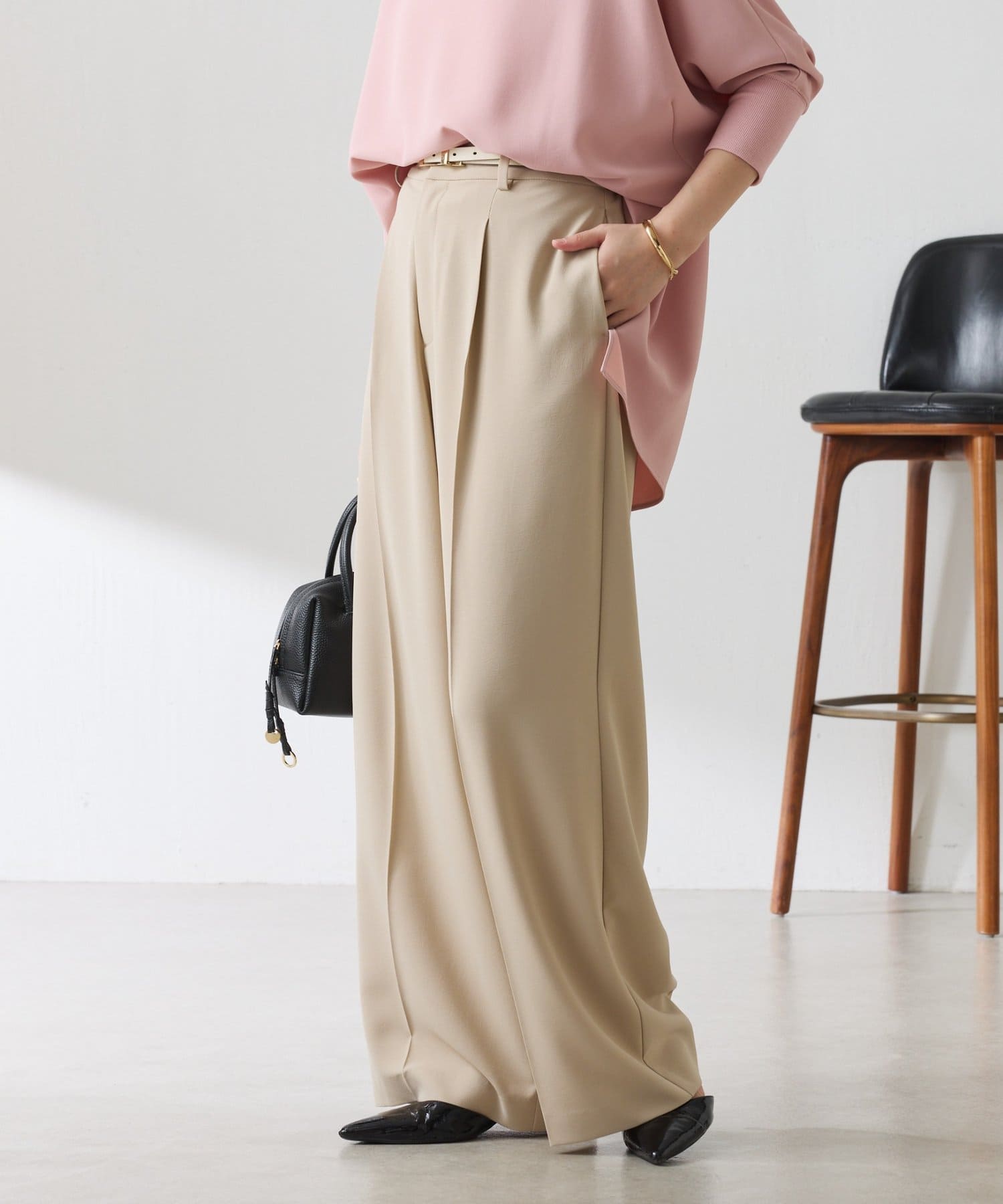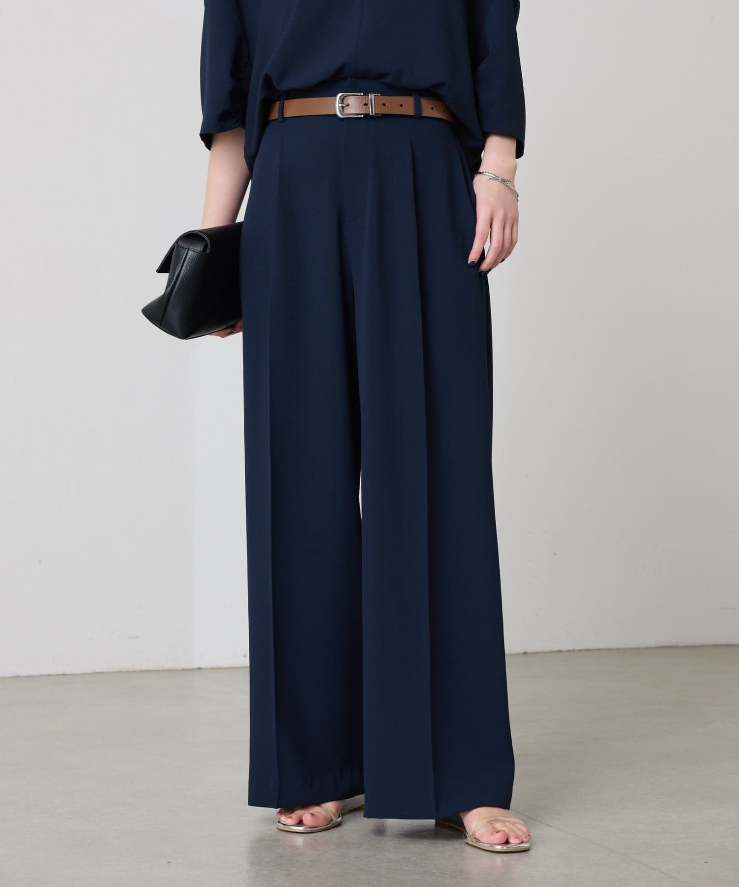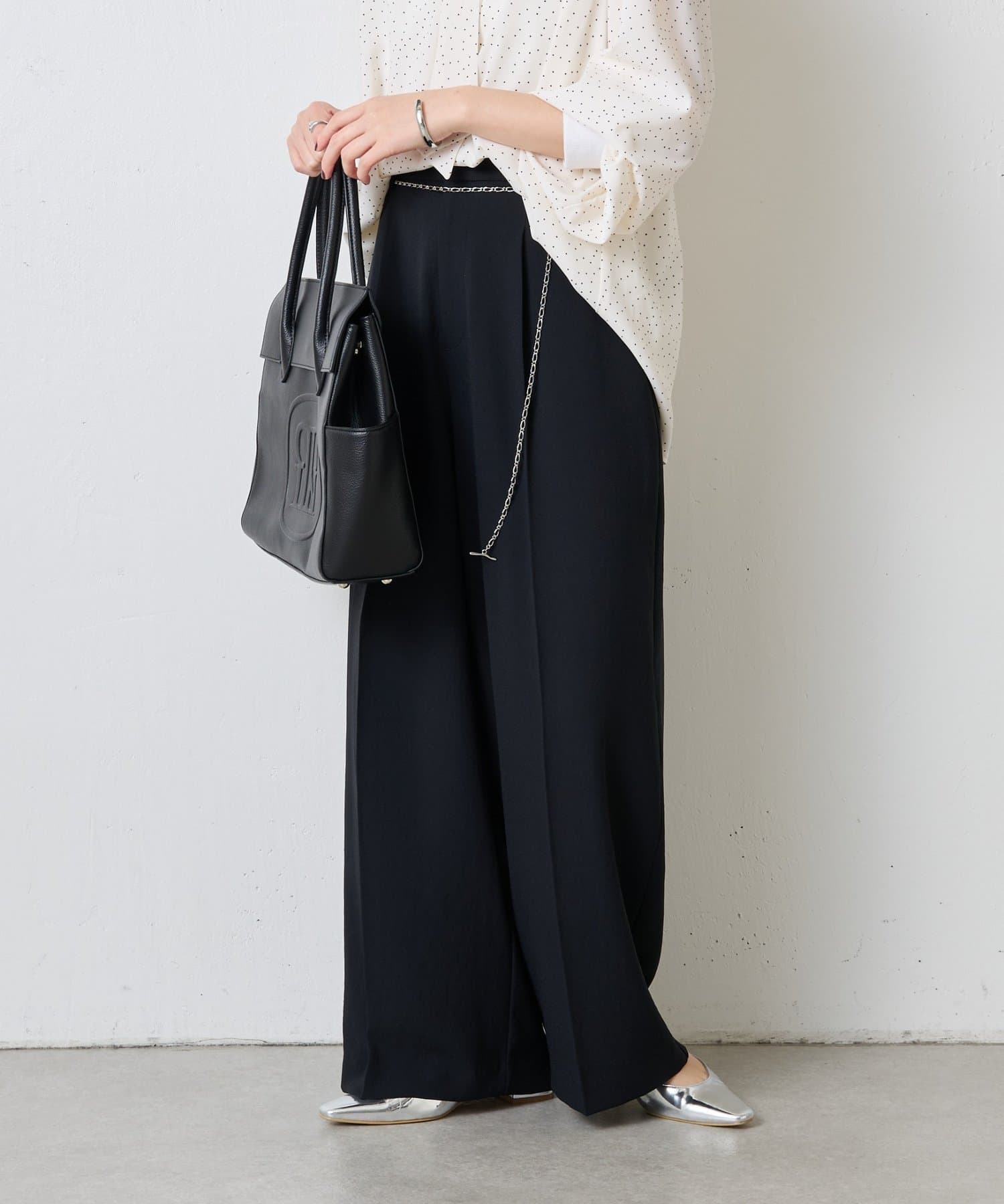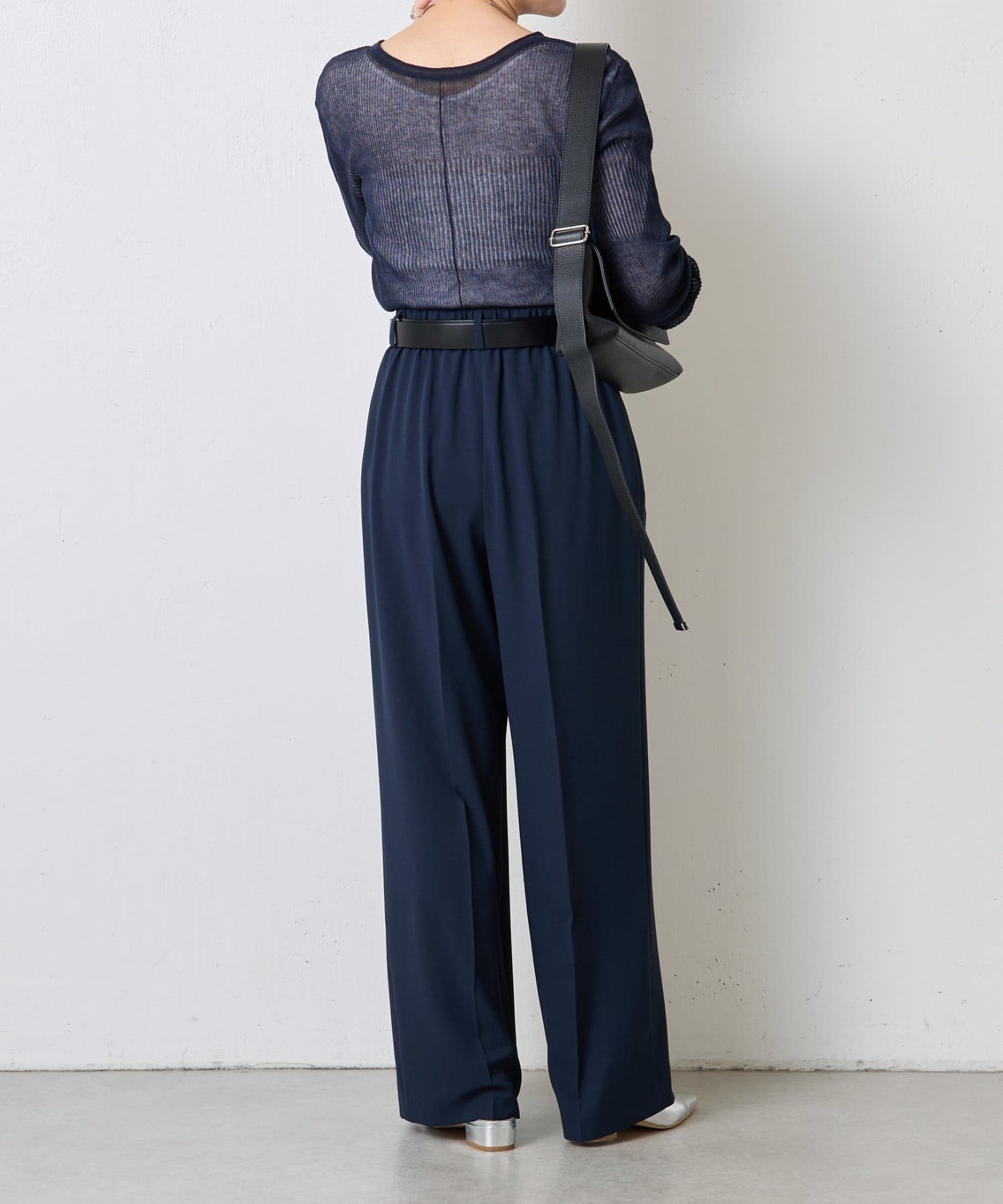 ・落ち感のある生地なので、ワイドパンツでもすっきりとした印象で履いていただけます。