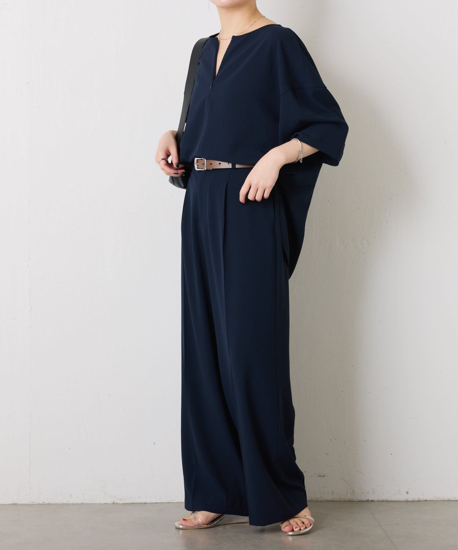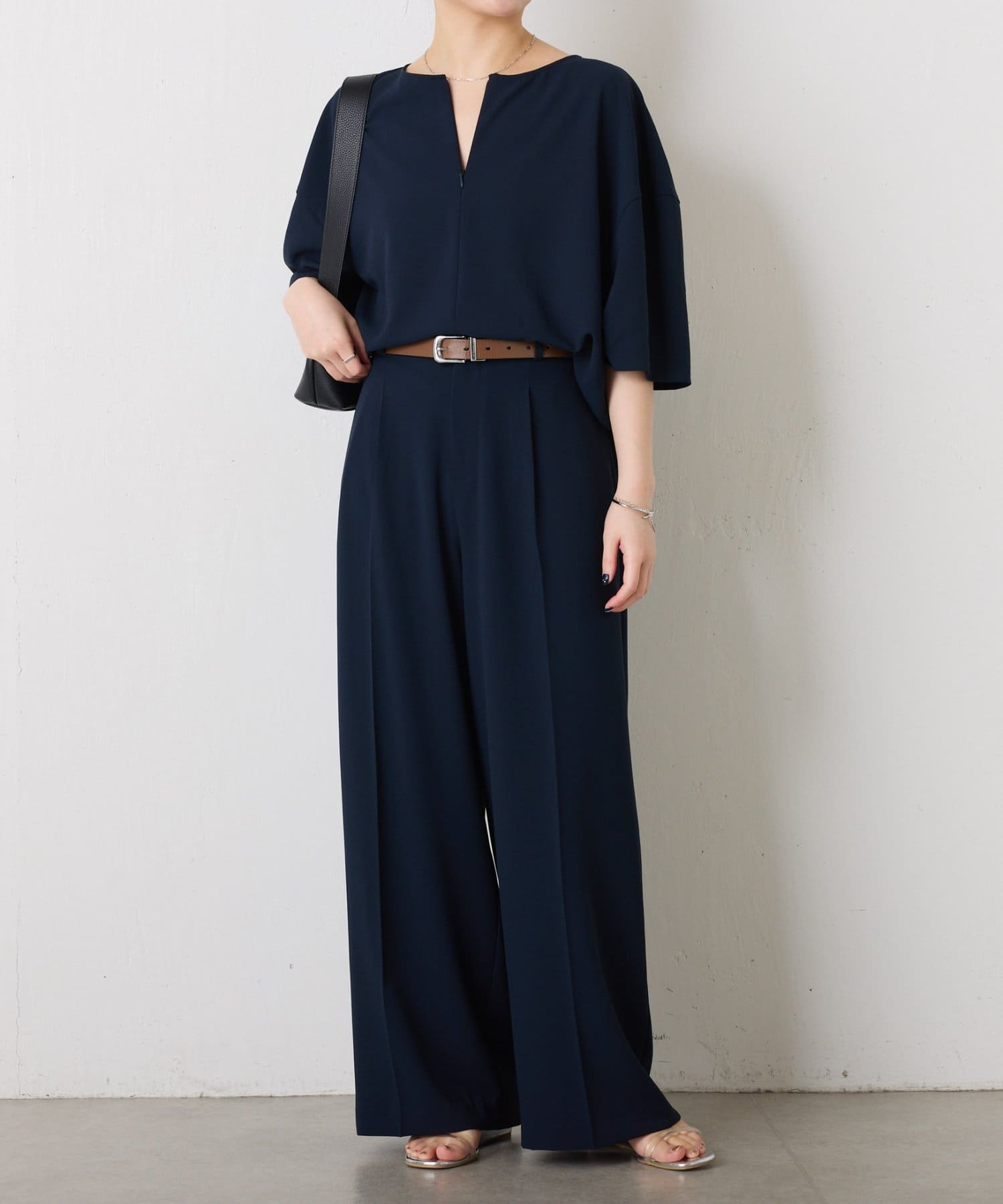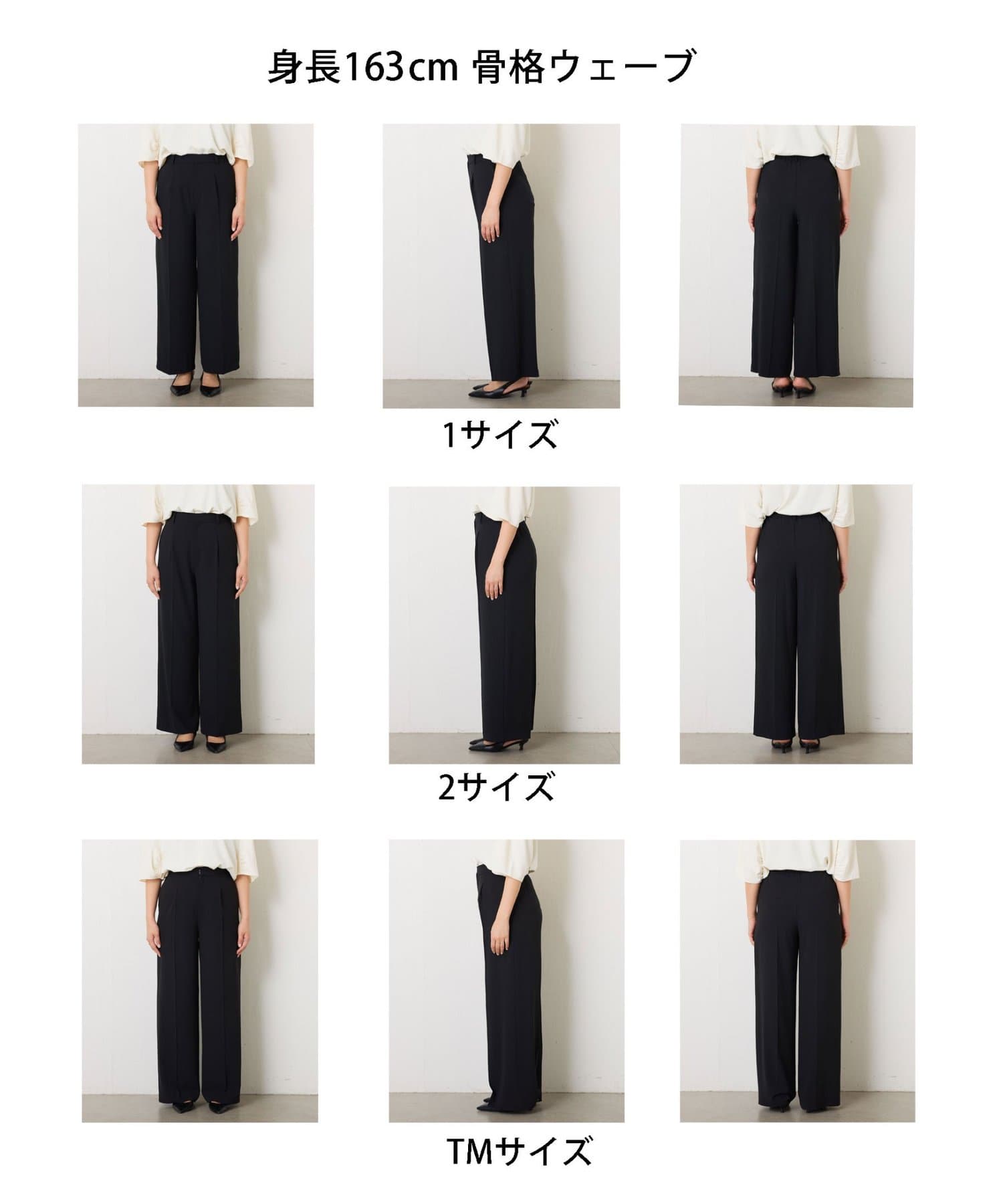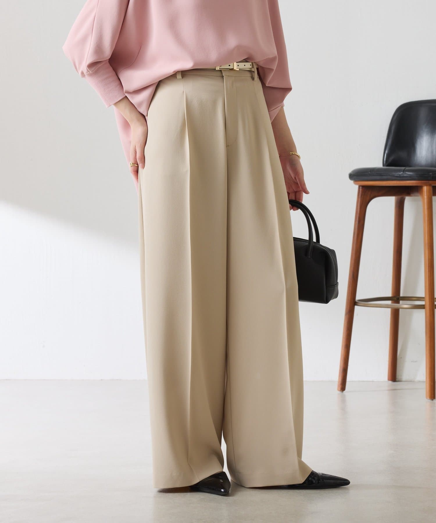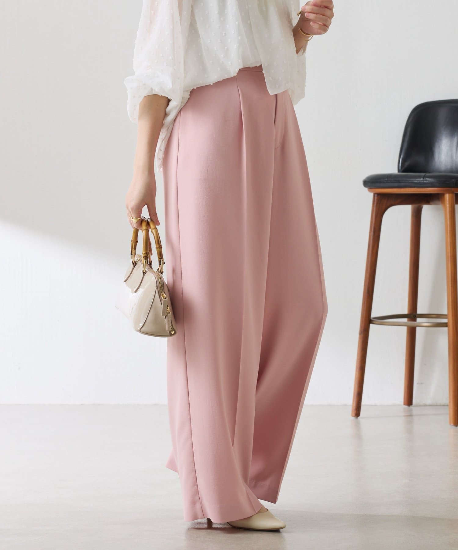・落ち感のある生地なので、ワイドパンツでもすっきりとした印象で履いていただけます。