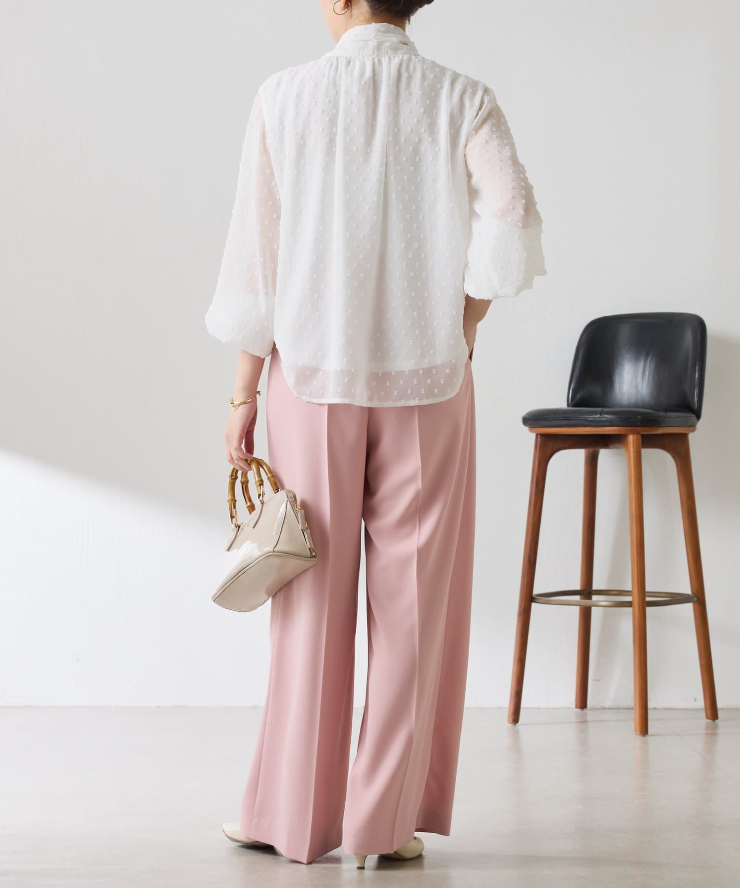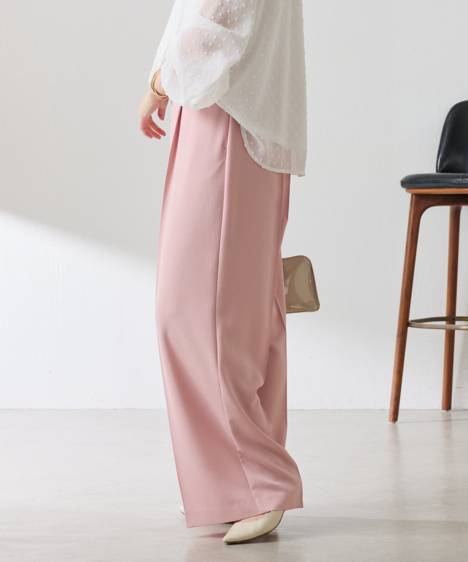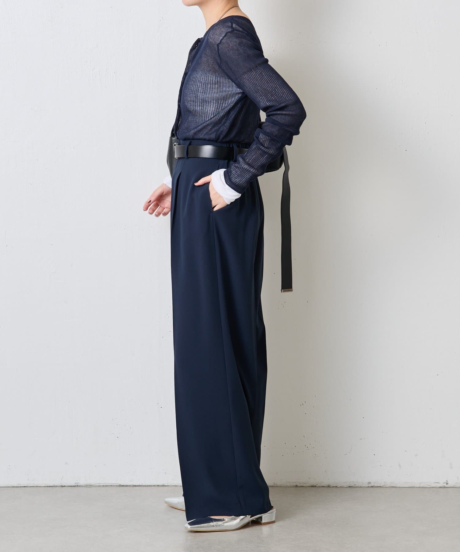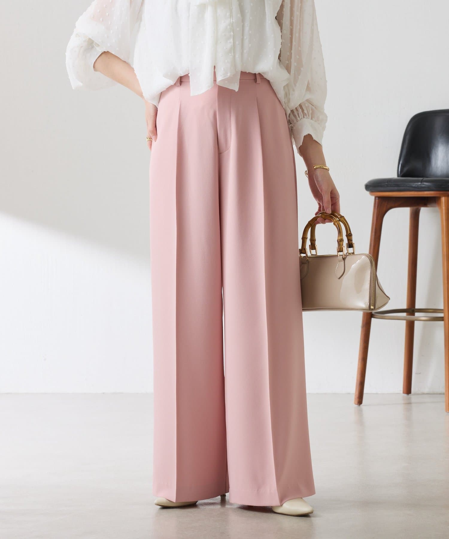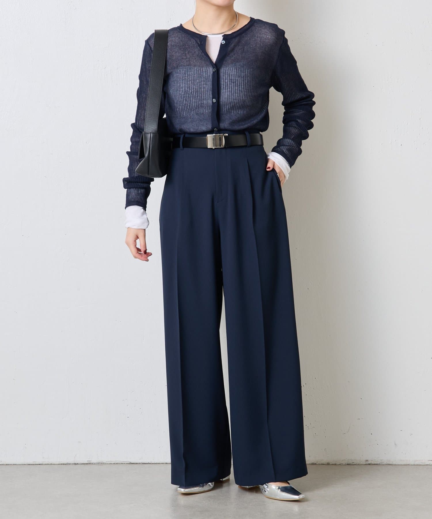 ・落ち感のある生地なので、ワイドパンツでもすっきりとした印象で履いていただけます。