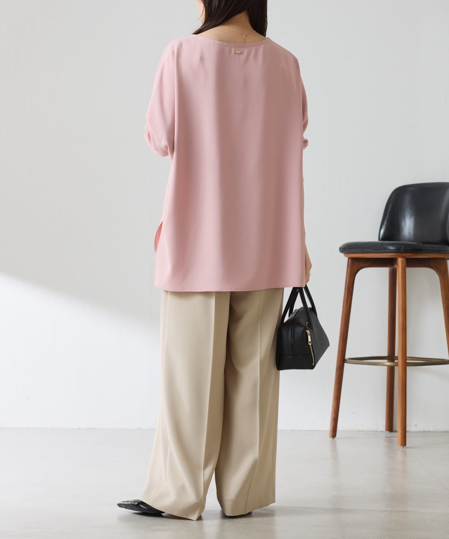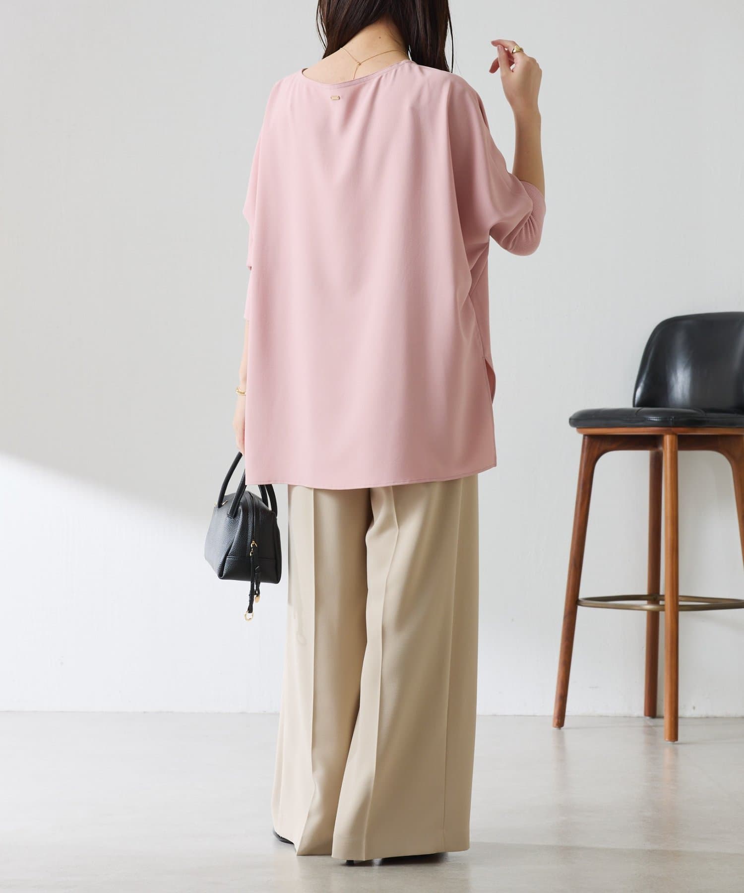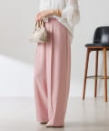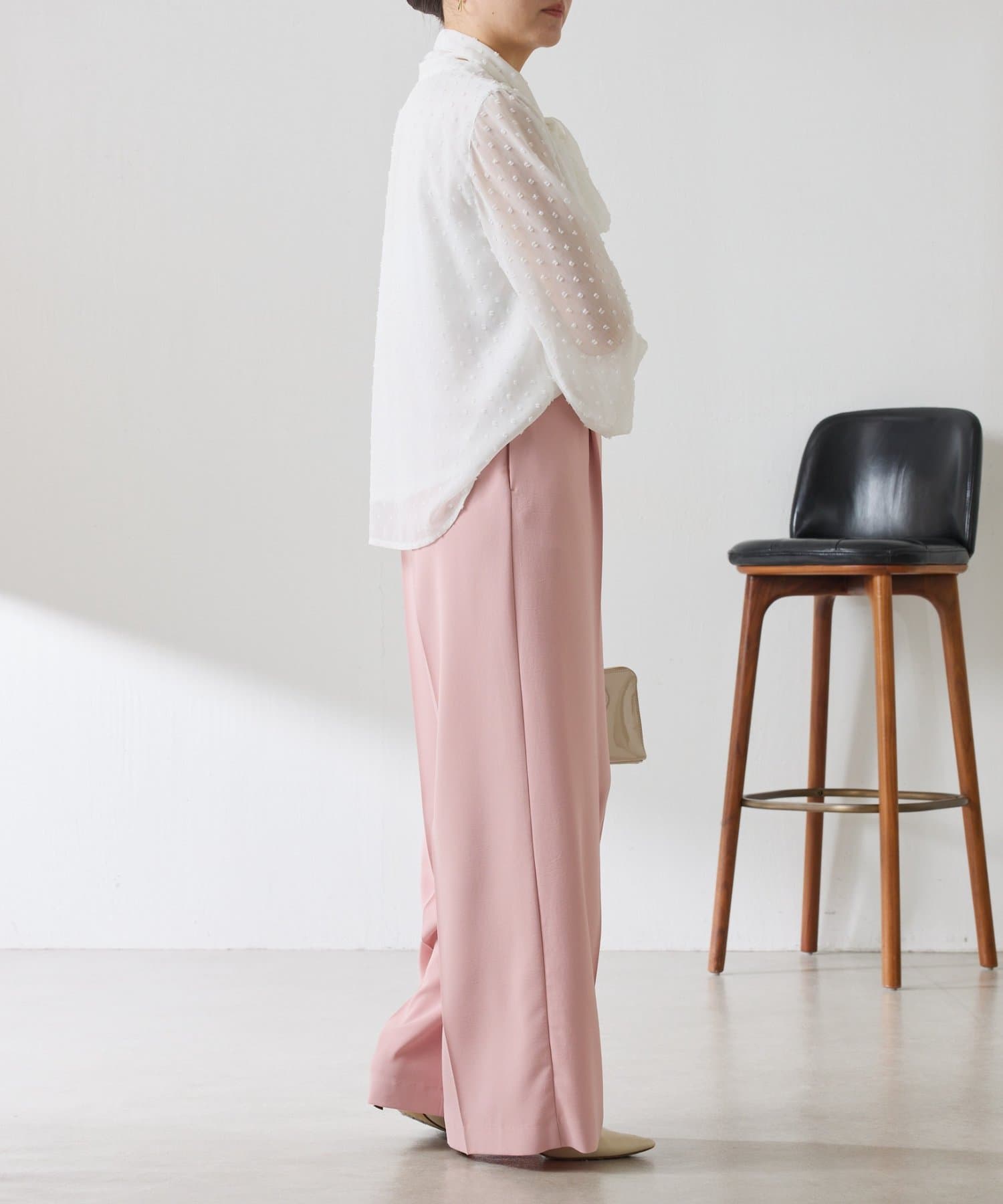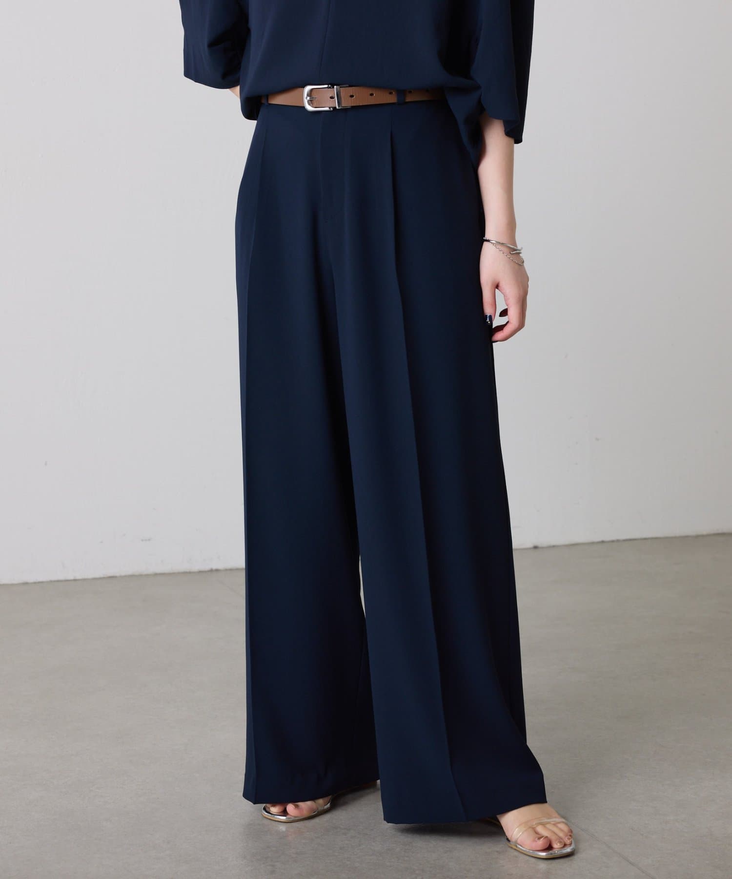 ・落ち感のある生地なので、ワイドパンツでもすっきりとした印象で履いていただけます。