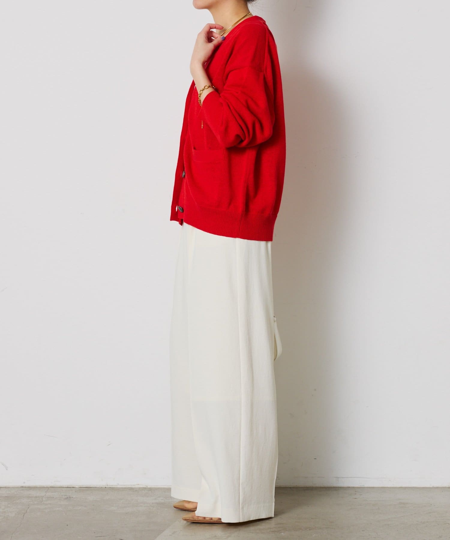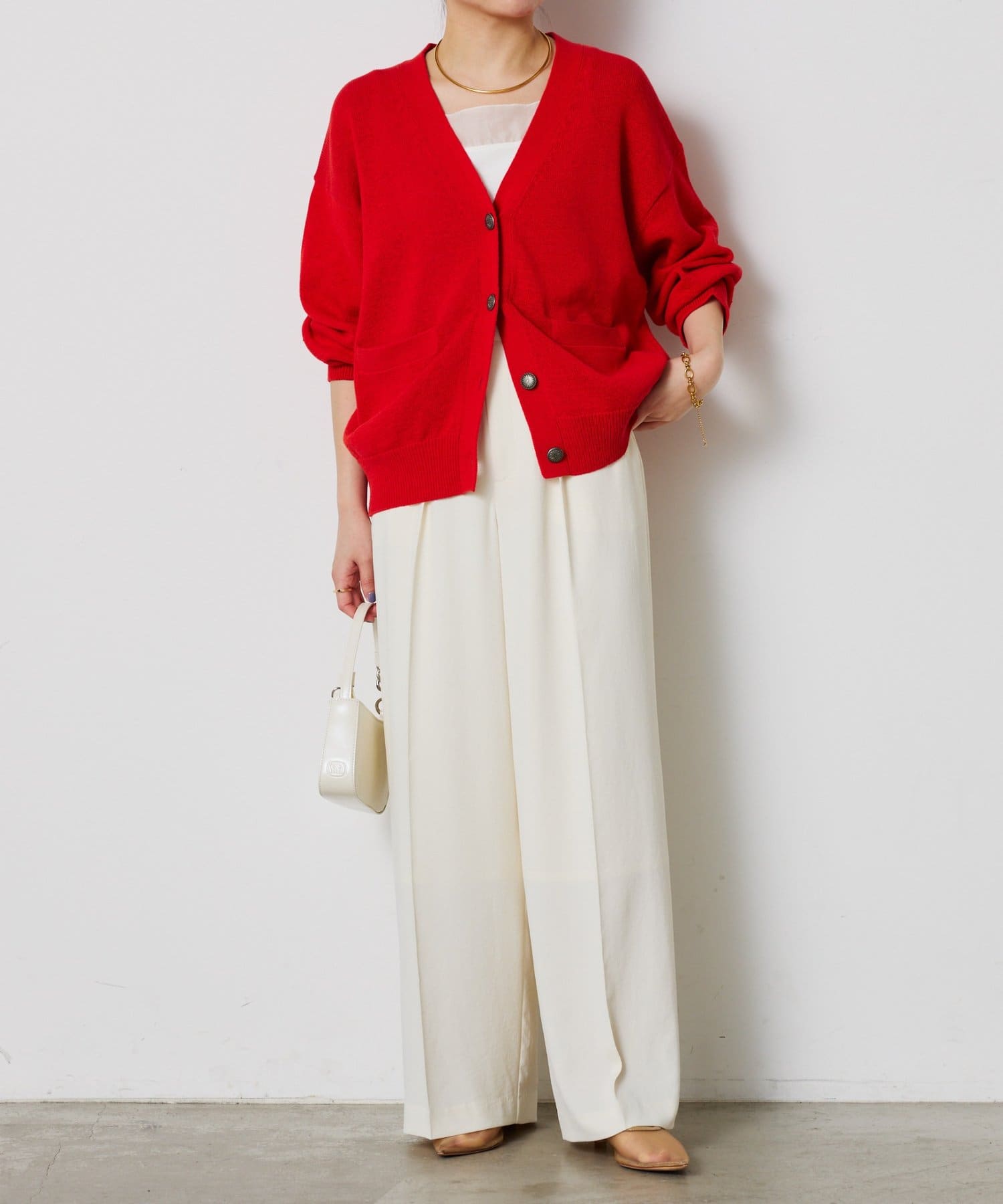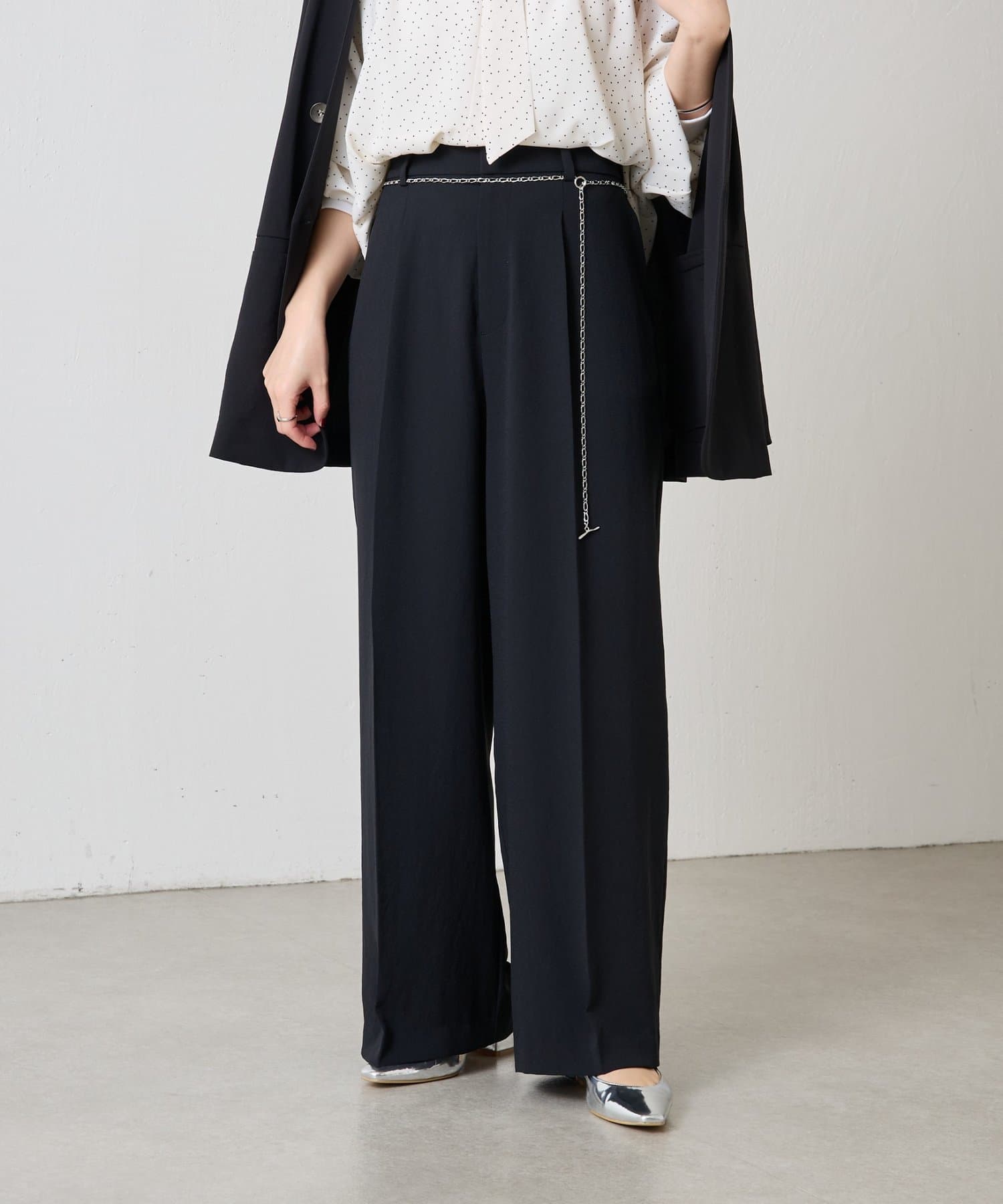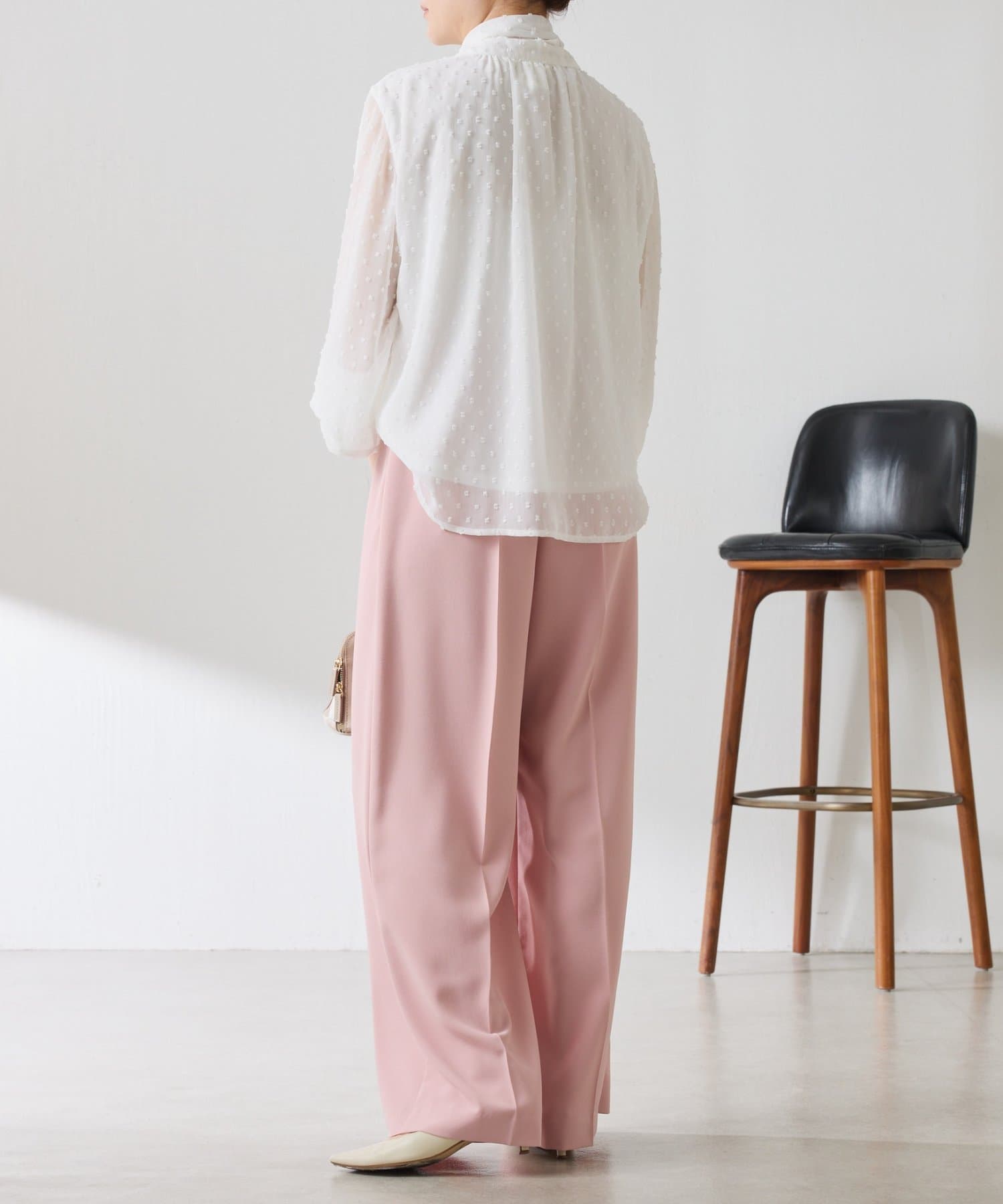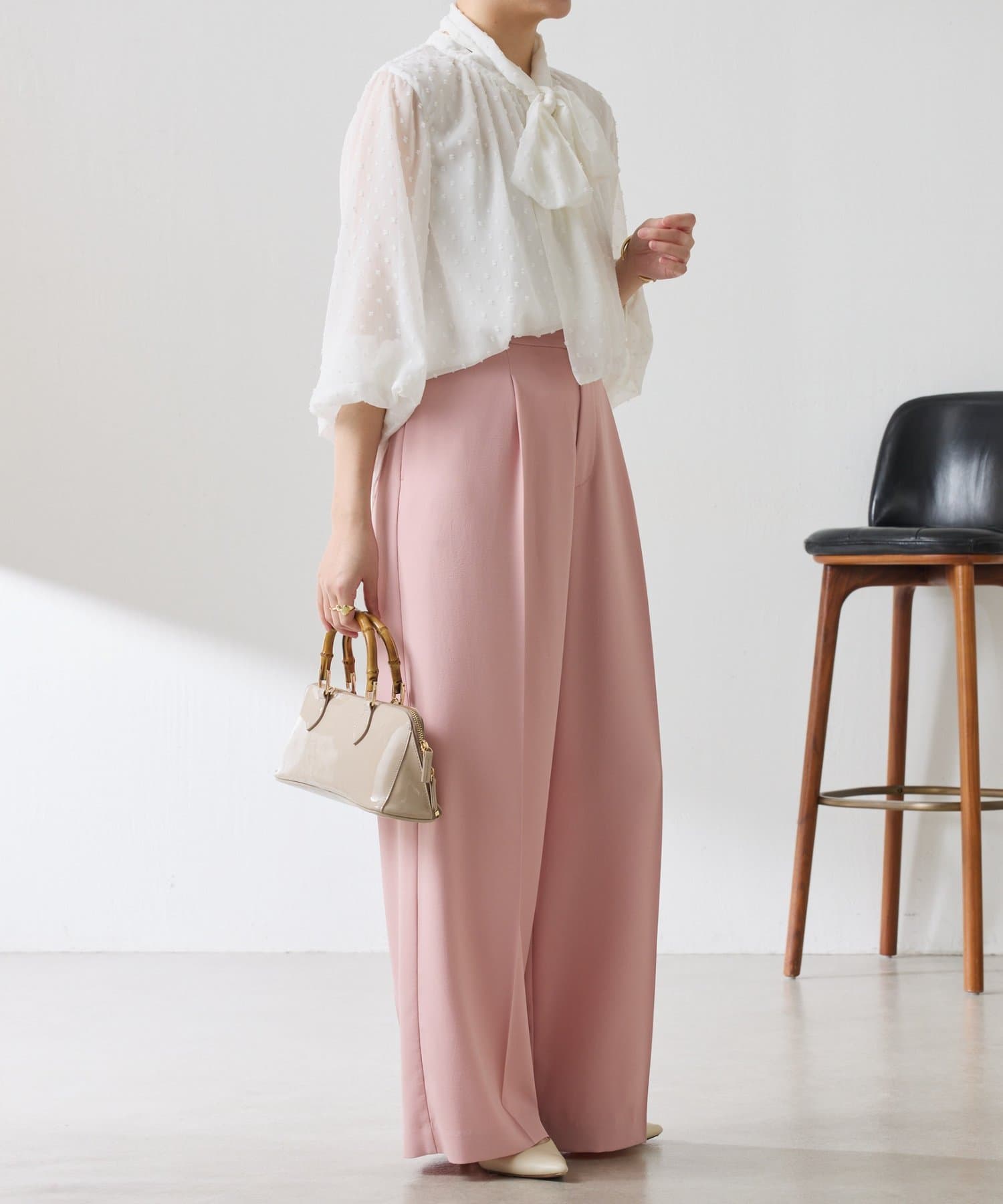 ・落ち感のある生地なので、ワイドパンツでもすっきりとした印象で履いていただけます。