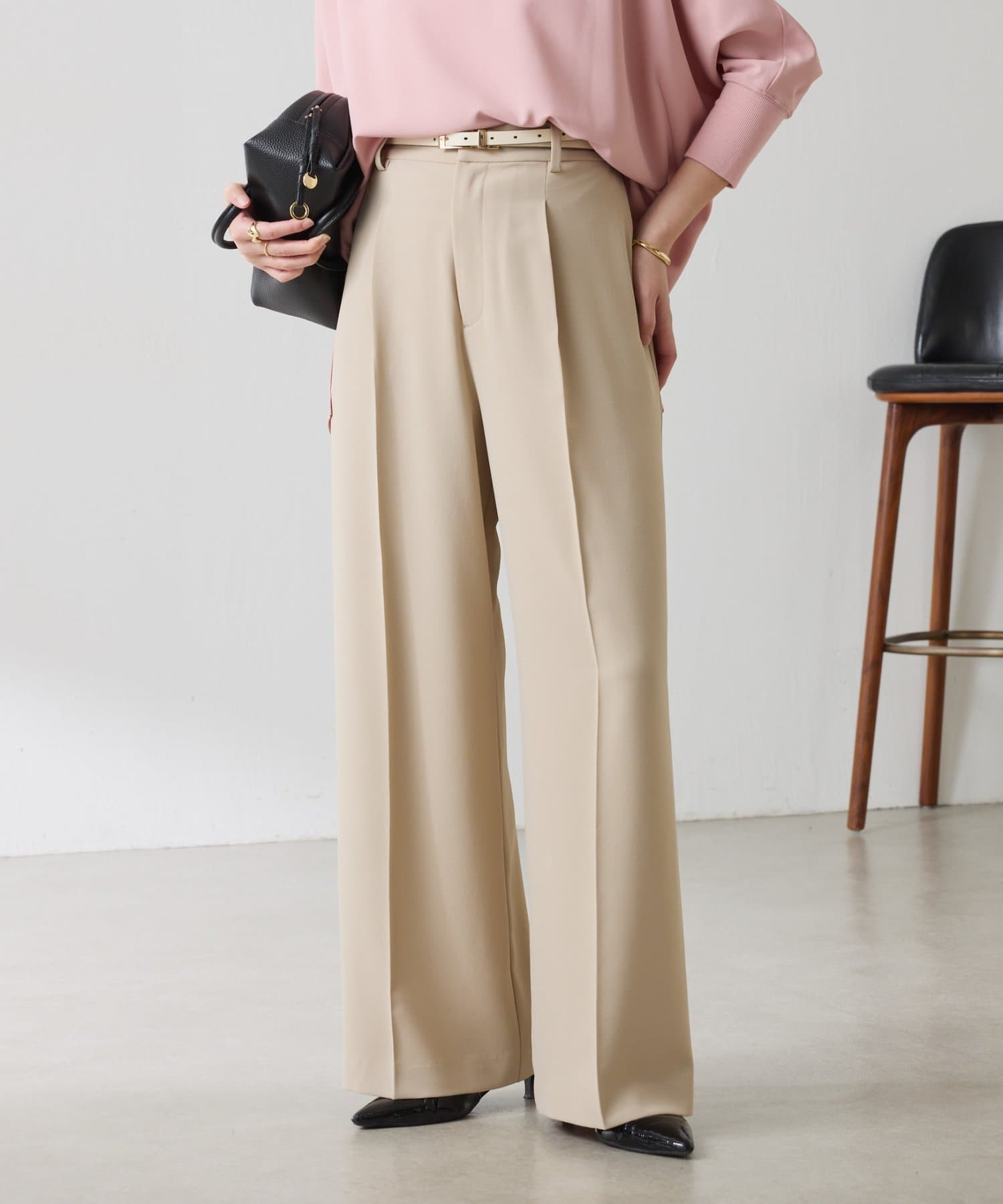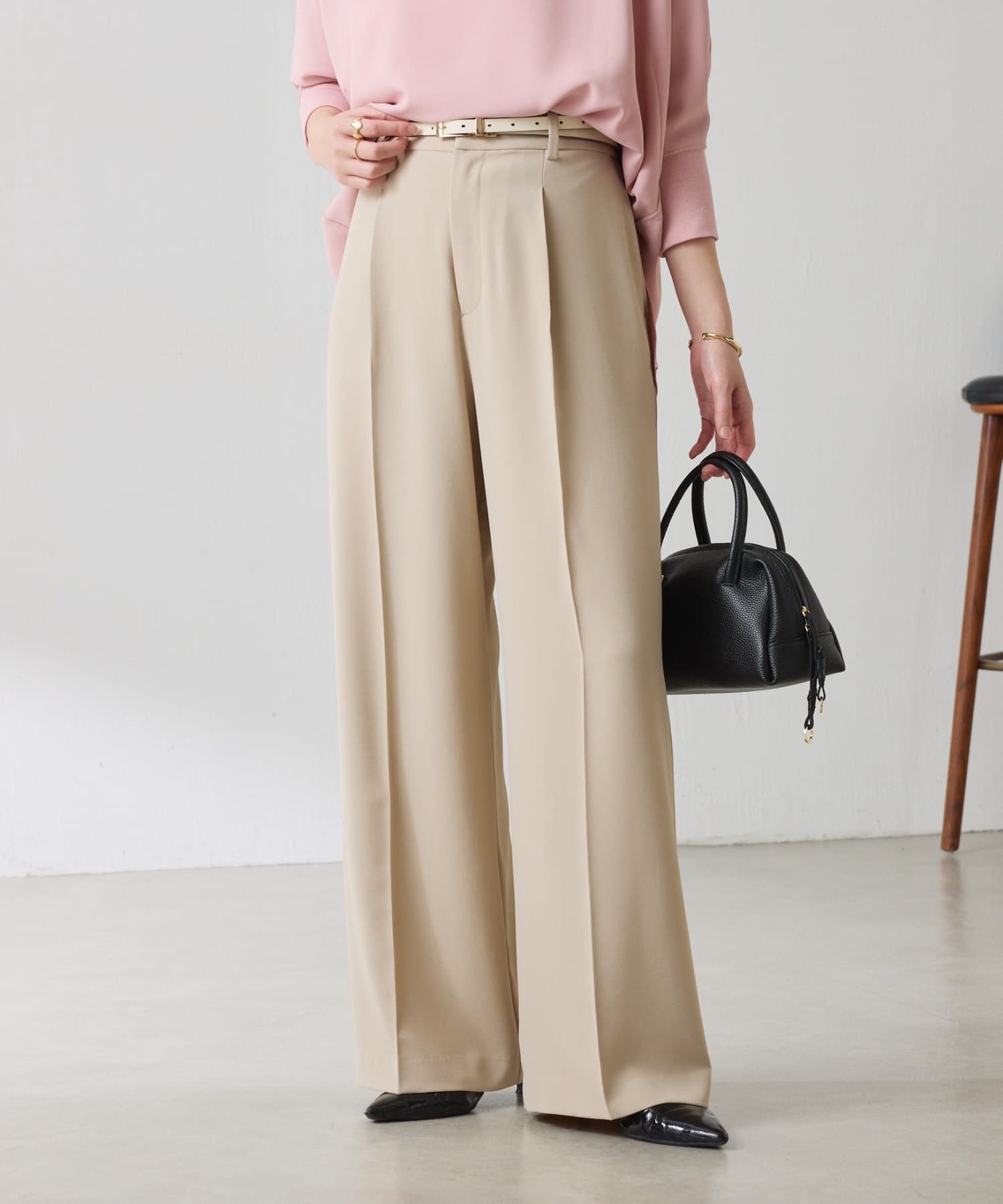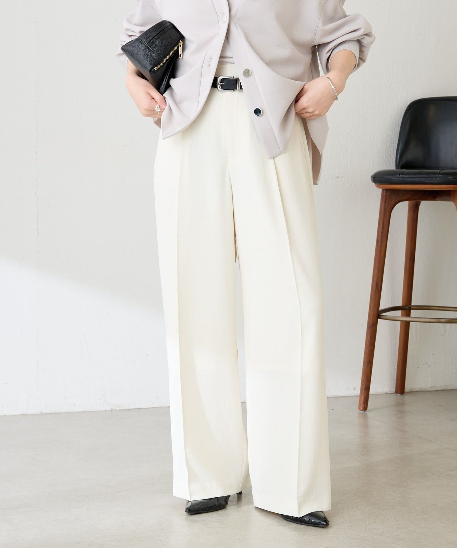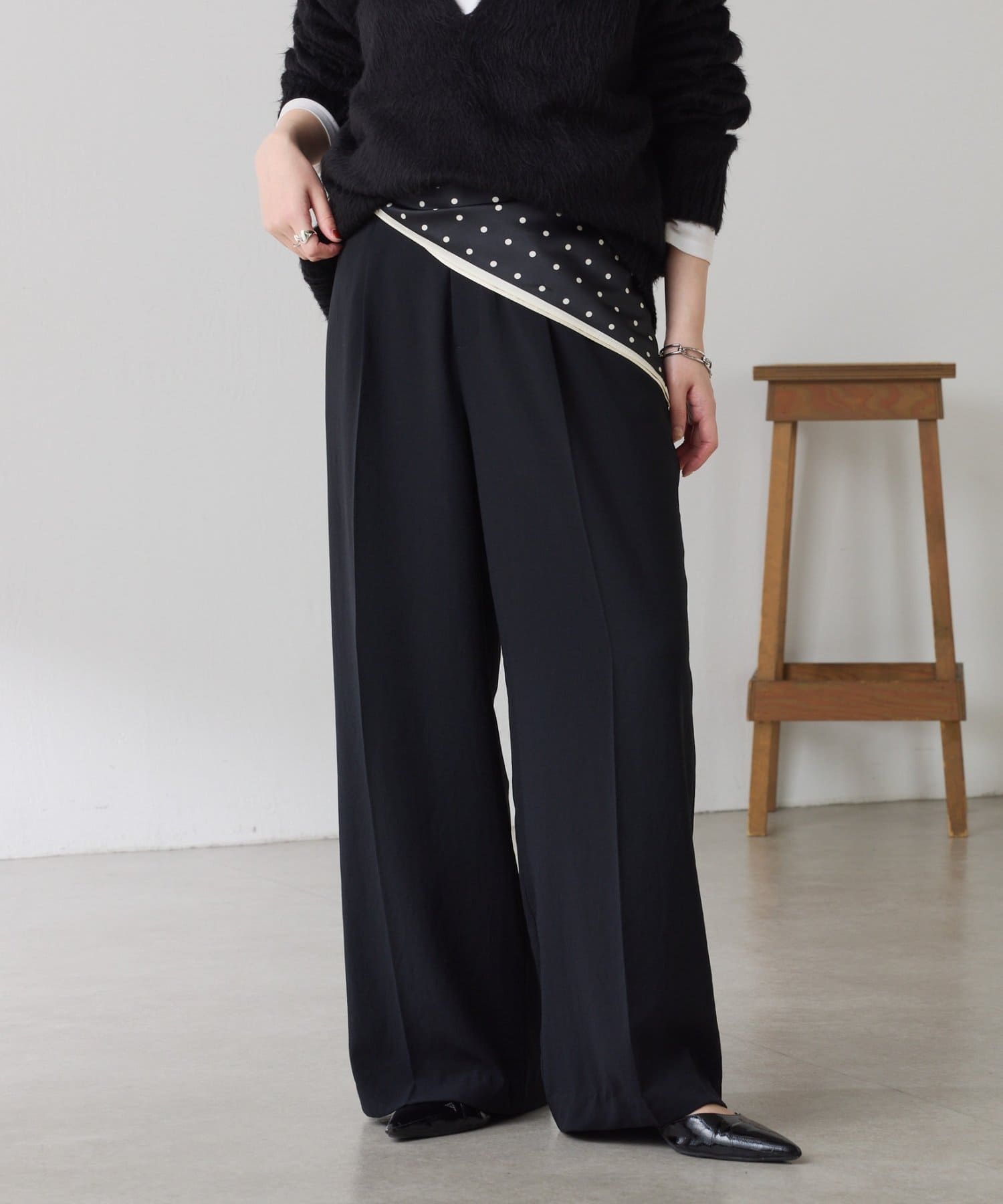 ・落ち感のある生地なので、ワイドパンツでもすっきりとした印象で履いていただけます。