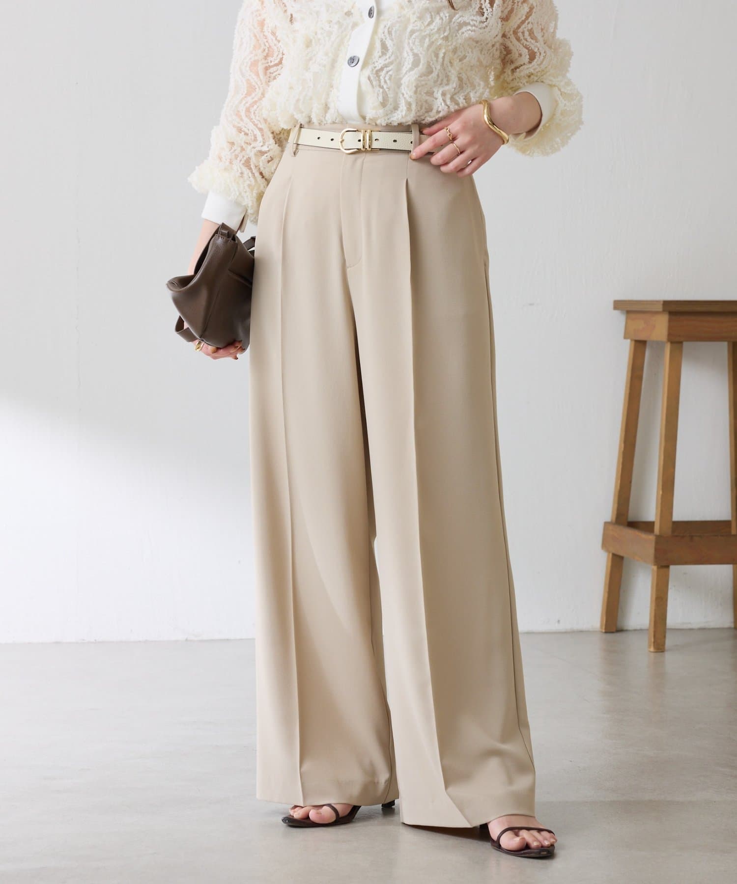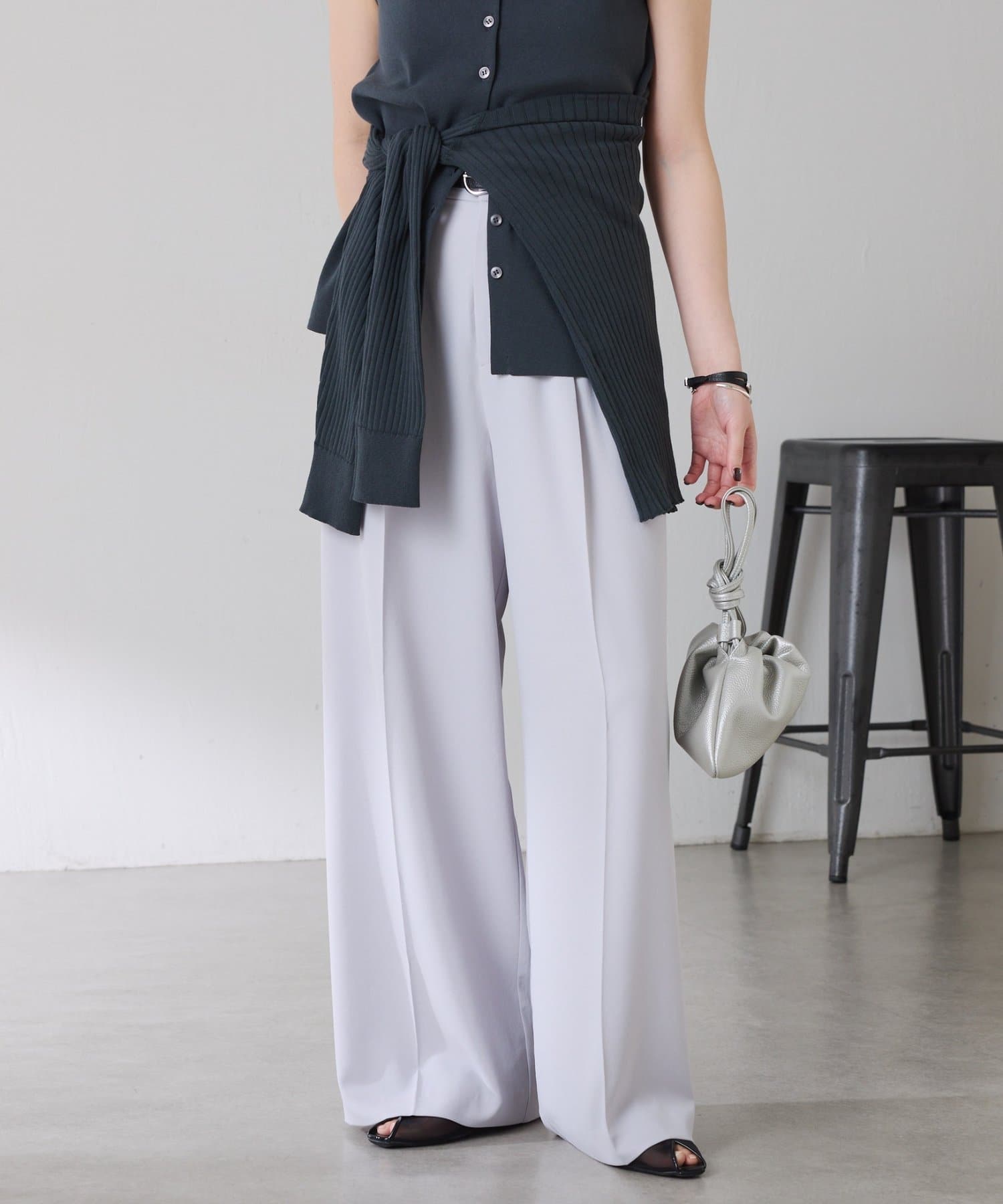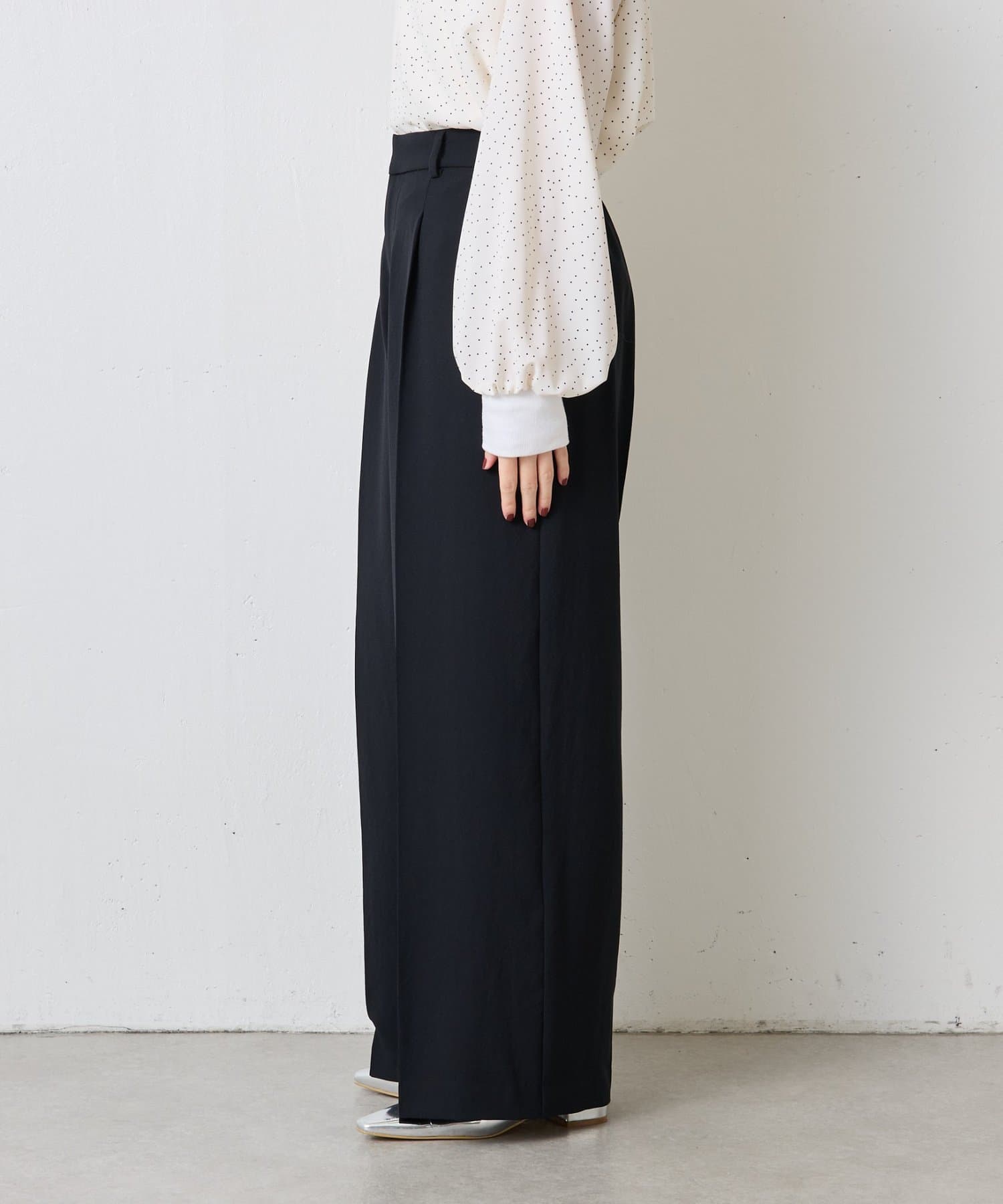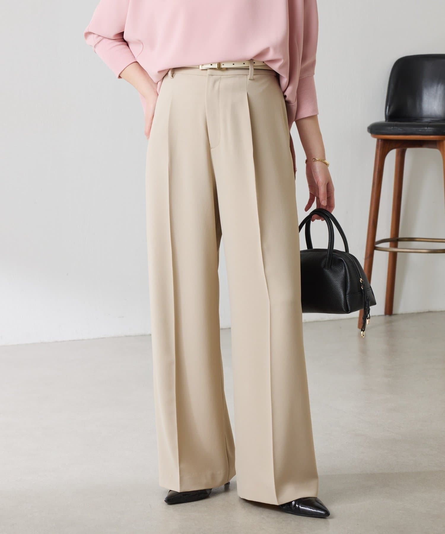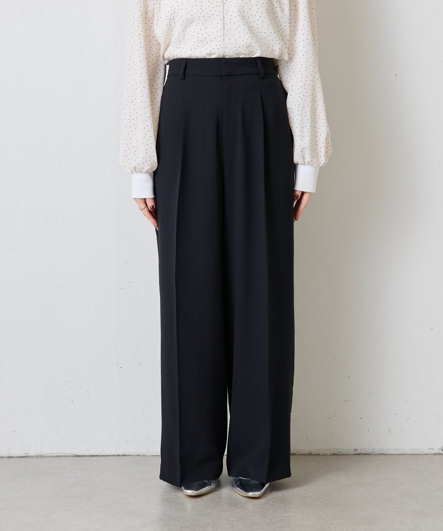 ・落ち感のある生地なので、ワイドパンツでもすっきりとした印象で履いていただけます。