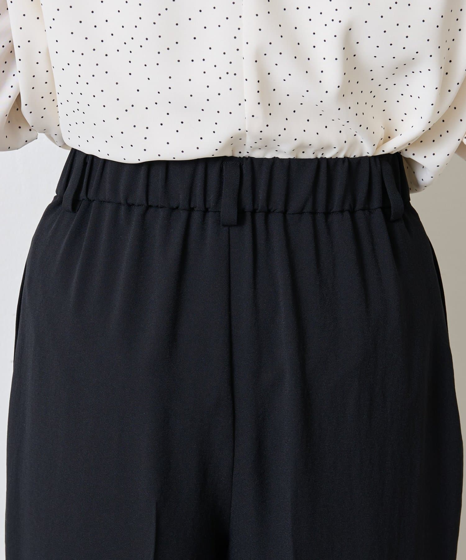 ・ウエスト後ろはゴムデザインになっており、きちんと見えしながらも楽な履き心地を叶えます。