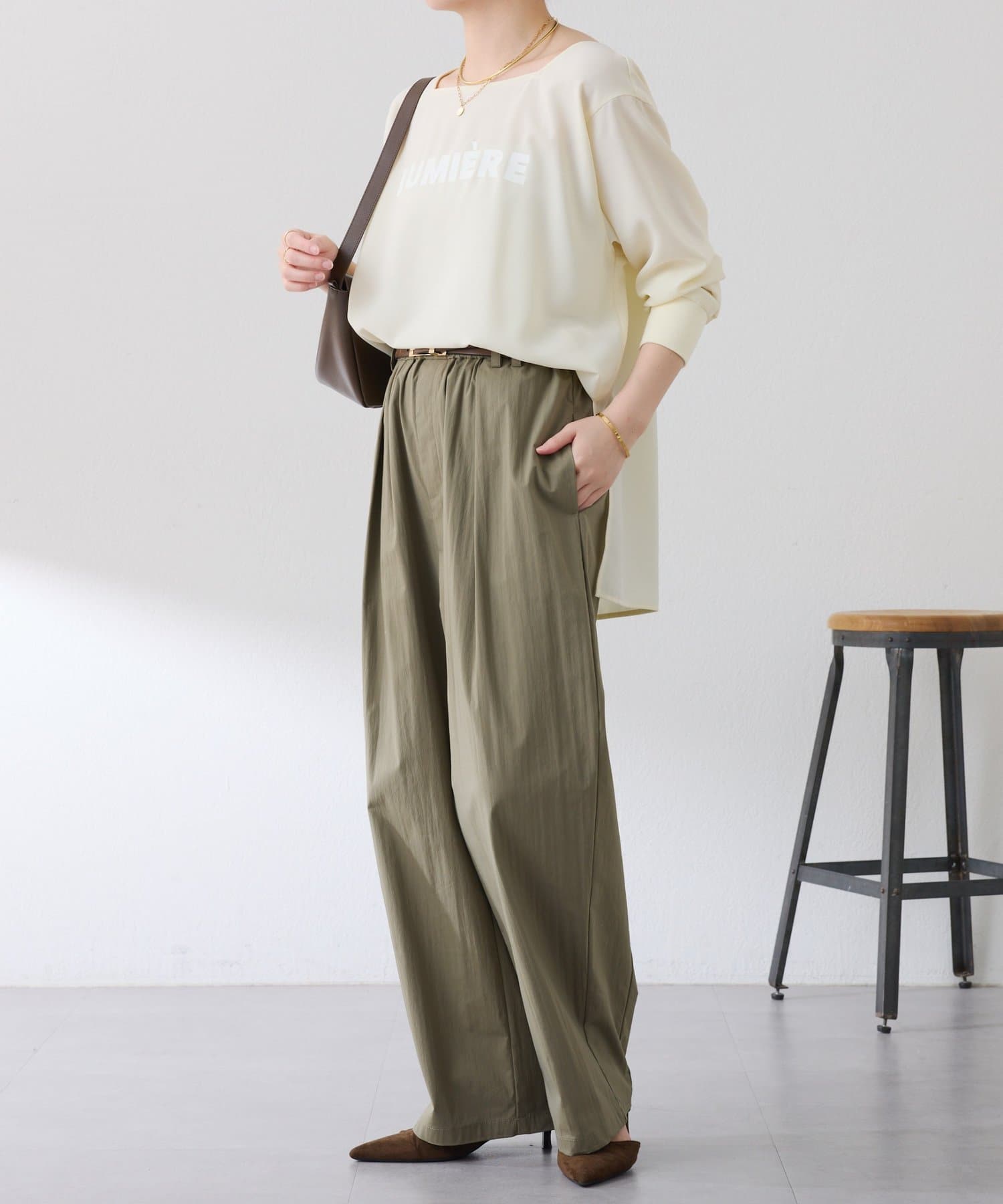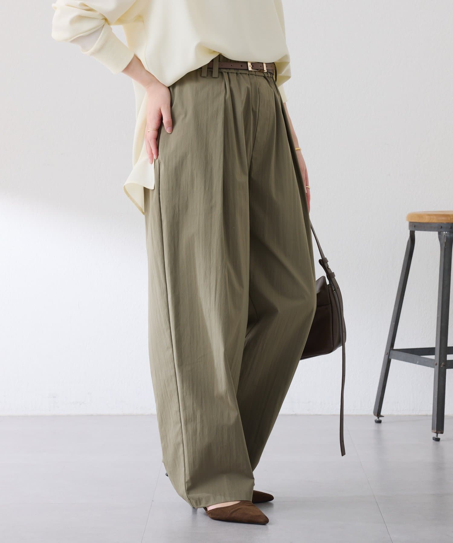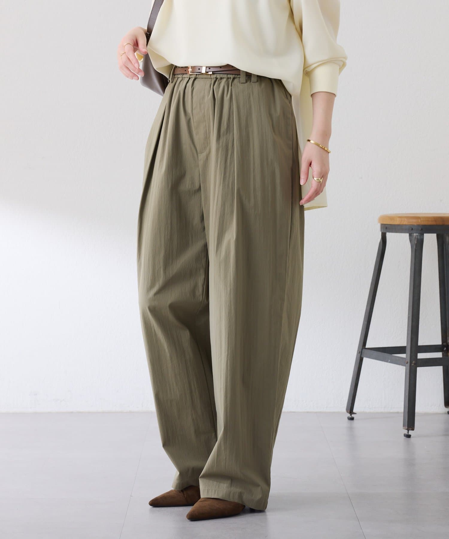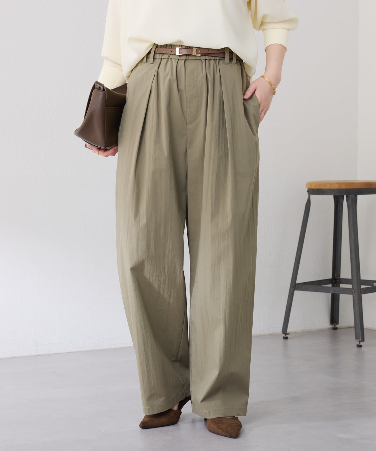 ・ウエストは総ゴム×ベルトループ仕様。トップスをインしてベルトを締めることもでき、コーデの幅が広がります。