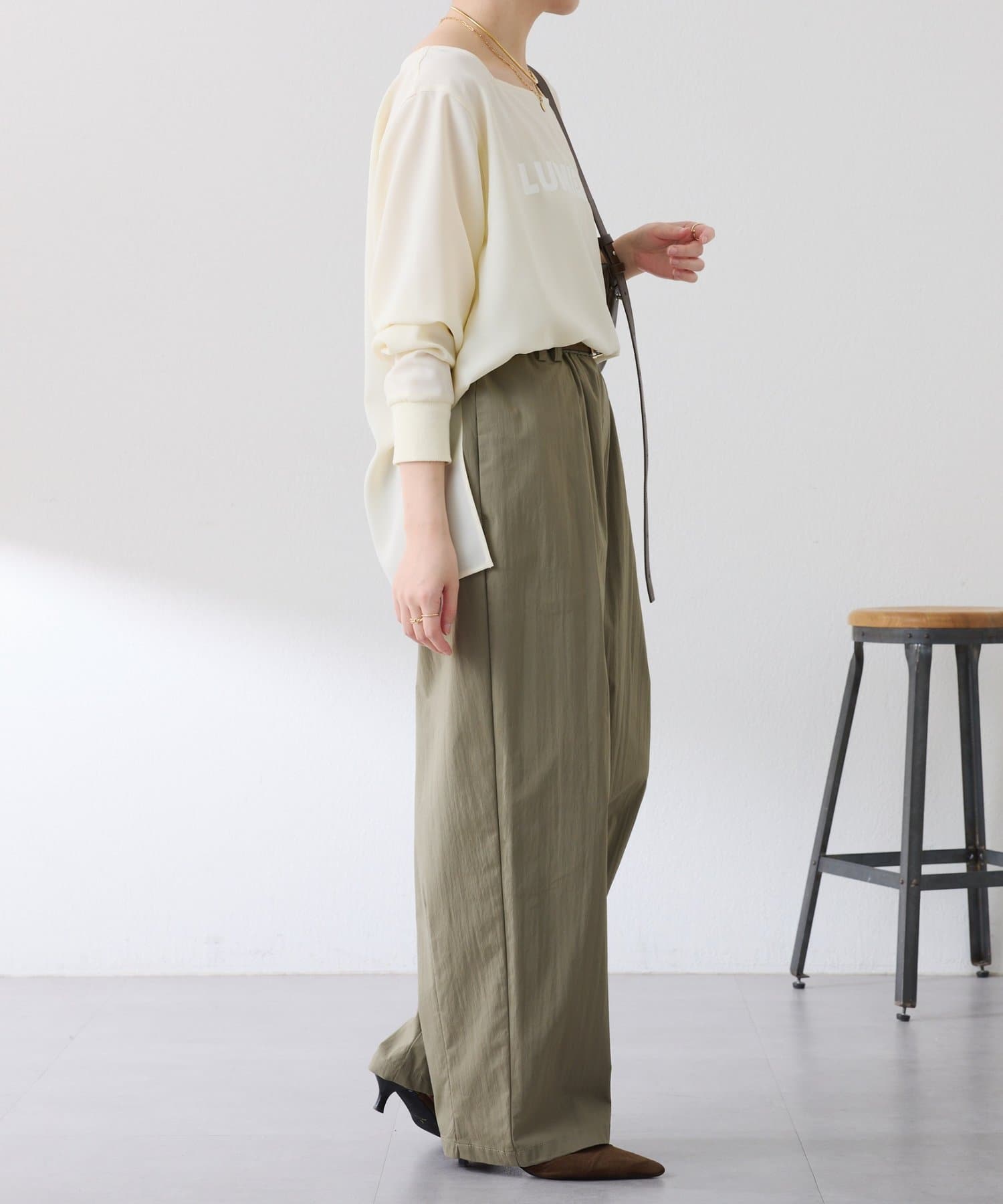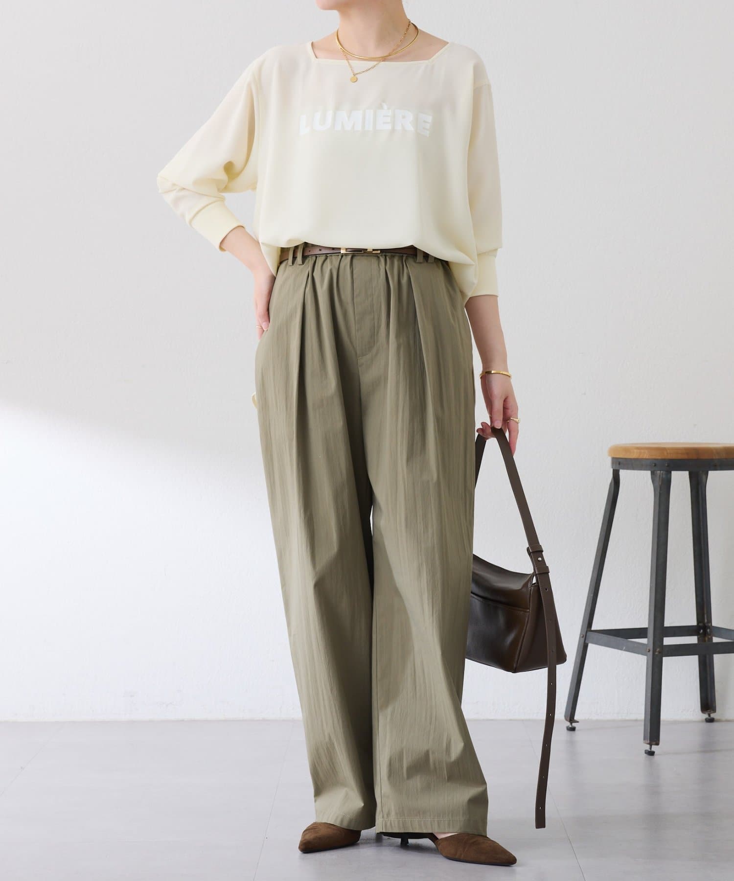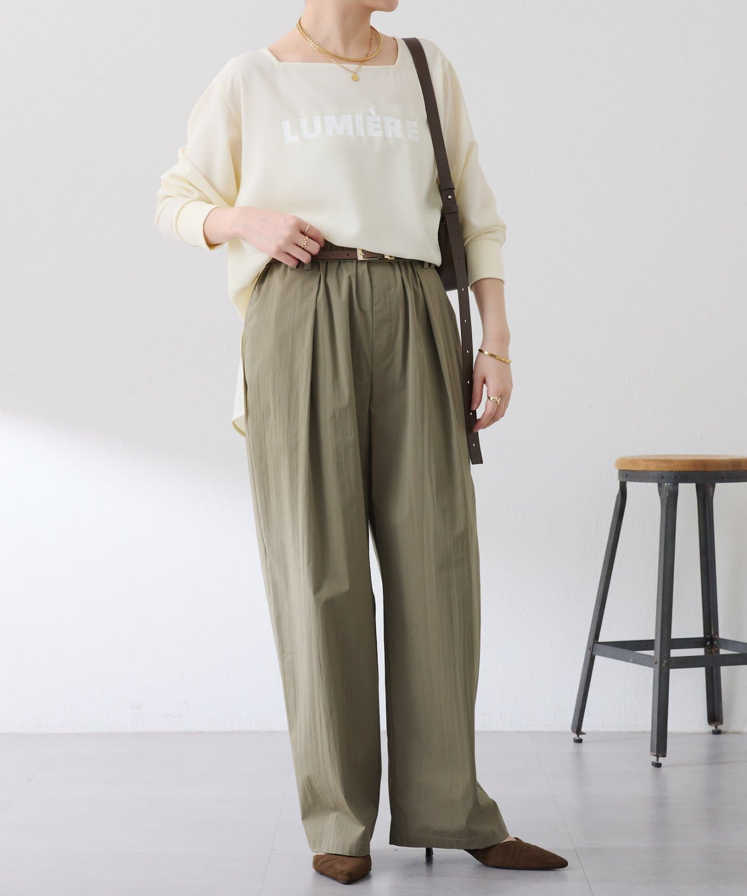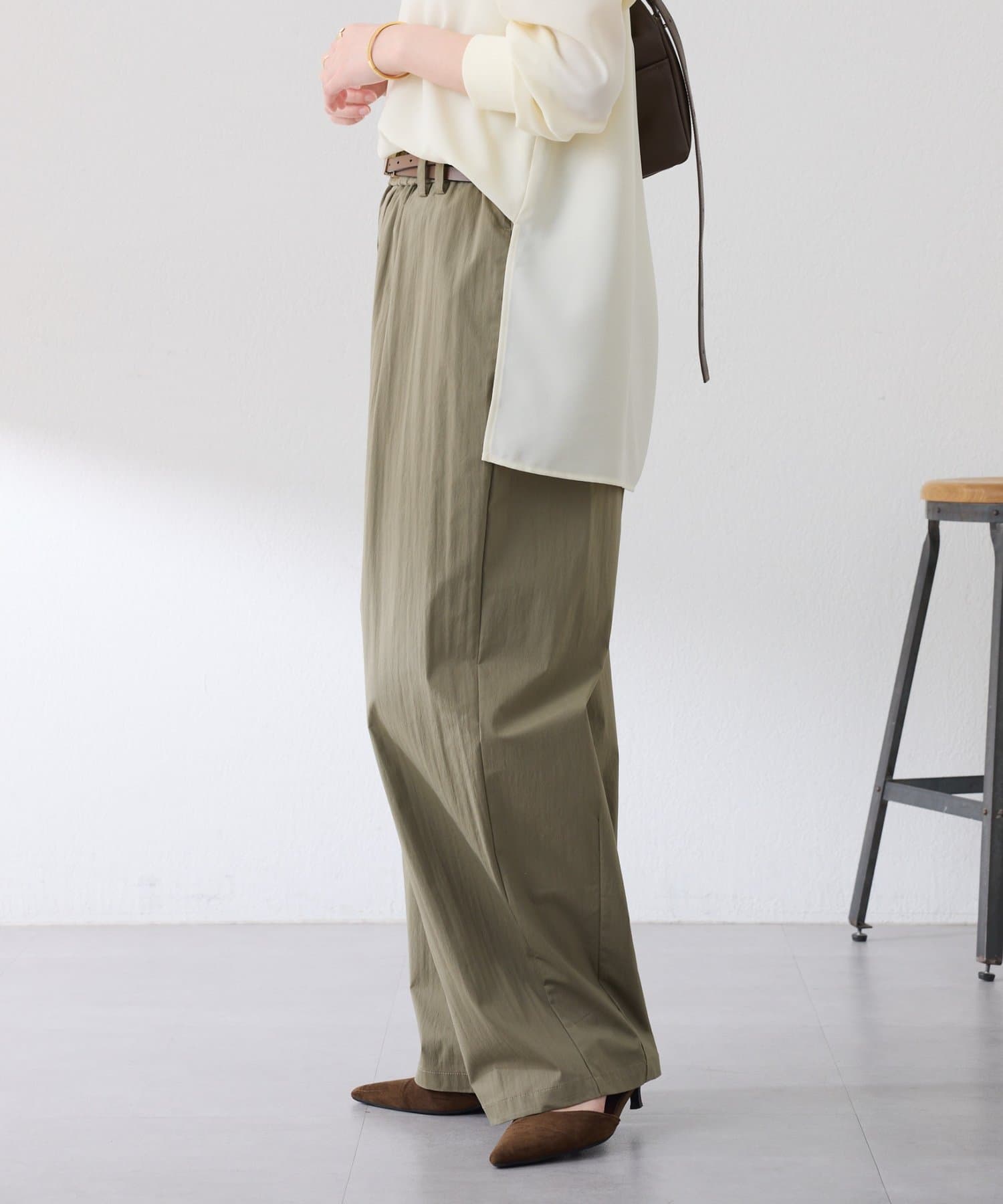 ・ウエストは総ゴム×ベルトループ仕様。トップスをインしてベルトを締めることもでき、コーデの幅が広がります。