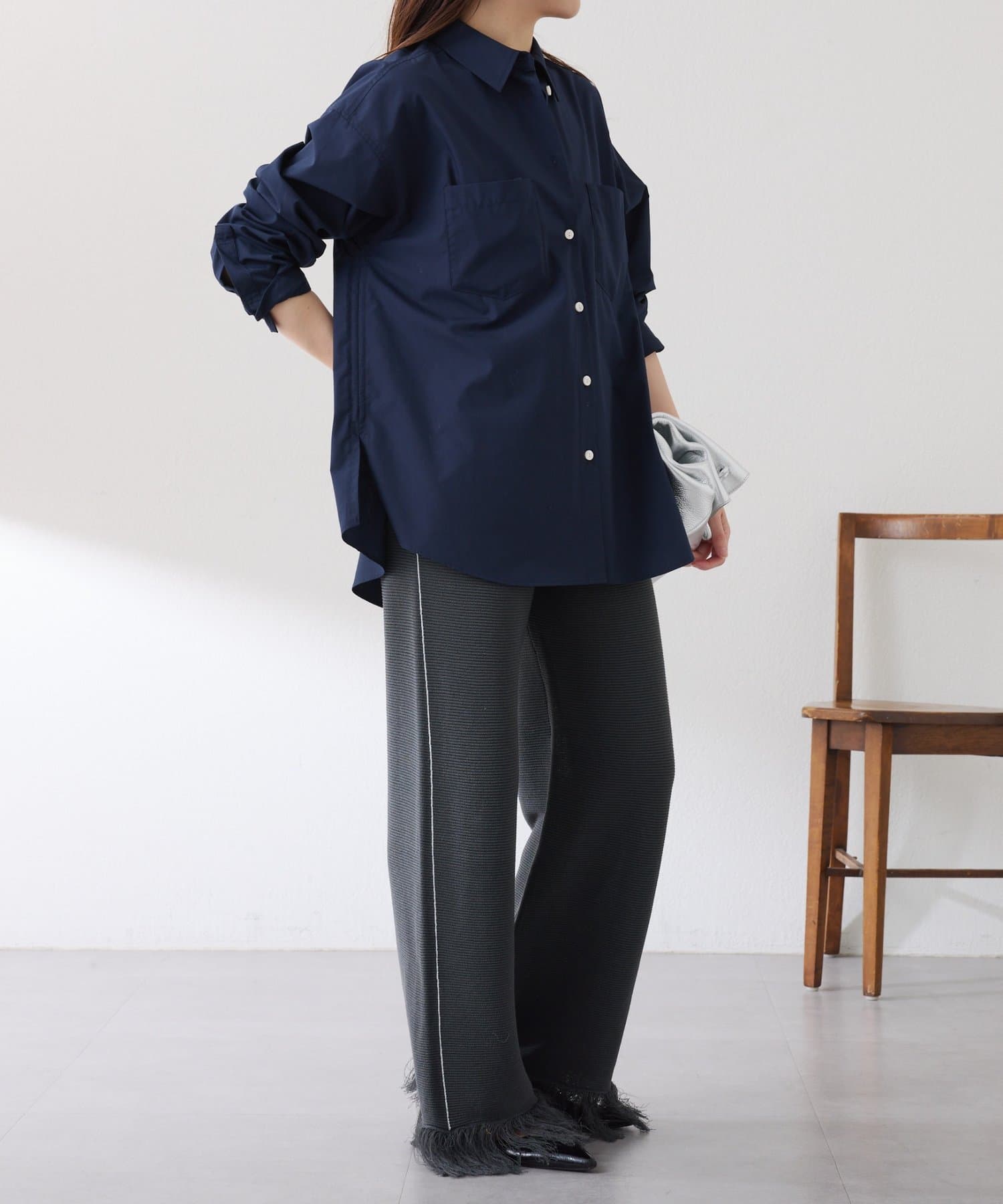 ・ワイドシルエットと凹凸のあるやや厚手の肉感で身体のラインを拾わないのも嬉しいポイント。