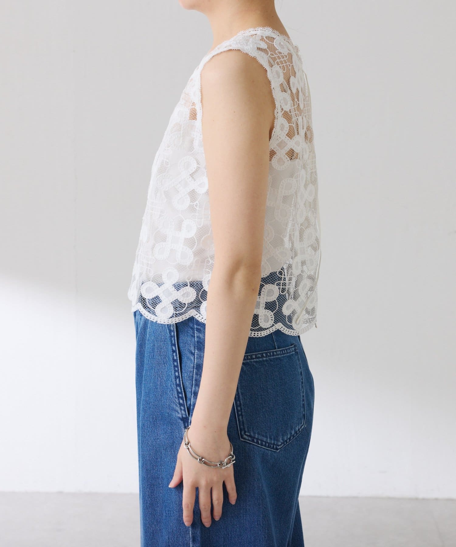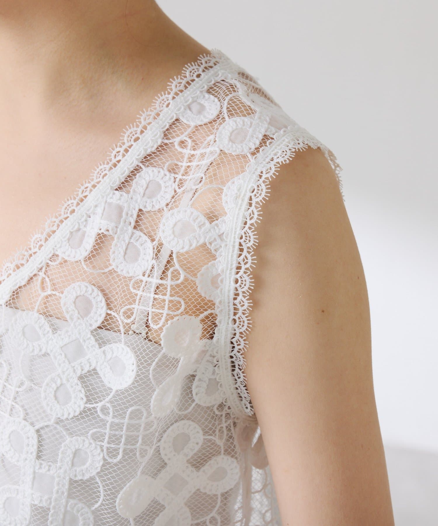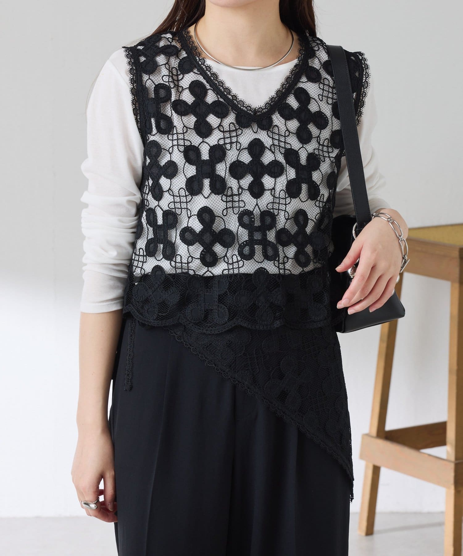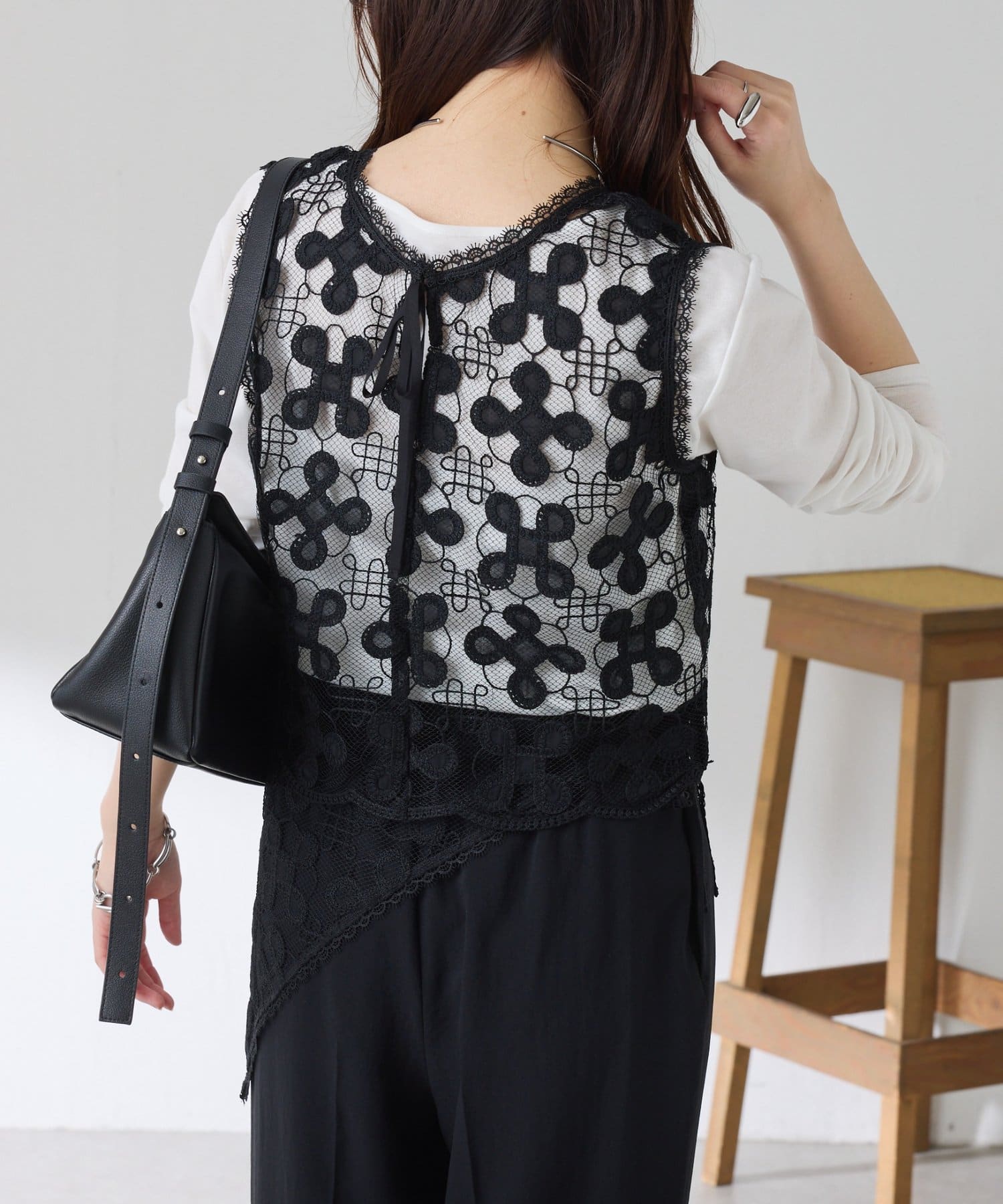 ・幾何学模様のようなレース柄は甘すぎず、大人っぽく取り入れやすいレースアイテム。