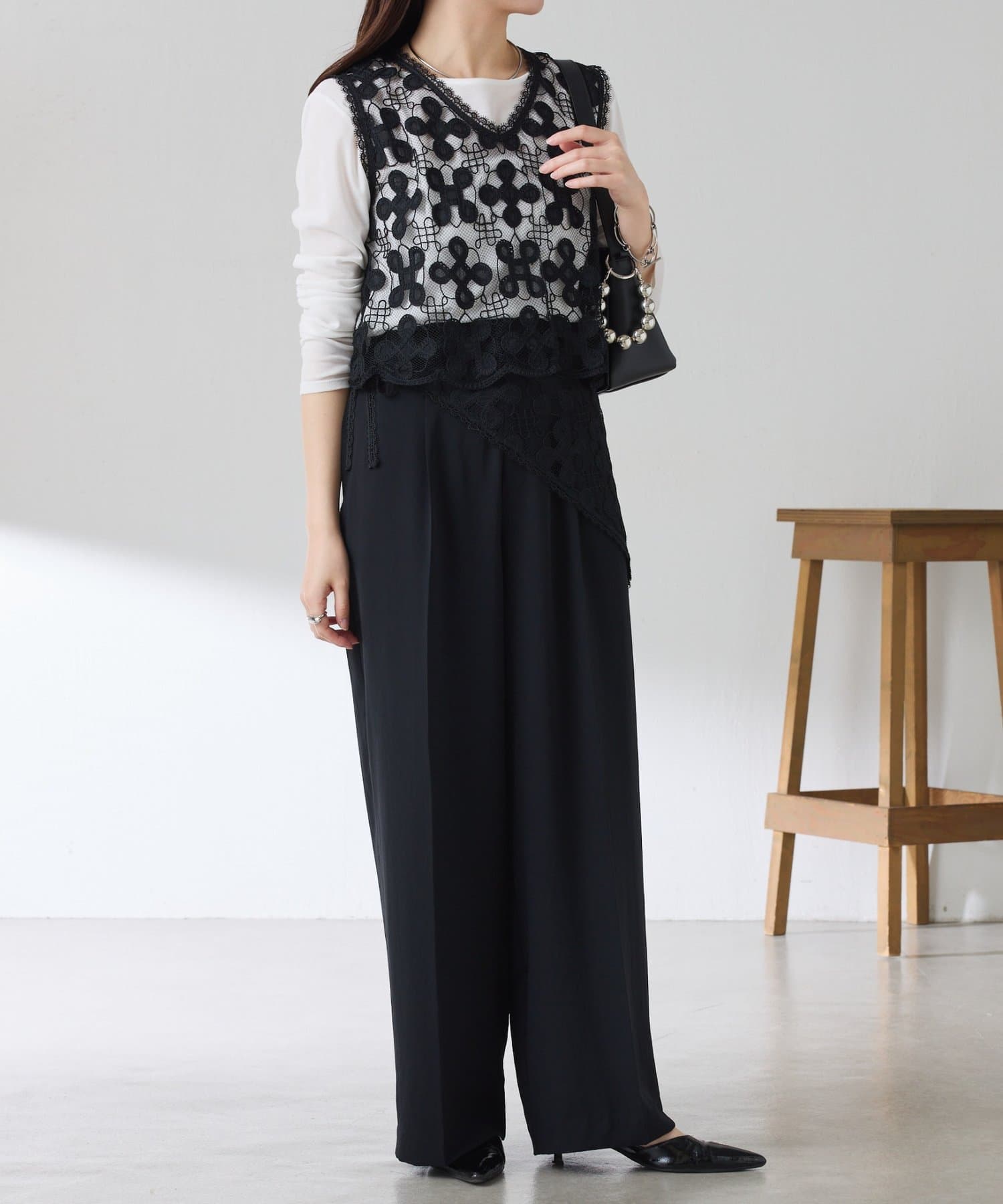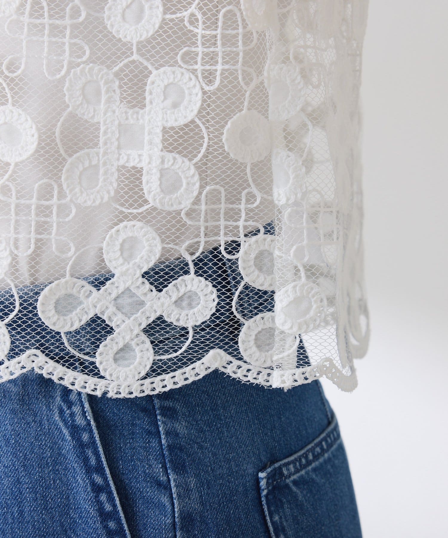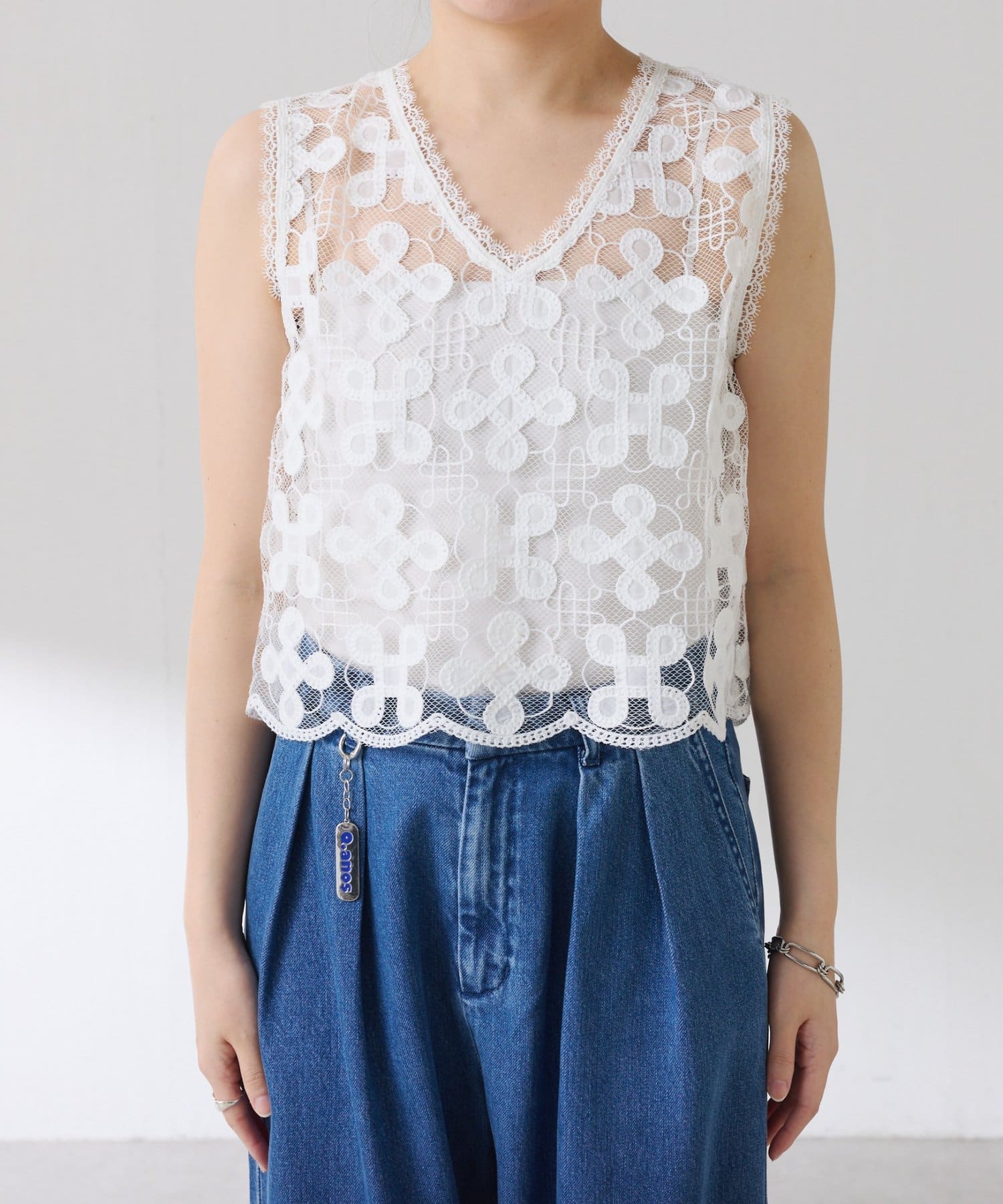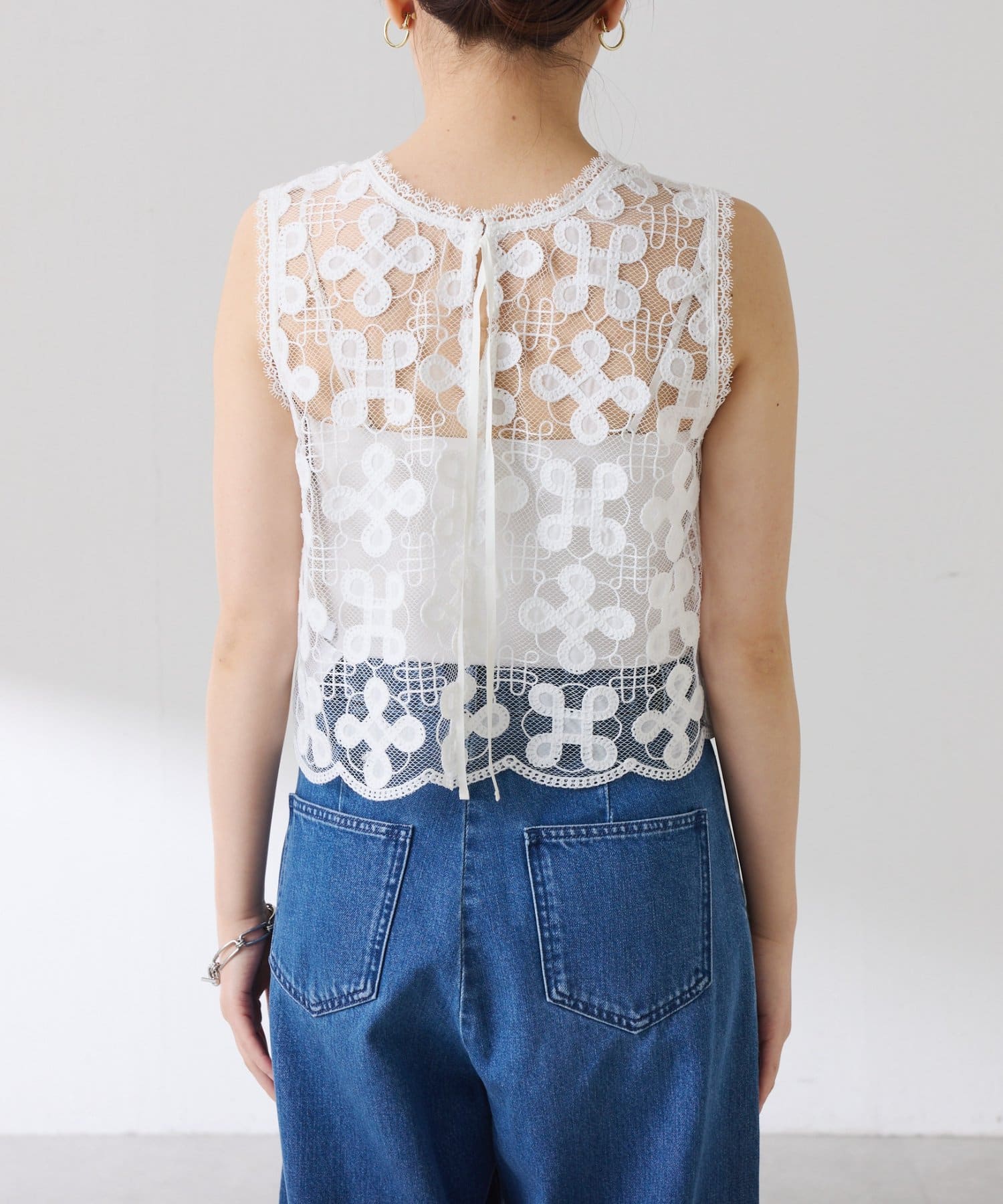 ・幾何学模様のようなレース柄は甘すぎず、大人っぽく取り入れやすいレースアイテム。
