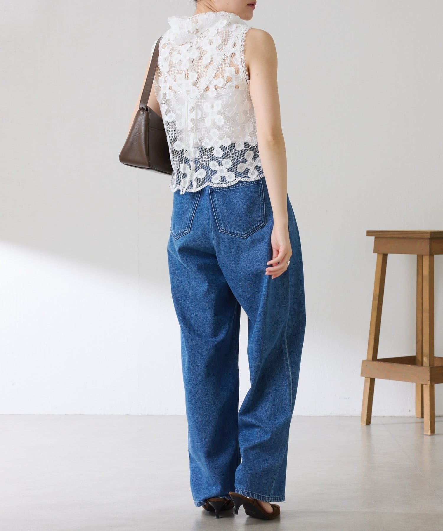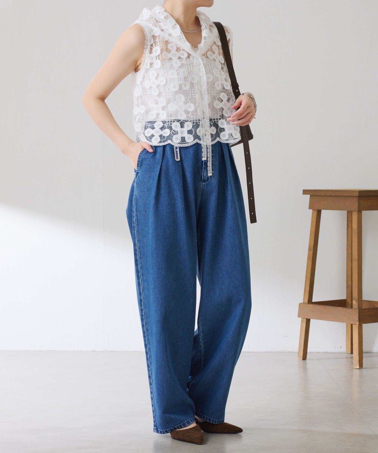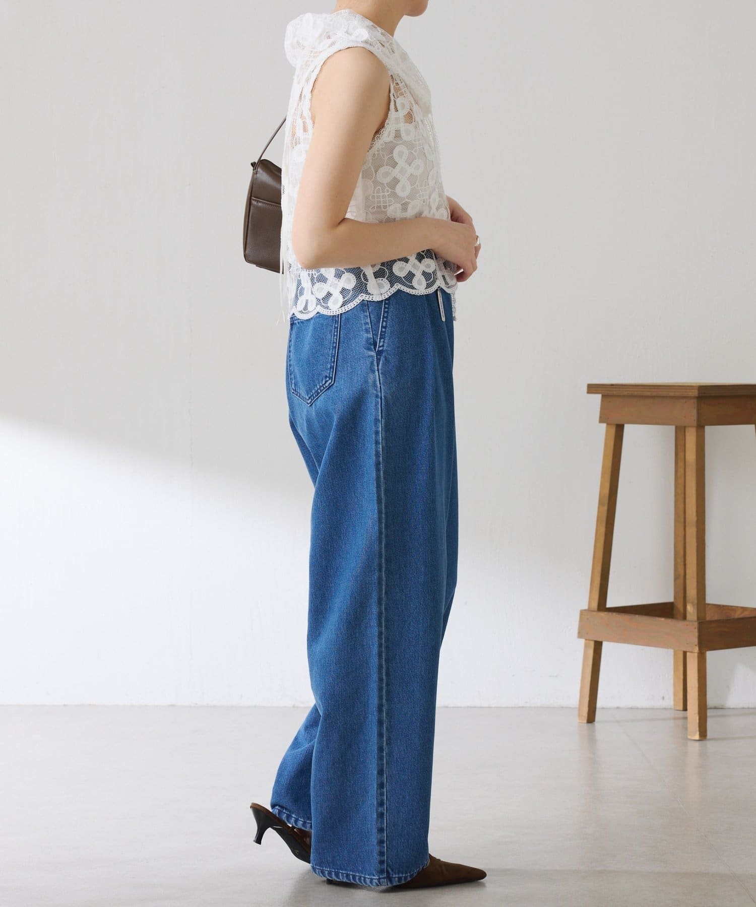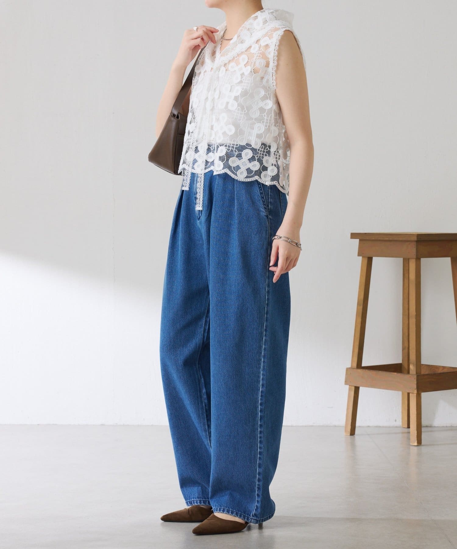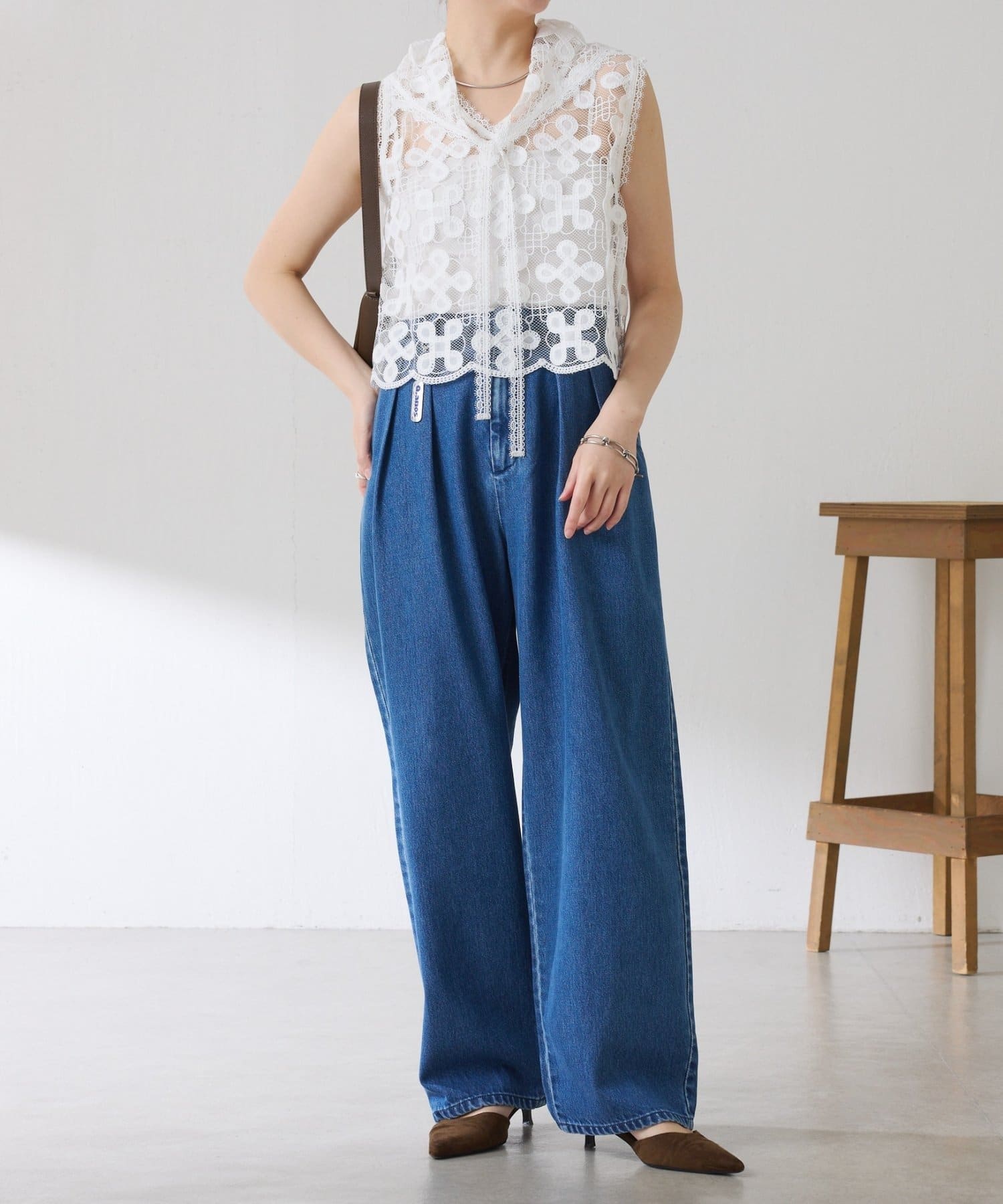 透け感のあるレースはデニムやスウェットと合わせてカラーのコントラストを楽しむのもおすすめです。
