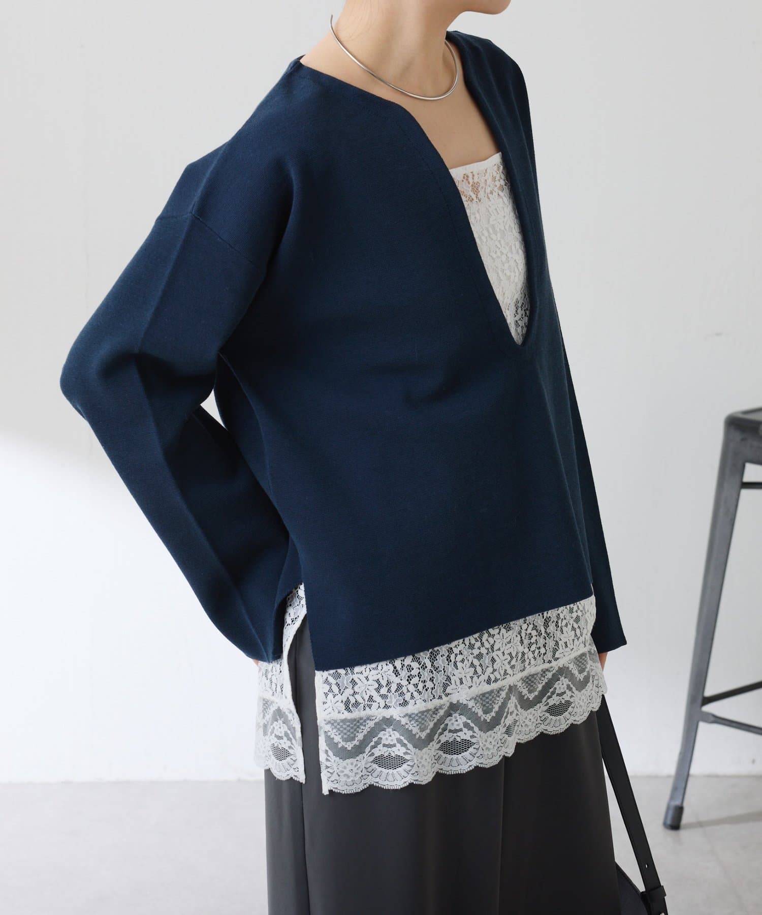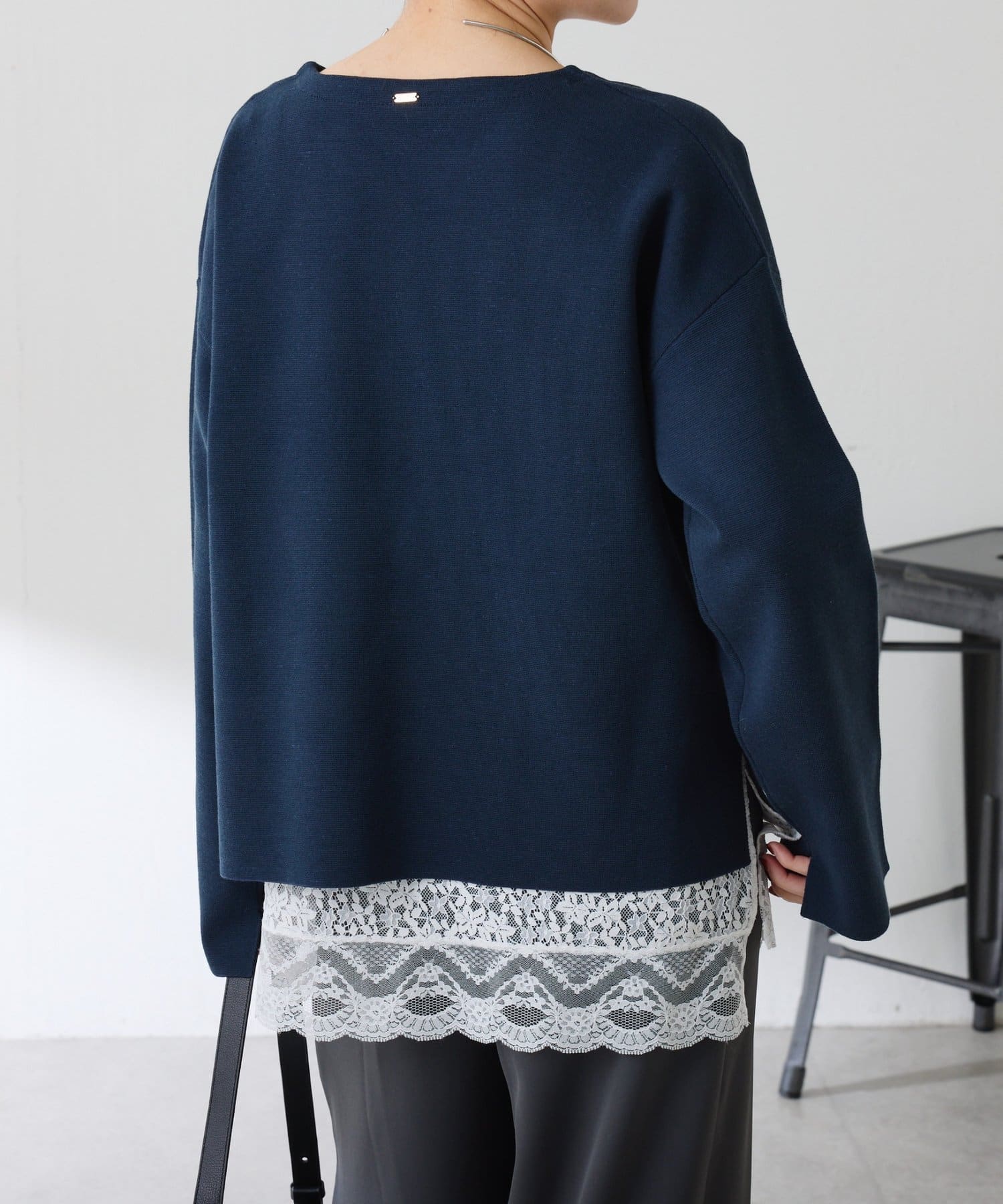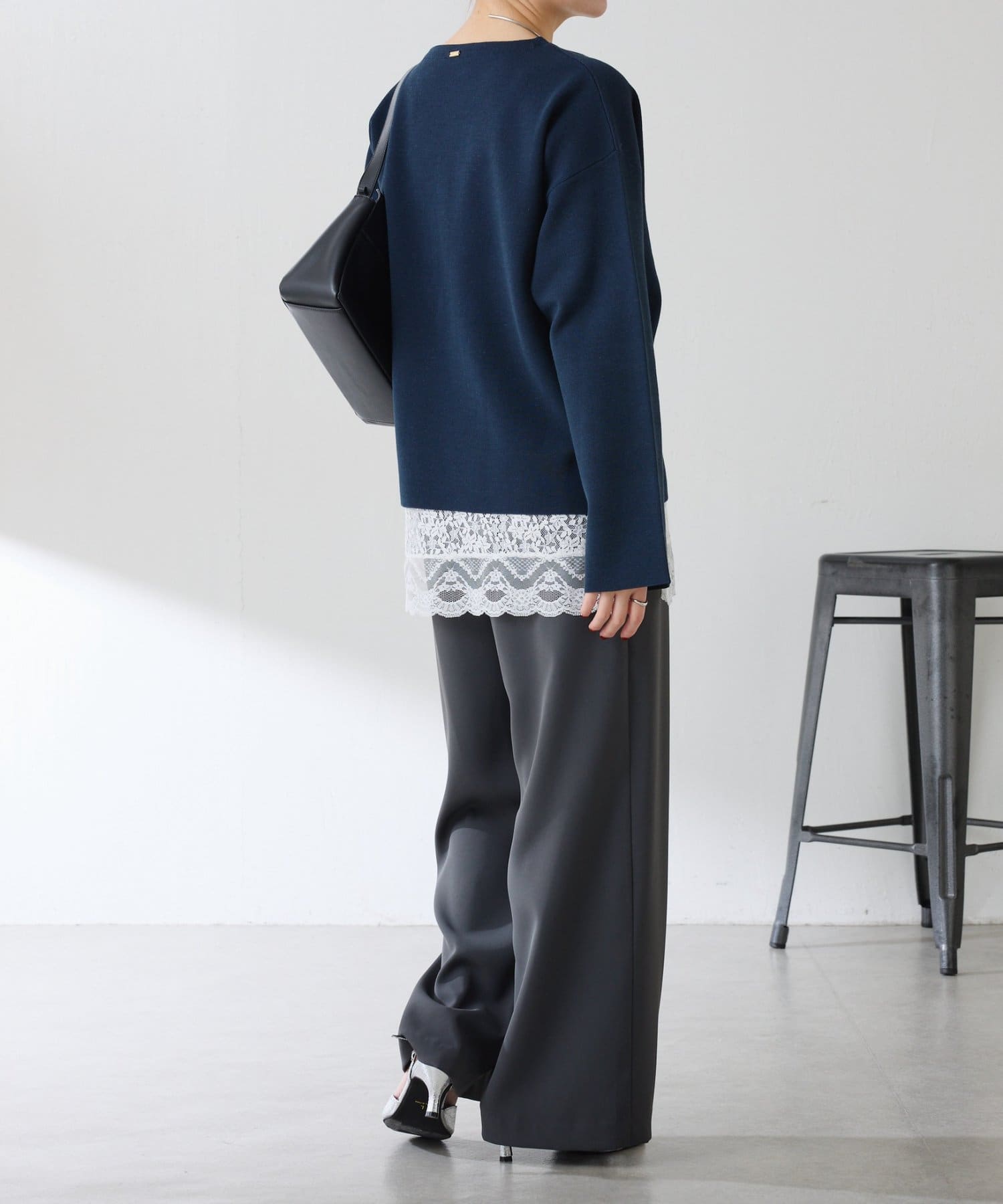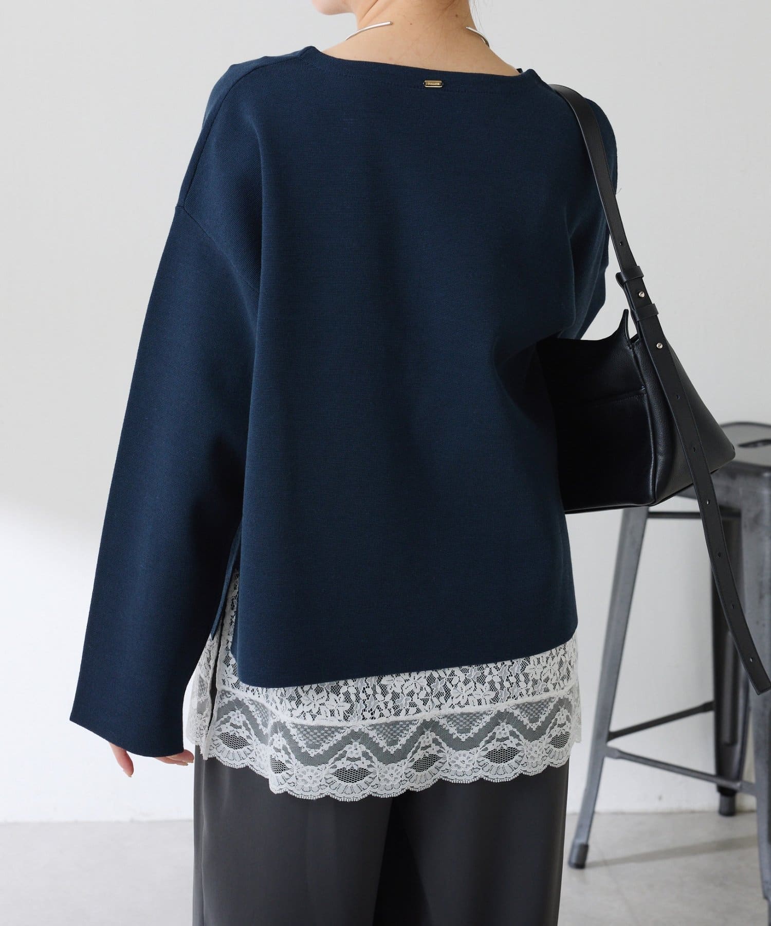 ニットやスウェット、Tシャツの裾からレースを覗かせるだけで一気に大人っぽいコーデに仕上がります。
