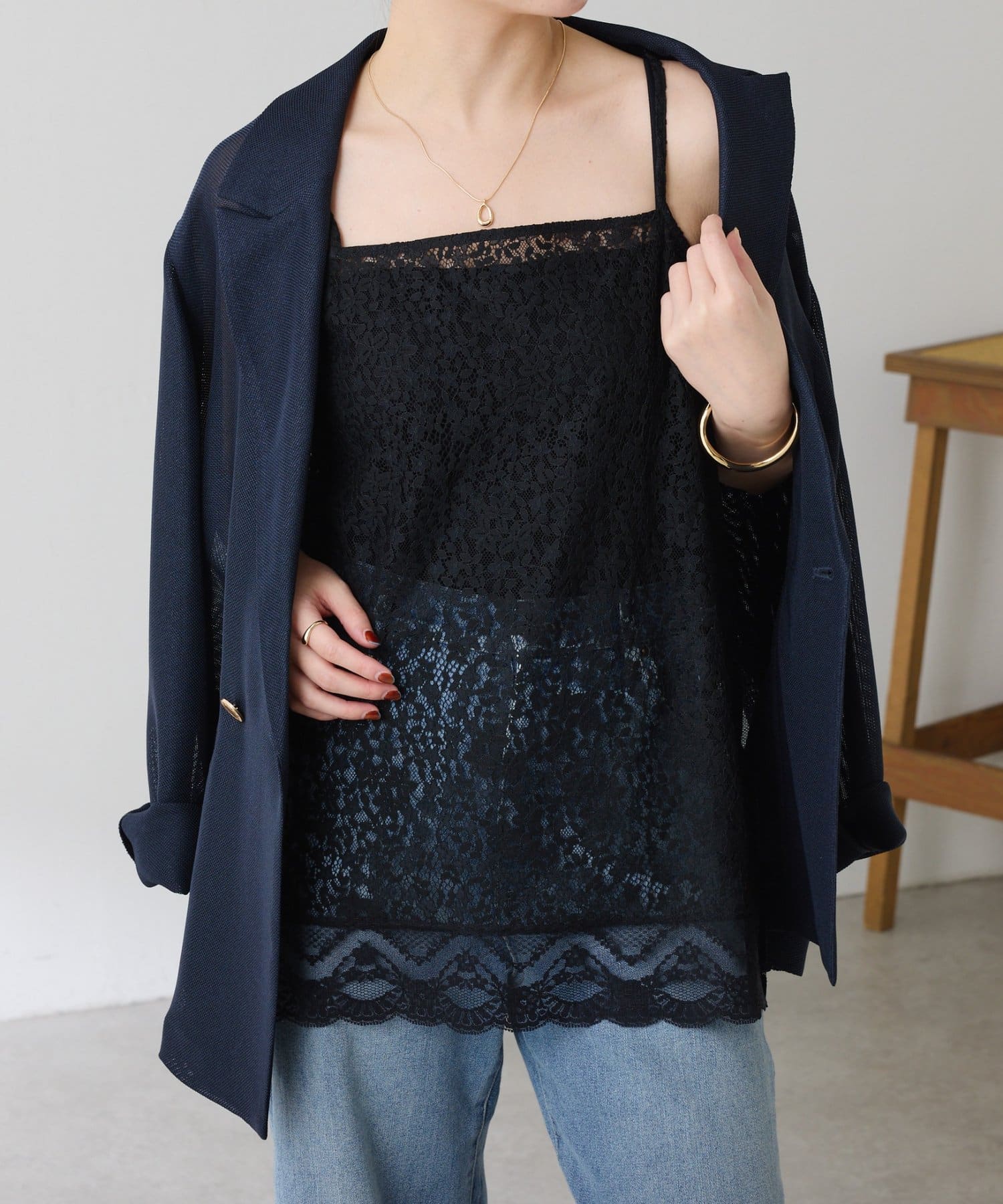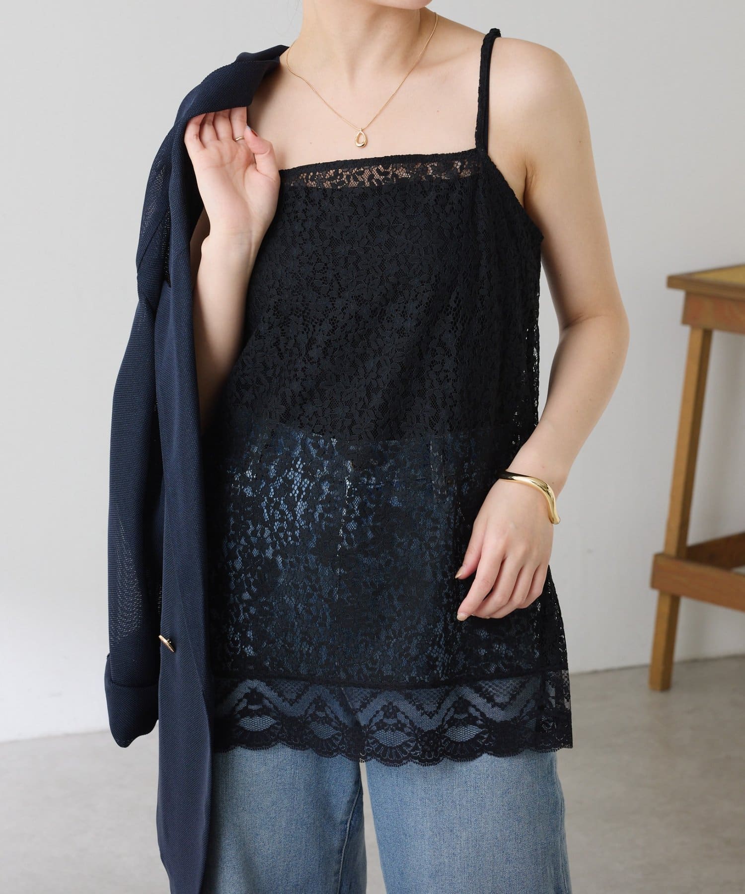 レイヤードコーデの幅が広がる繊細なレースキャミ